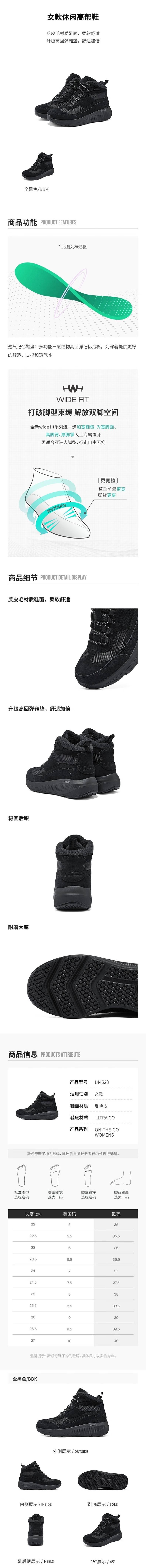 Skechers斯凯奇 女高帮鞋休闲鞋 144523-BBK