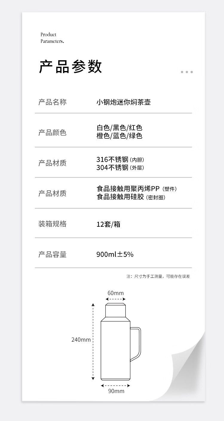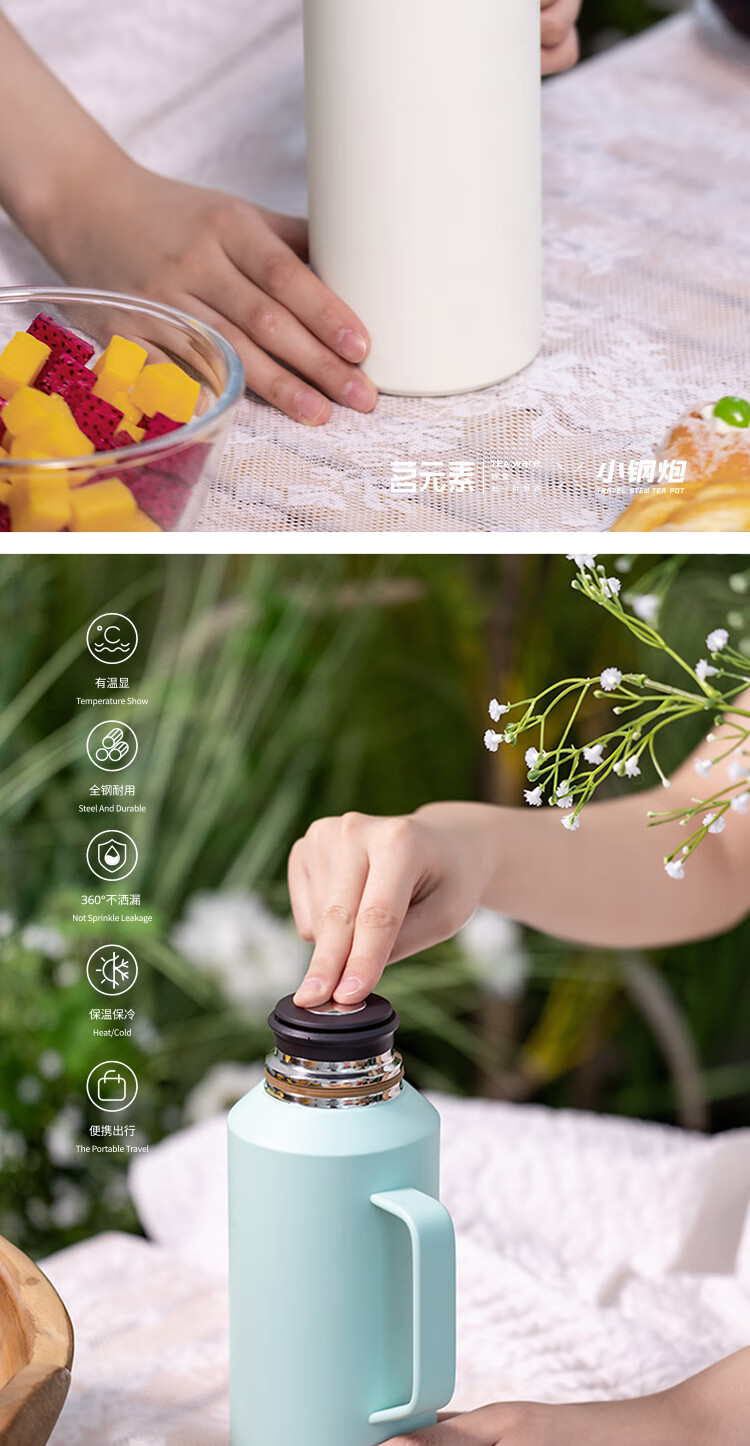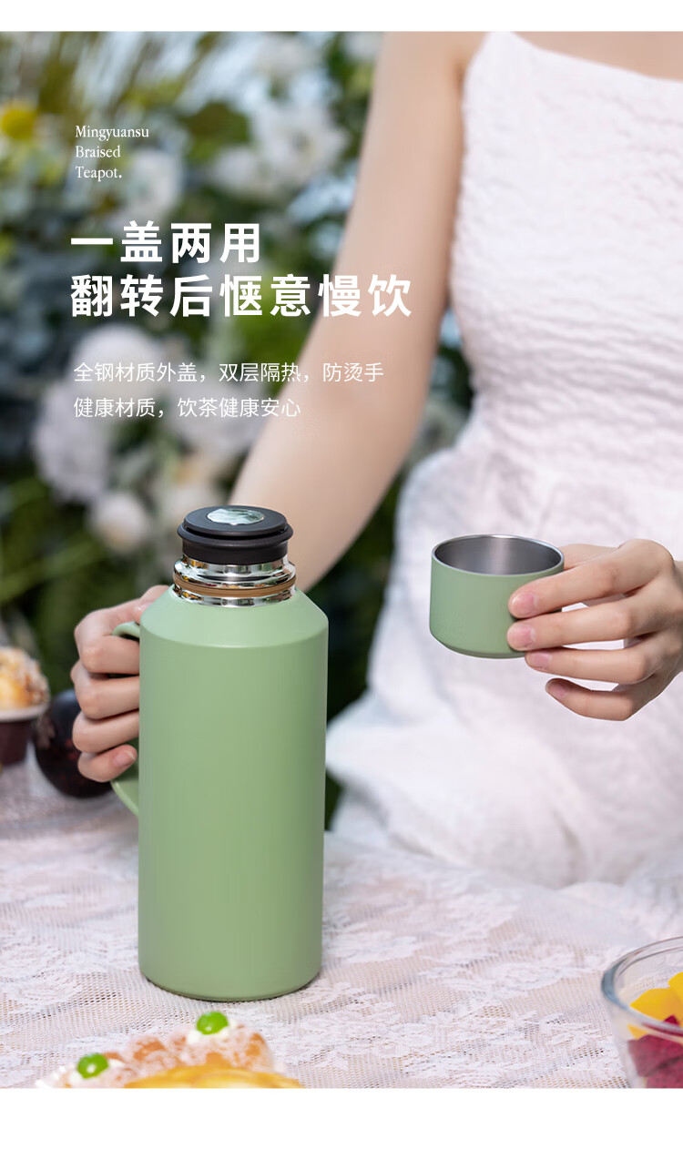 茗元素 万物养1000ml焖茶壶蓄水 316不锈钢 办公室家用