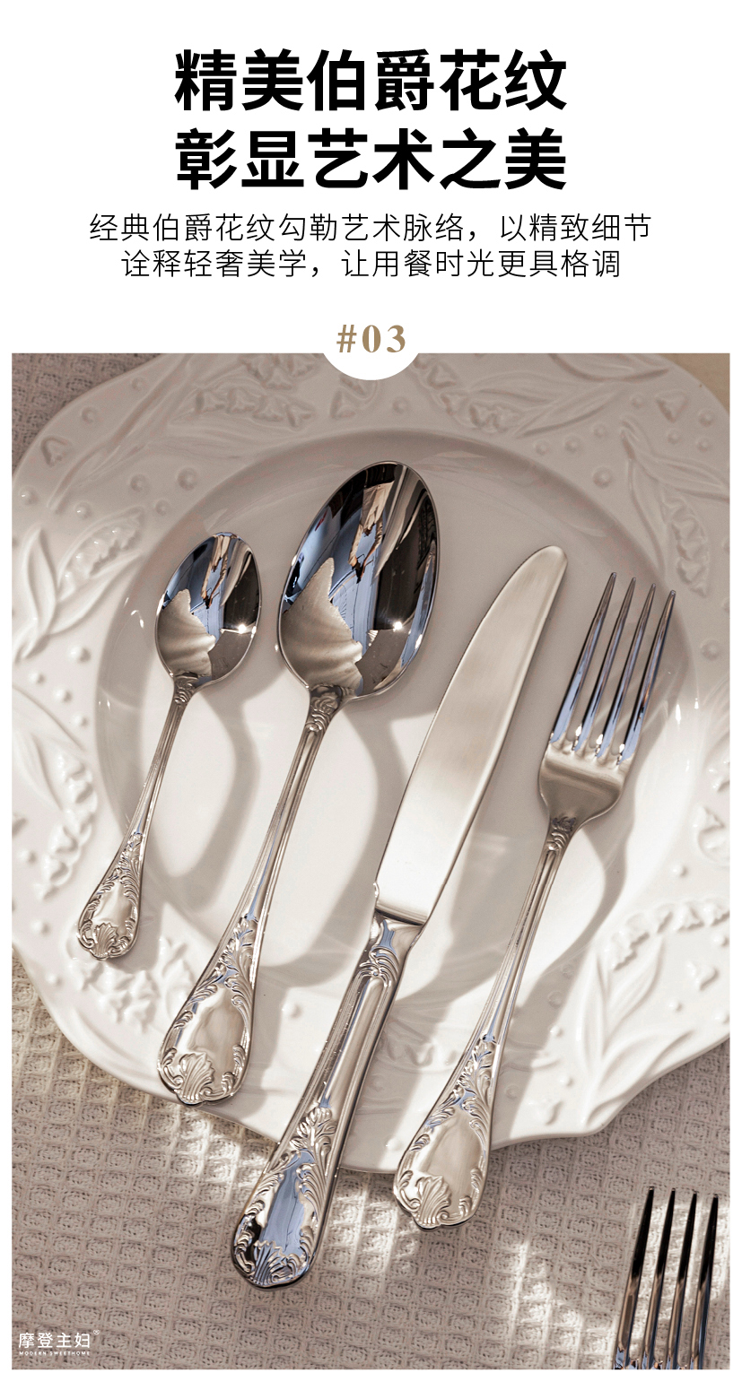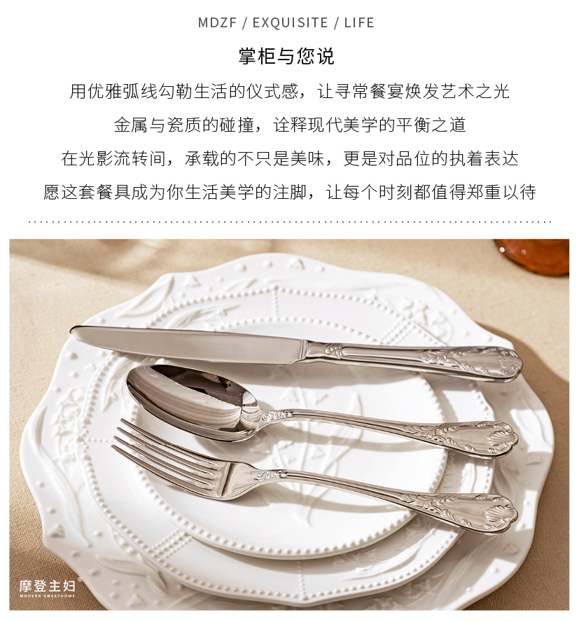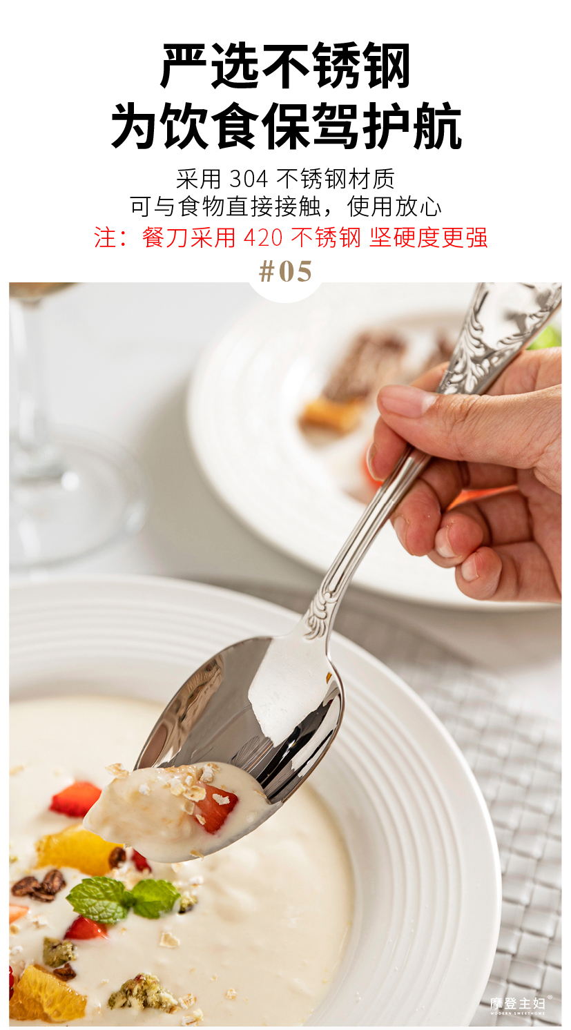 摩登主妇食品级不锈钢西餐餐具刀叉勺三件套高颜值套装切牛排专用