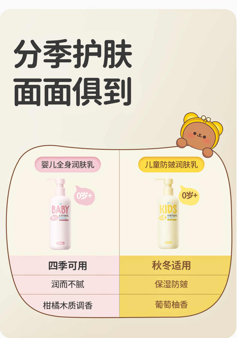6款婴儿身体乳 润肤乳对比测评,测评优品-润本防皴润肤乳 身体乳 保湿效果好 清爽不黏腻 延展性好 亲肤易吸收 性价比高