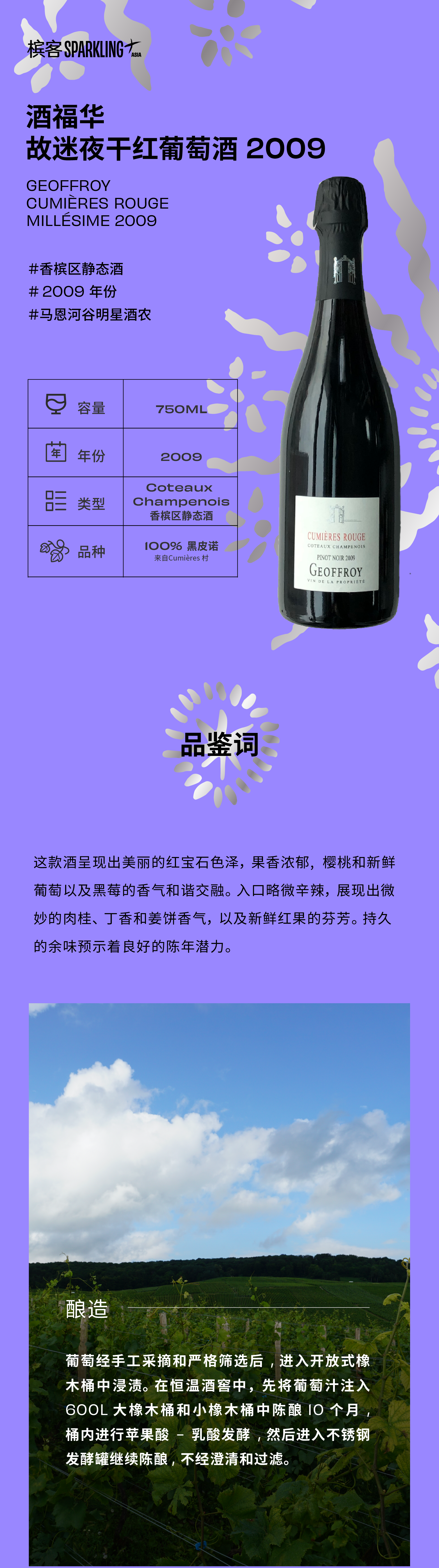 香槟区静态干红 · Geoffroy Cumières Rouge Millésime 2009 酒福华故迷夜干红葡萄酒 2009