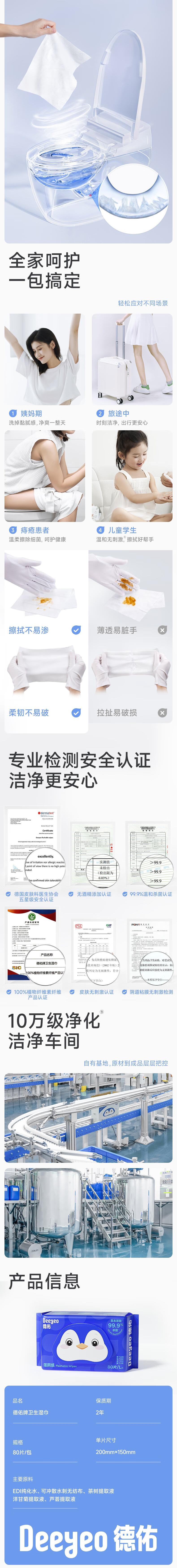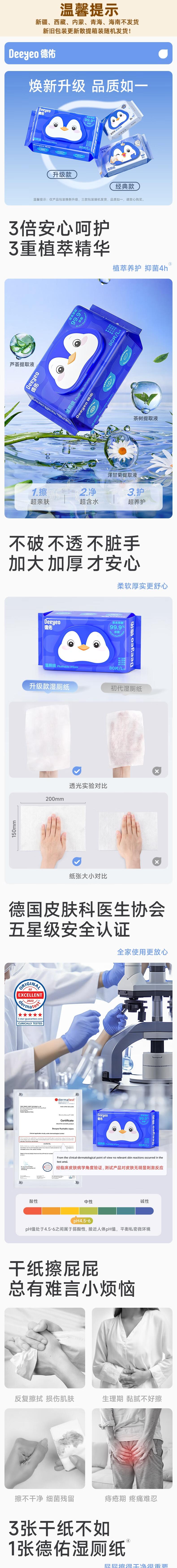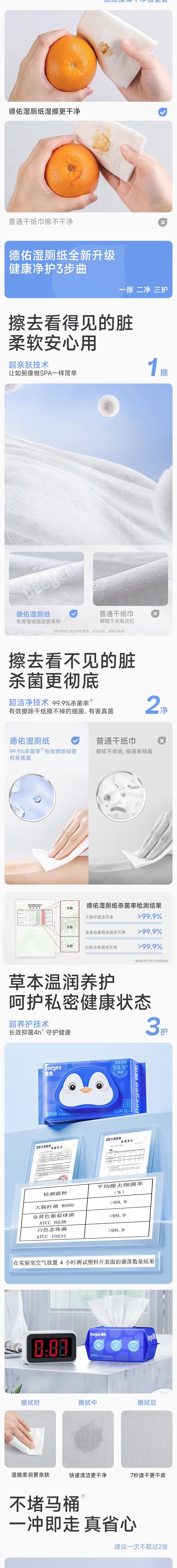 德佑Deeyeo 经典蓝湿厕纸80抽*3包 dyc80c3b