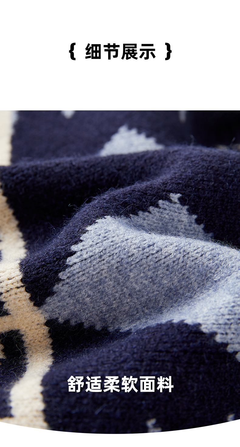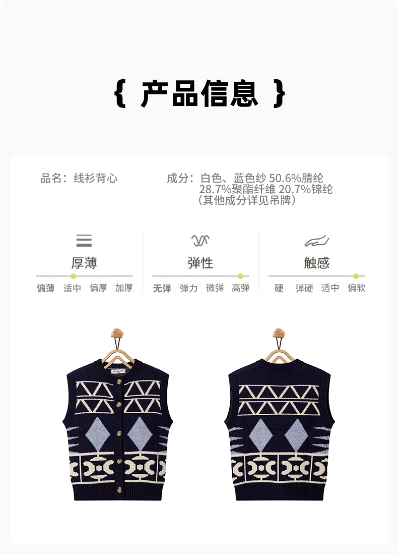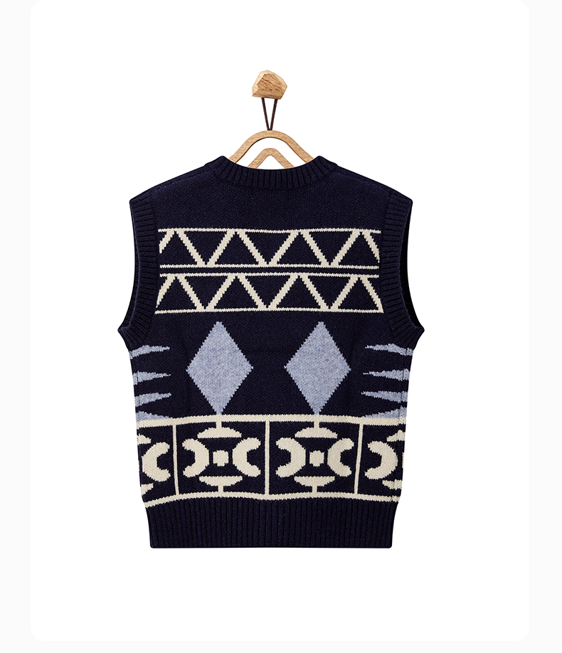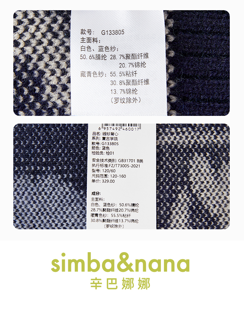 【辛巴娜娜】simbanana秋新款女中大童复古提花拼色外搭学院风开衫针织背心马甲