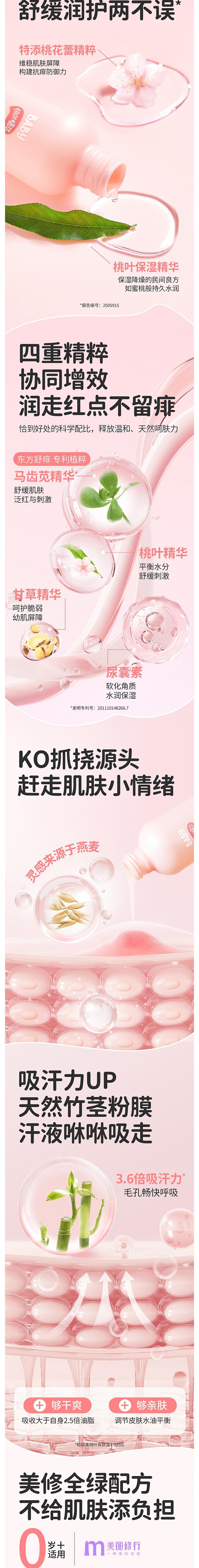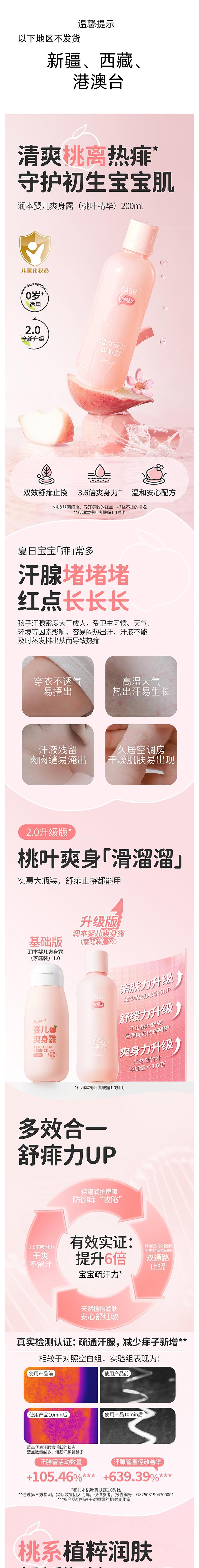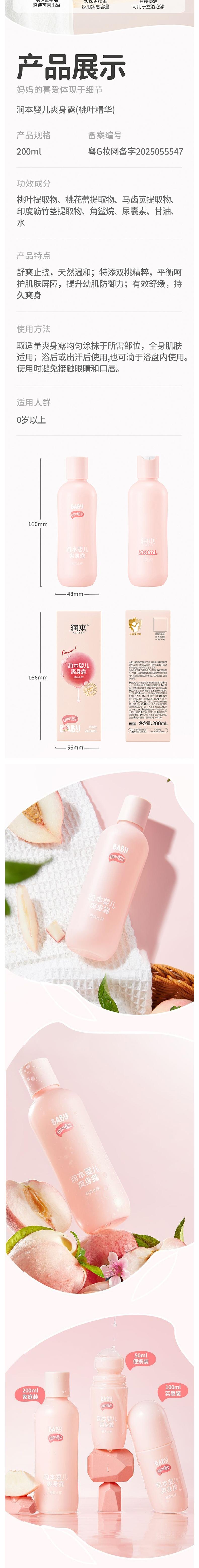 润本 爽身露痱子水桃叶精华200ml 6971435251982