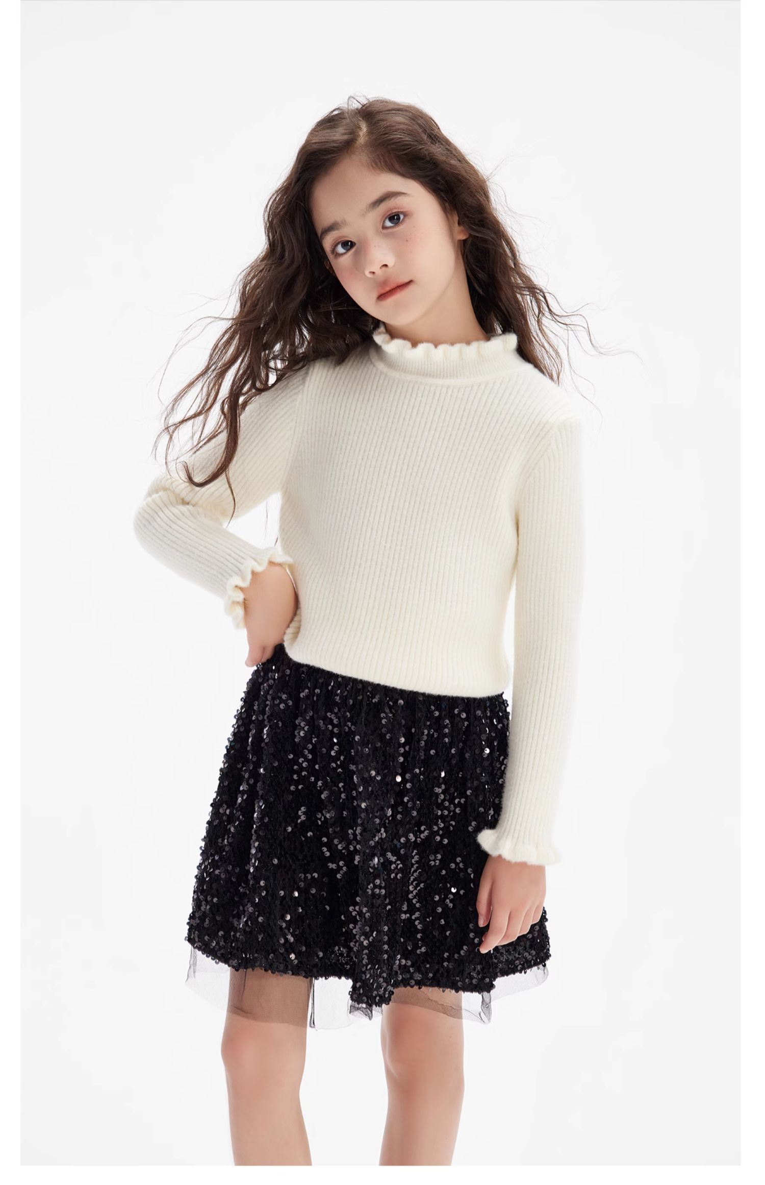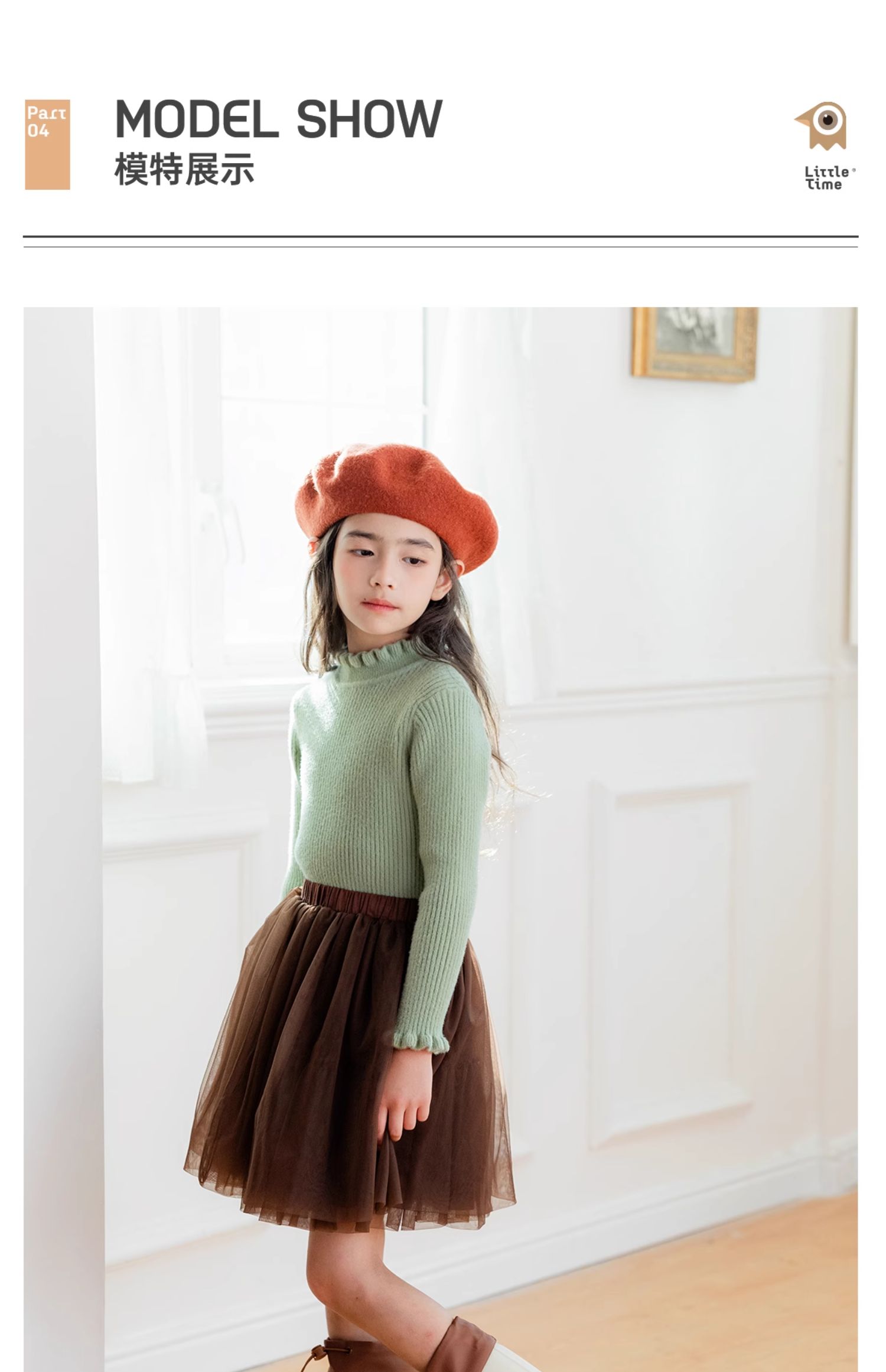 littletime女童打底衫毛衣文艺感2024秋冬新款儿童套头长袖针织衫