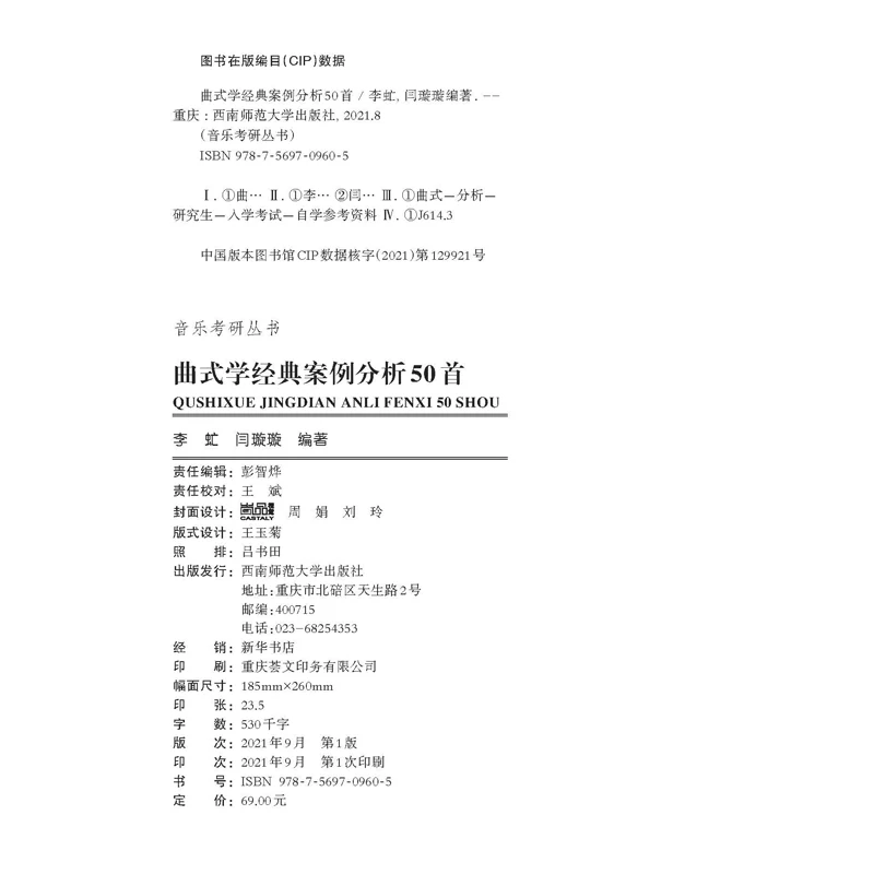 *书名:曲式学经典案例分析50首 | *ISBN:978-7-5697-0960-5 |