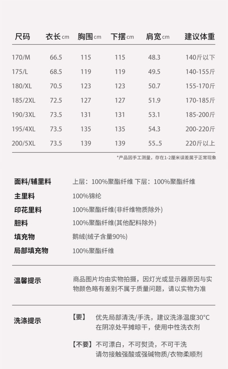 填充物:鹅绒(绒子含量90%)