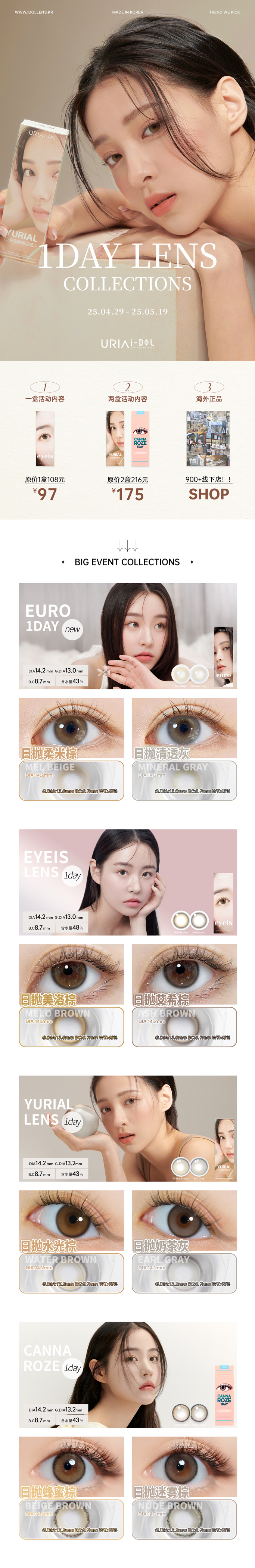 【本月活动】I-DOL美瞳日抛,单盒97/2盒175