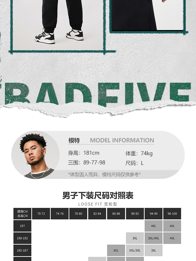 【抄底!399任选2件】李宁反伍BADFIVE男子宽松束脚卫裤AKLV017