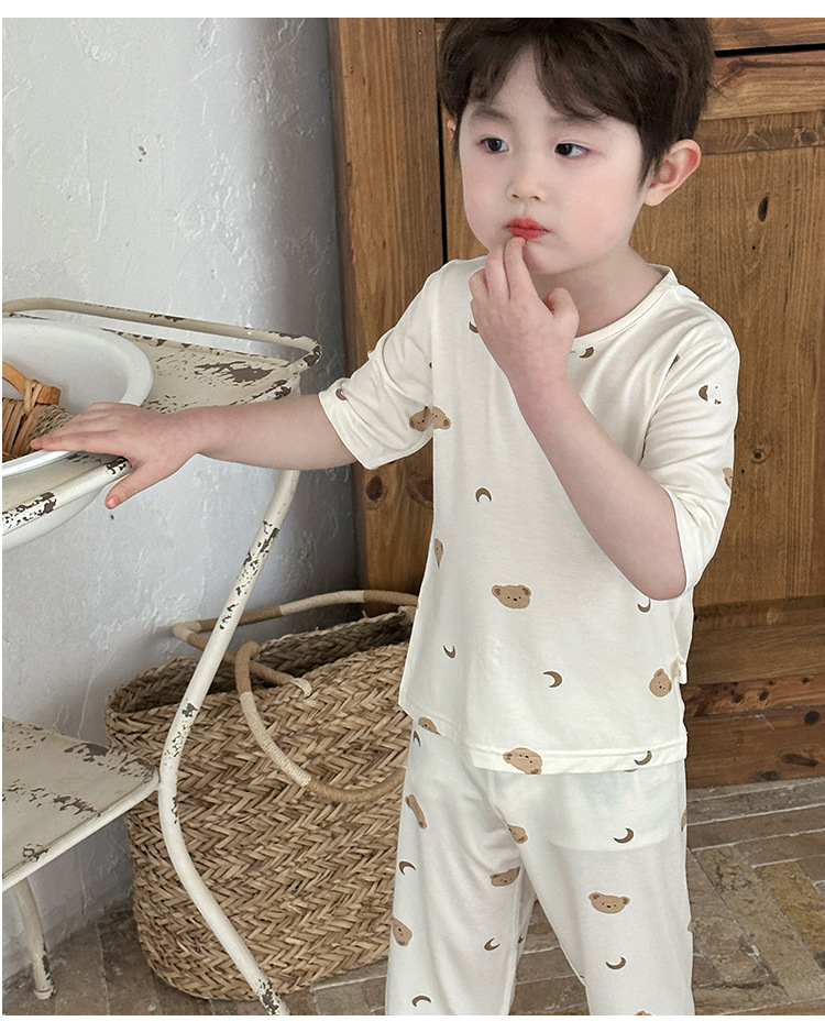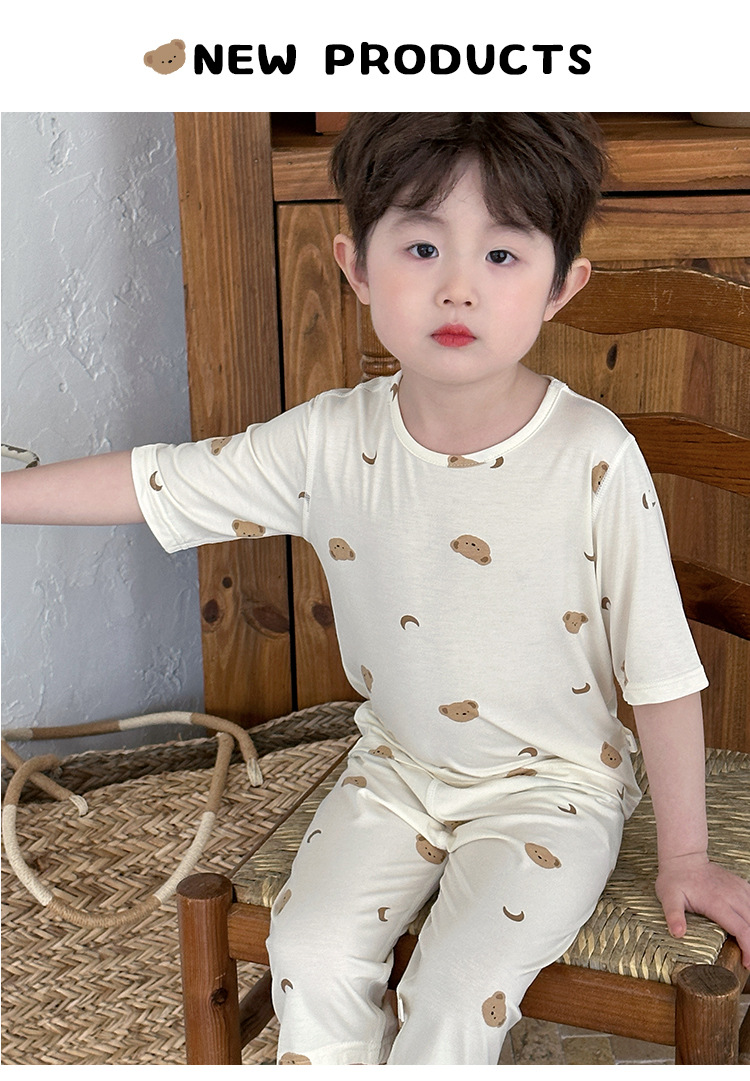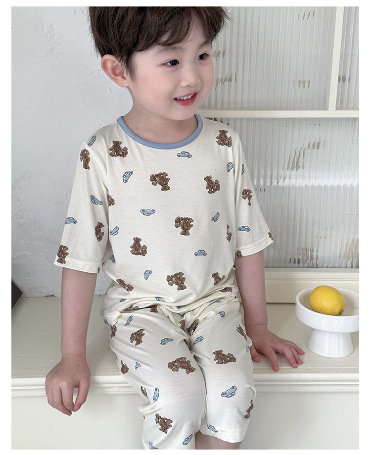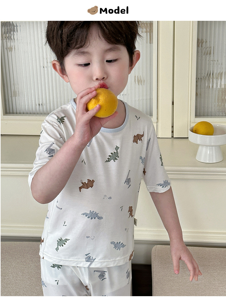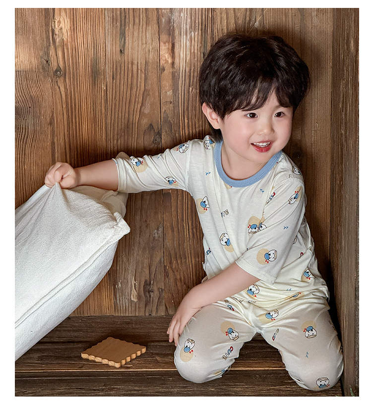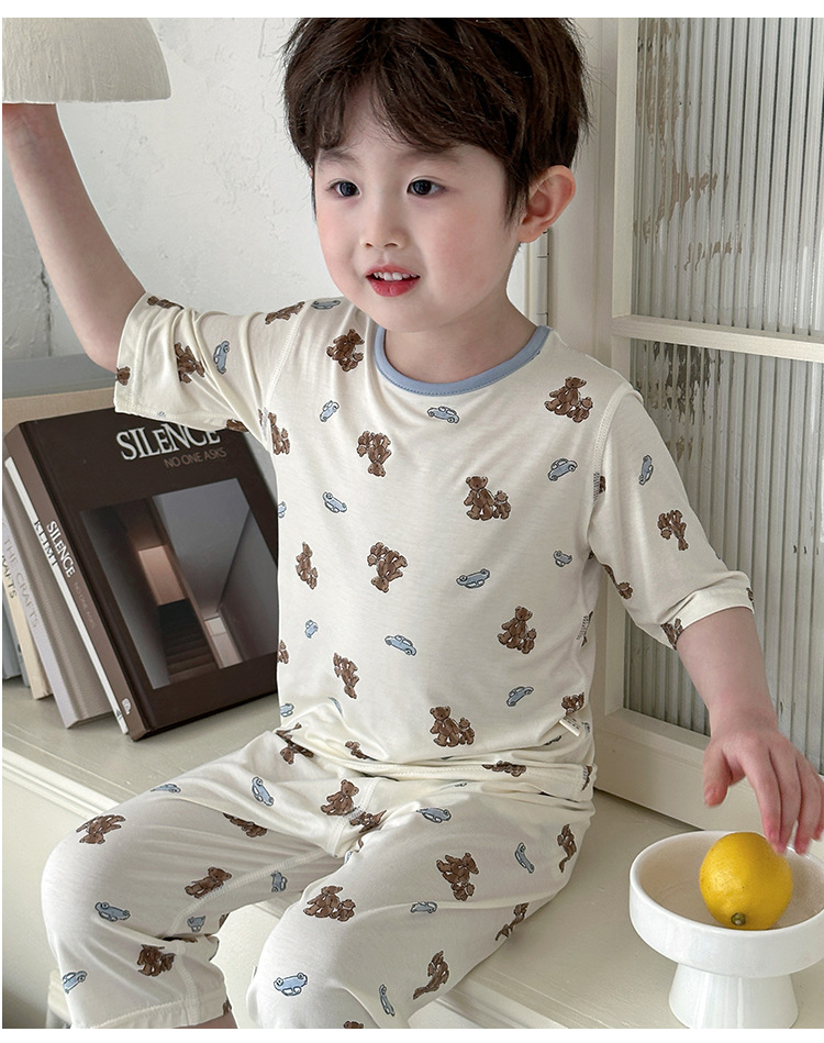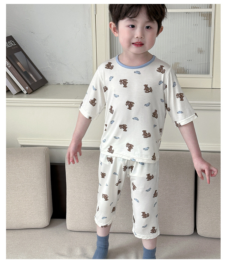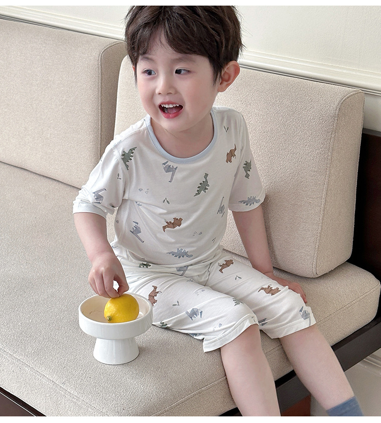 【无骨工艺❗柔软亲肤】A类儿童睡衣男孩新款夏季薄款优可丝七分袖套装男童家居空调服韩。rh