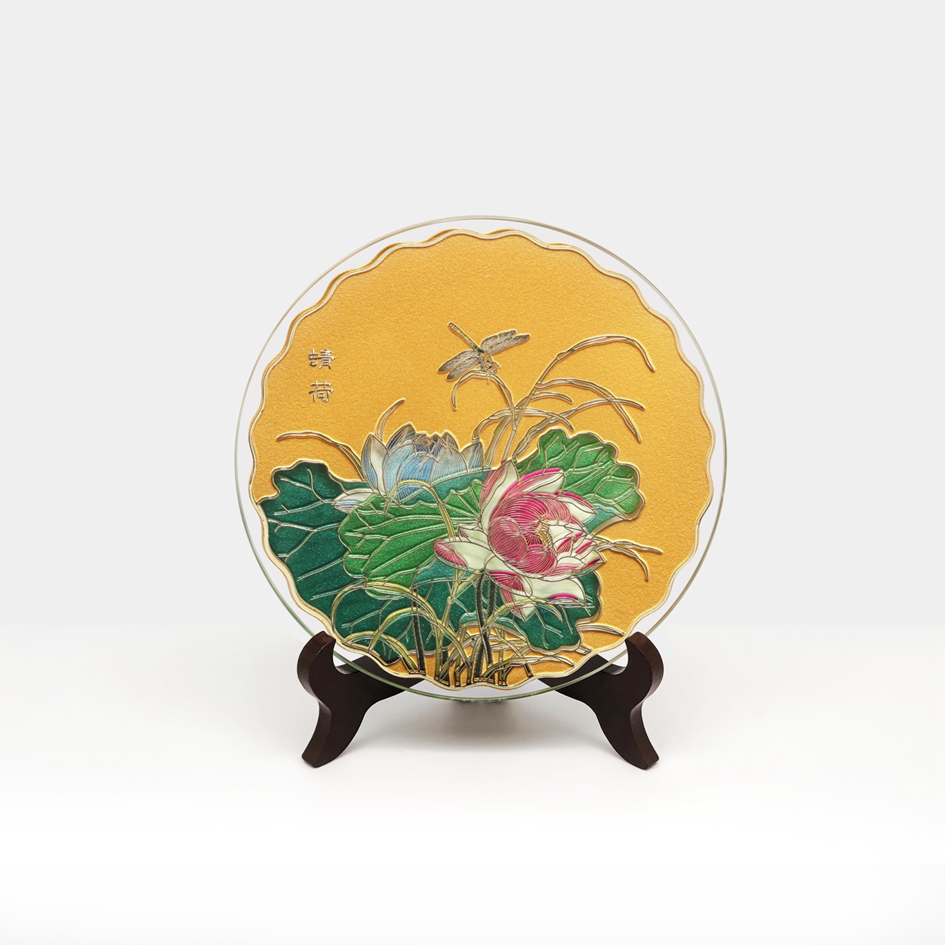 【彼达思】雅琅晶荷塘月色蜻荷雕刻艺术盘 直径175mm