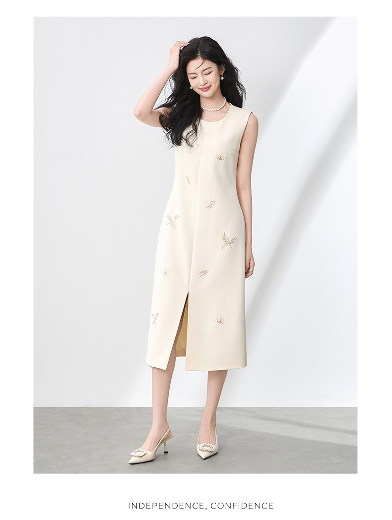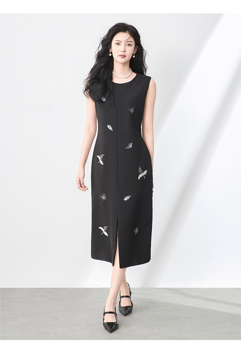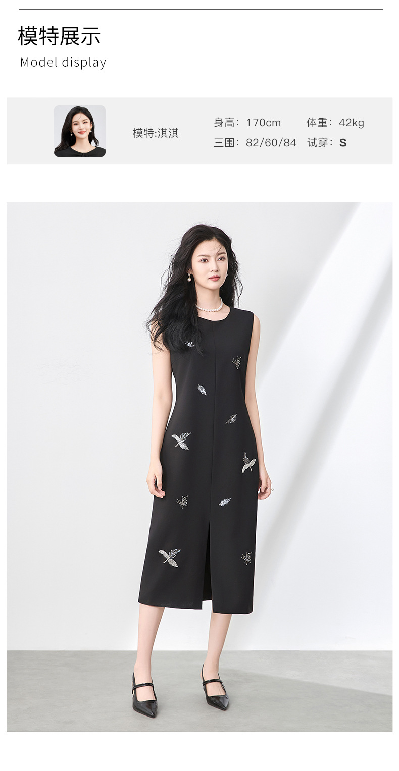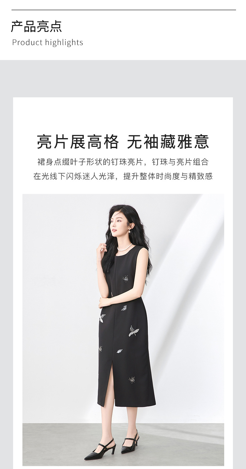 「高货wl」全新升级【铂金会员358/天猫479/差价121】(00553)洛诗琳优雅钉珠亮片连衣裙2025夏季圆领显瘦无袖背心裙