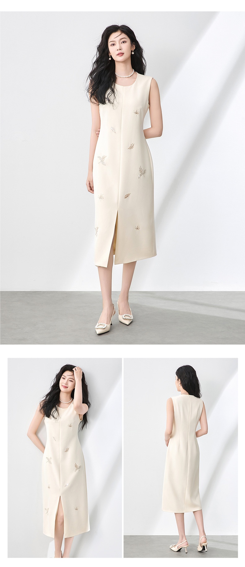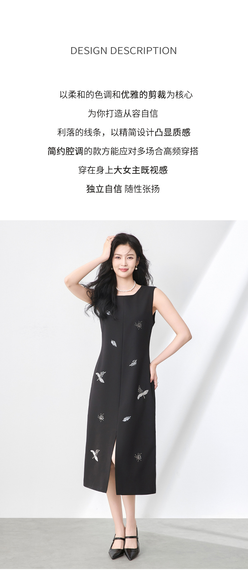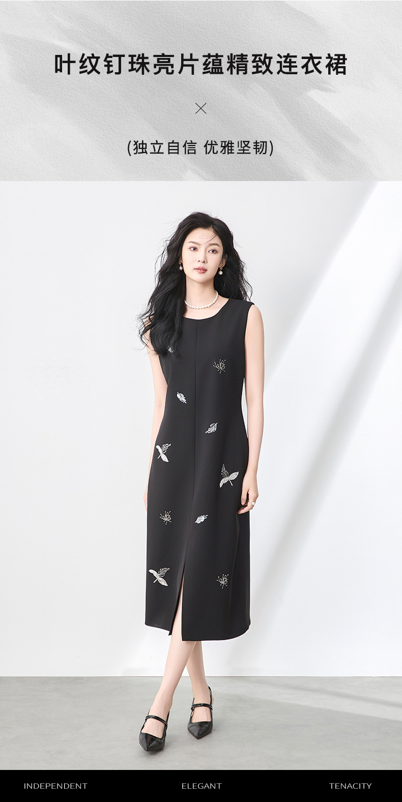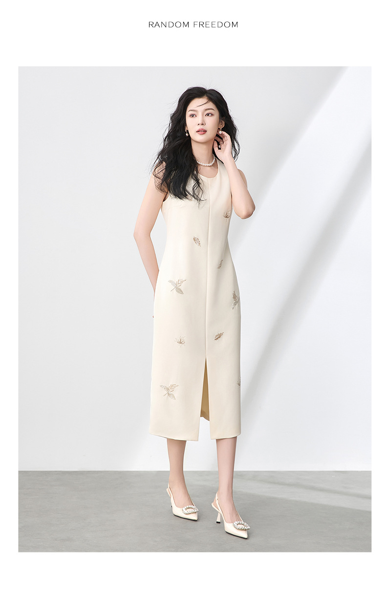 「高货wl」全新升级【铂金会员358/天猫479/差价121】(00553)洛诗琳优雅钉珠亮片连衣裙2025夏季圆领显瘦无袖背心裙