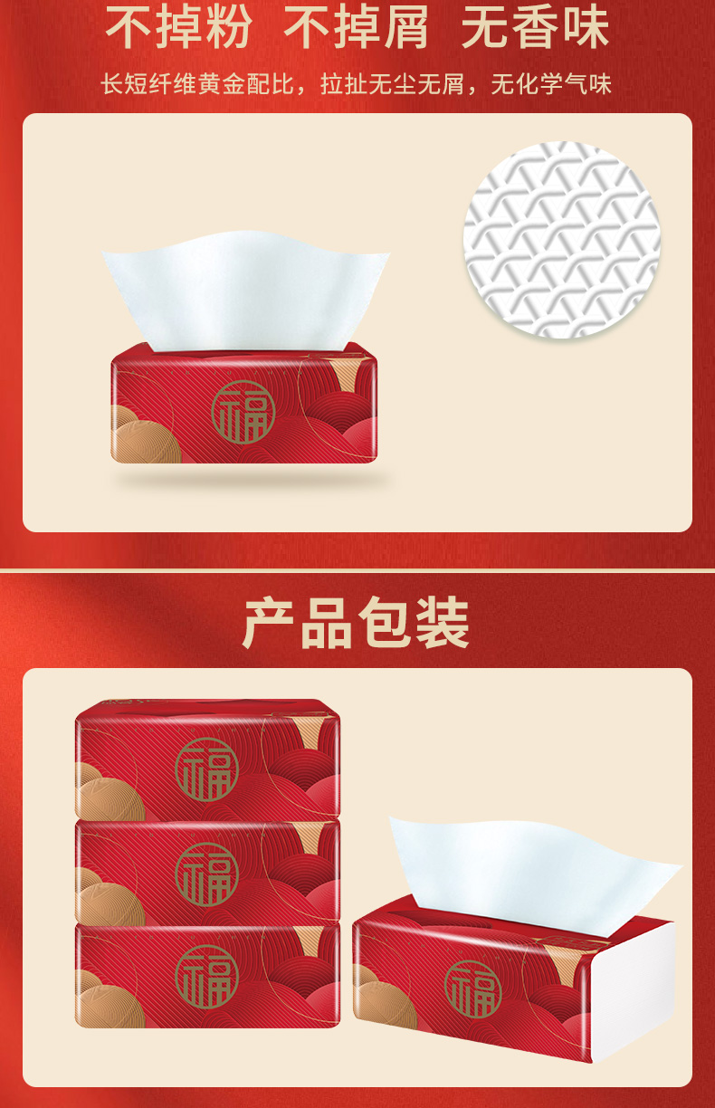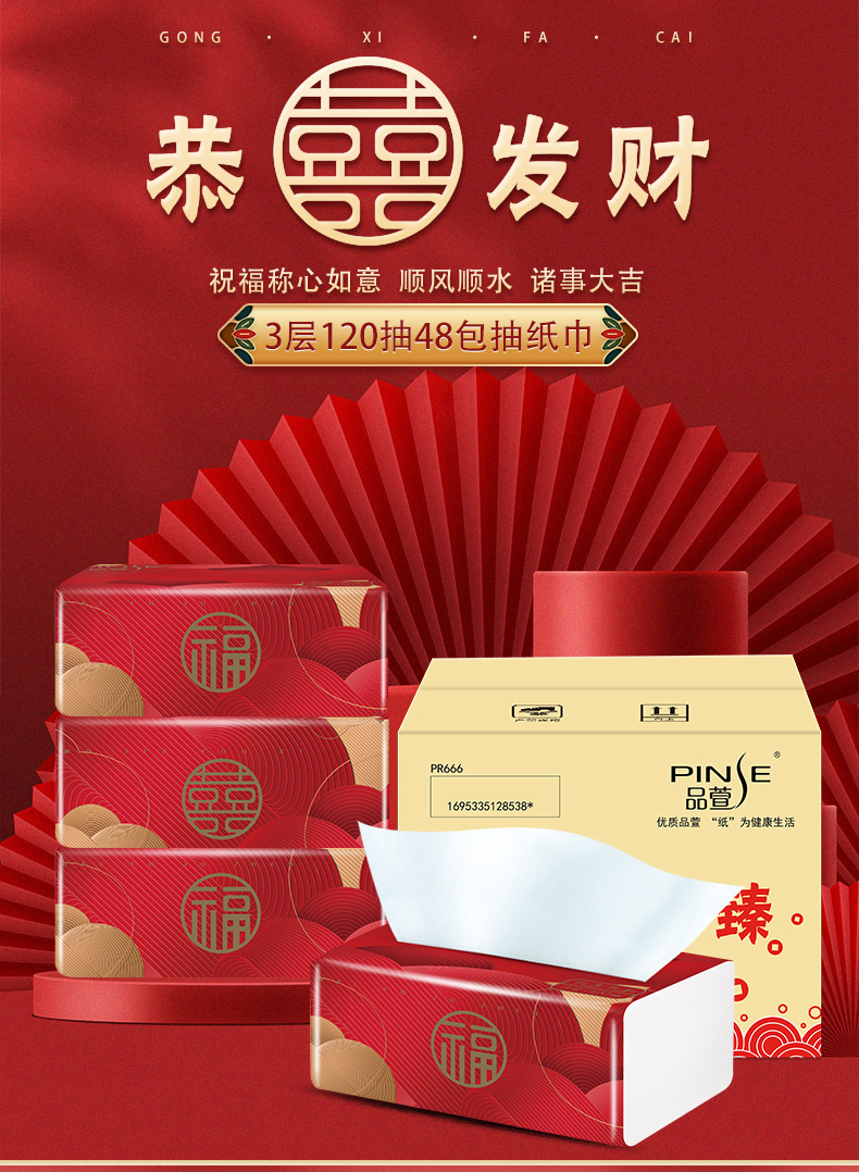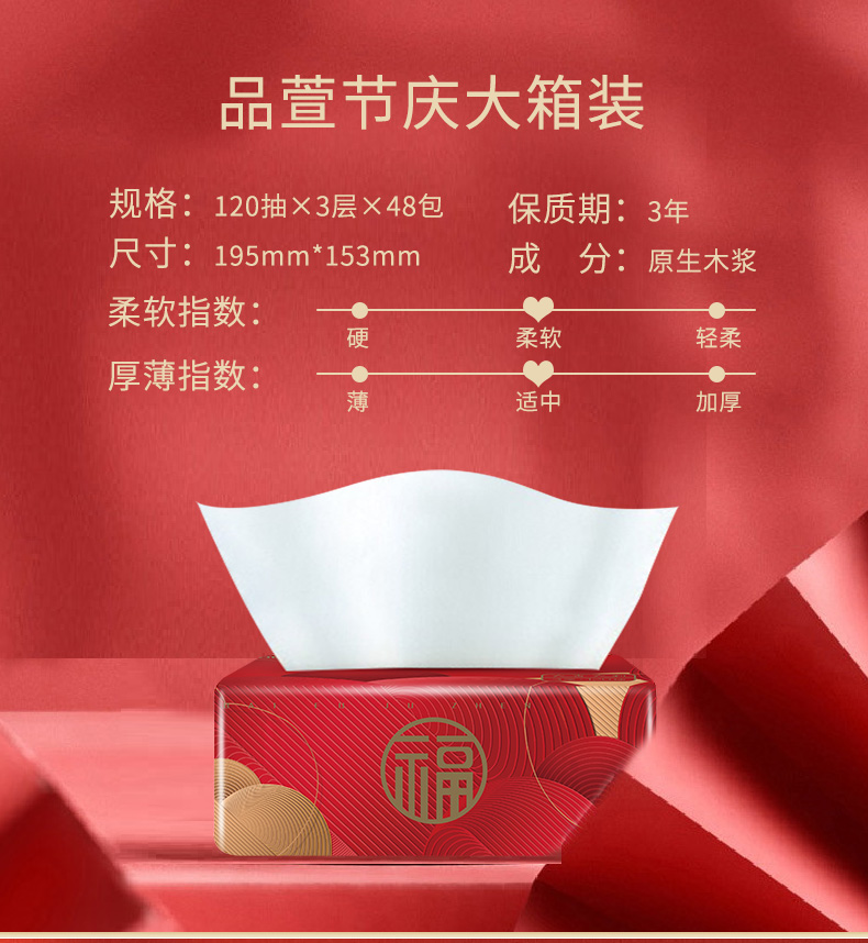 品萱 节庆装 喜庆 柔软抽纸3层120抽48包大箱装 3包*16提