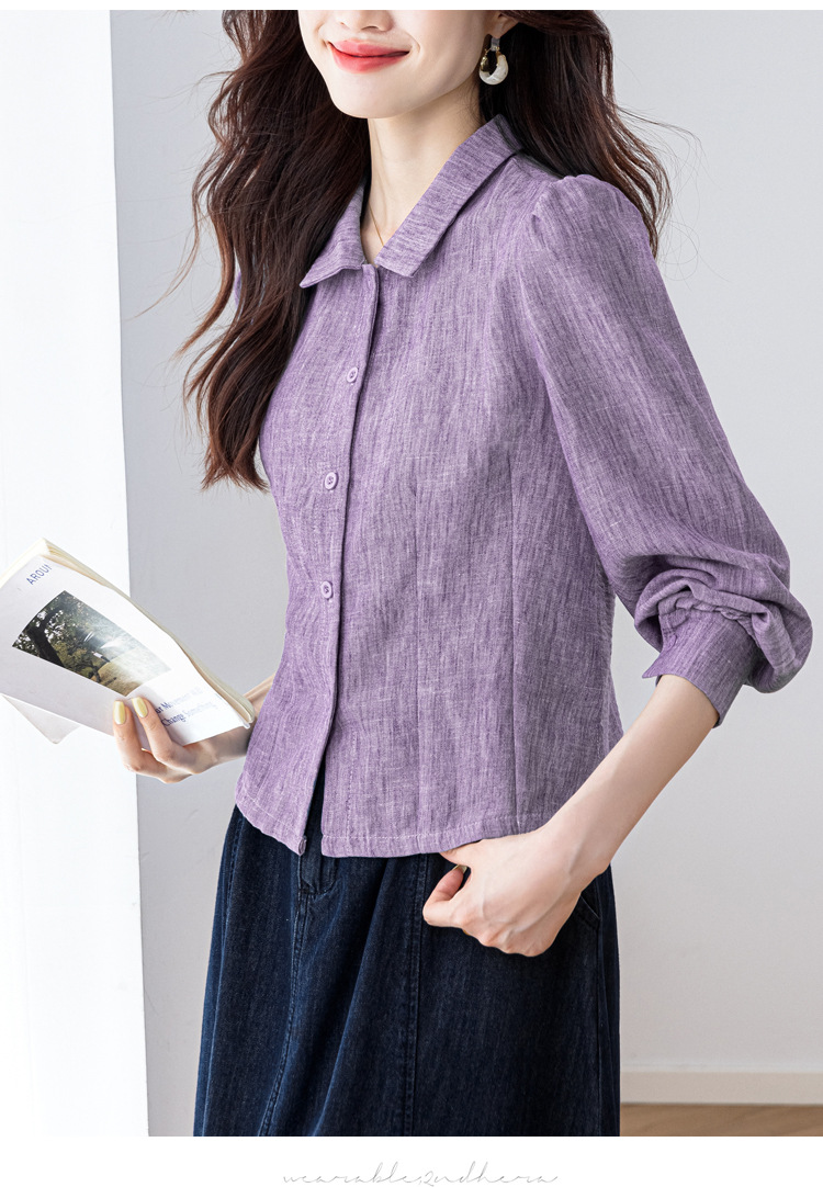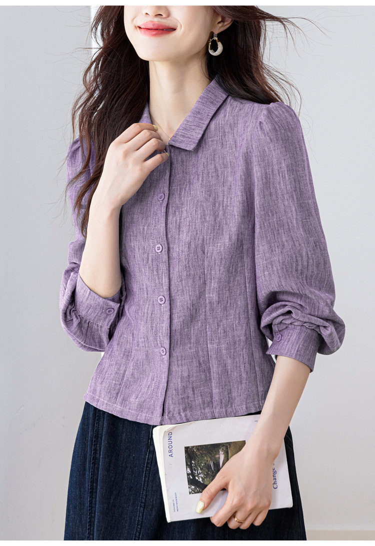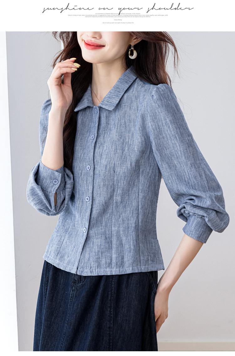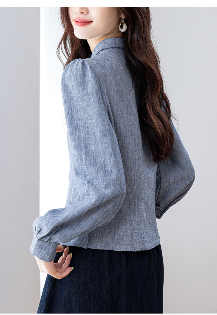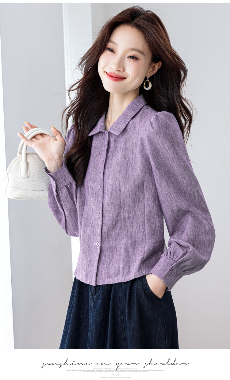 KQL2025年秋季新款亚麻百搭修身长袖刺绣灯笼袖衬衫宽松显瘦上衣批发