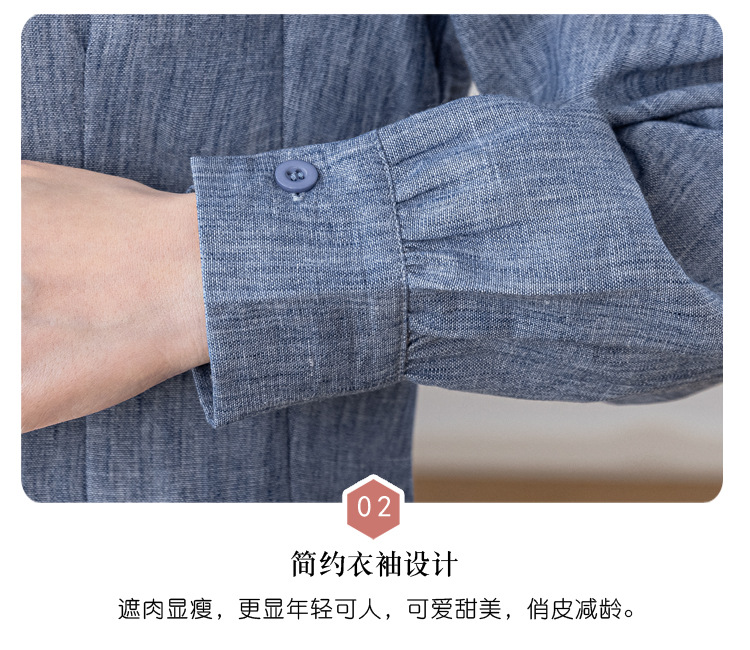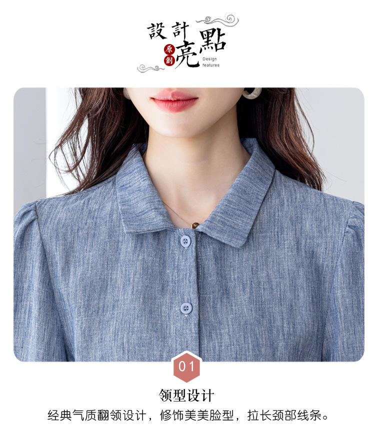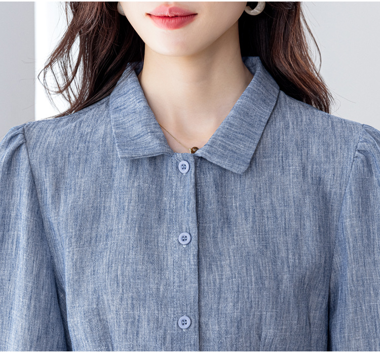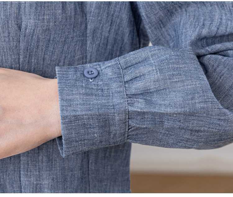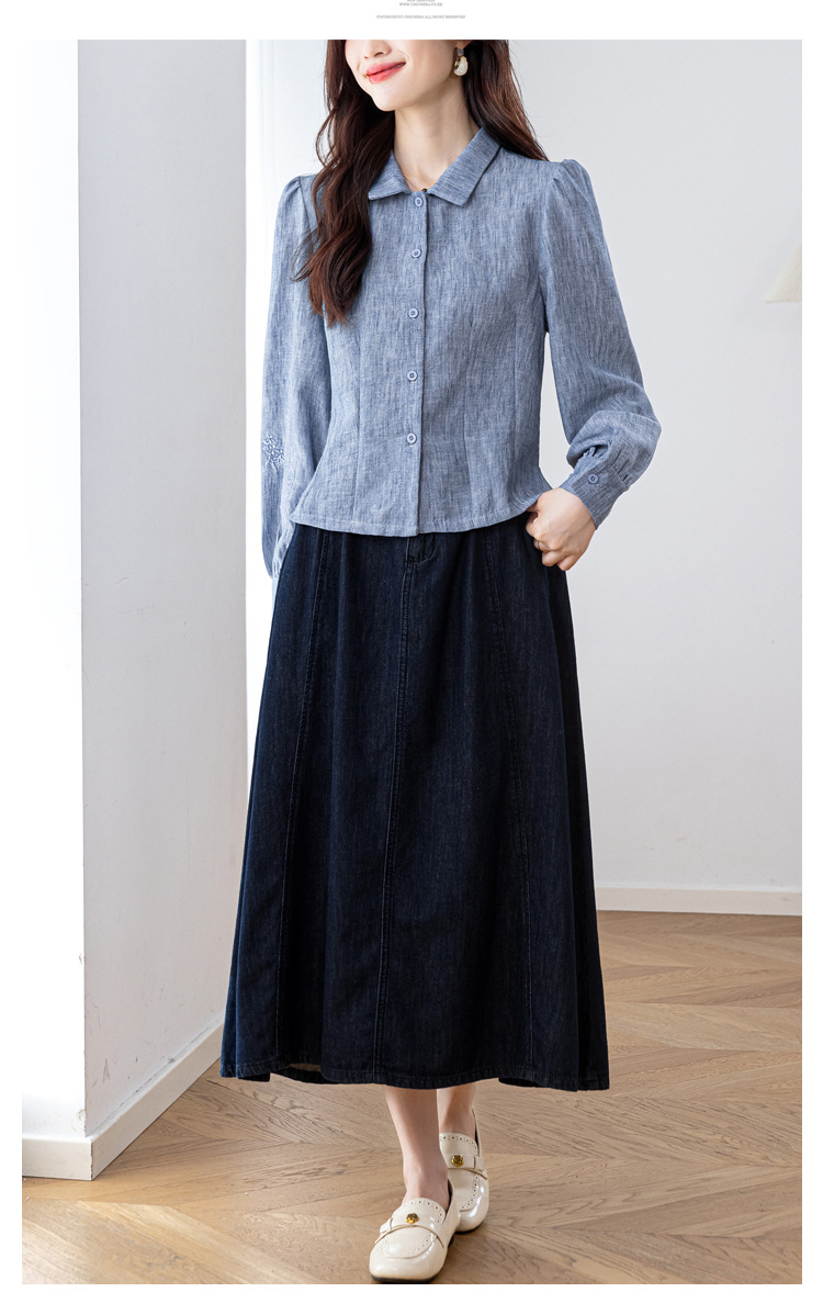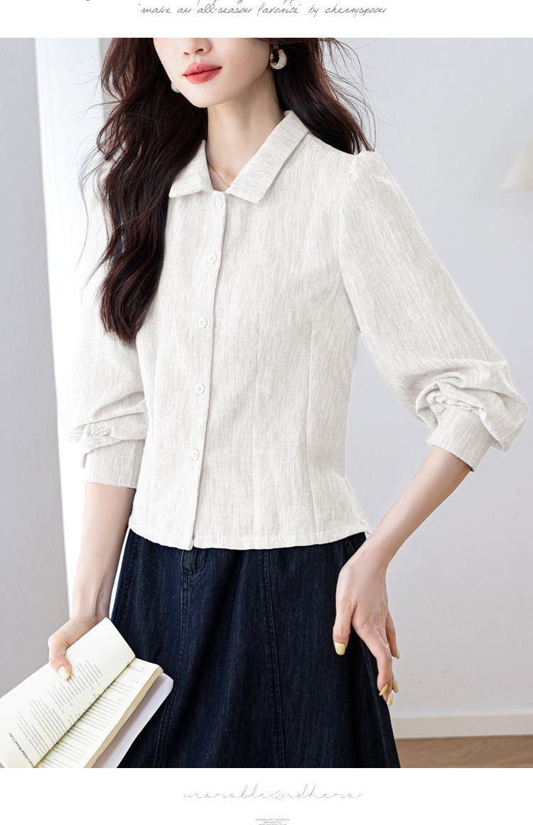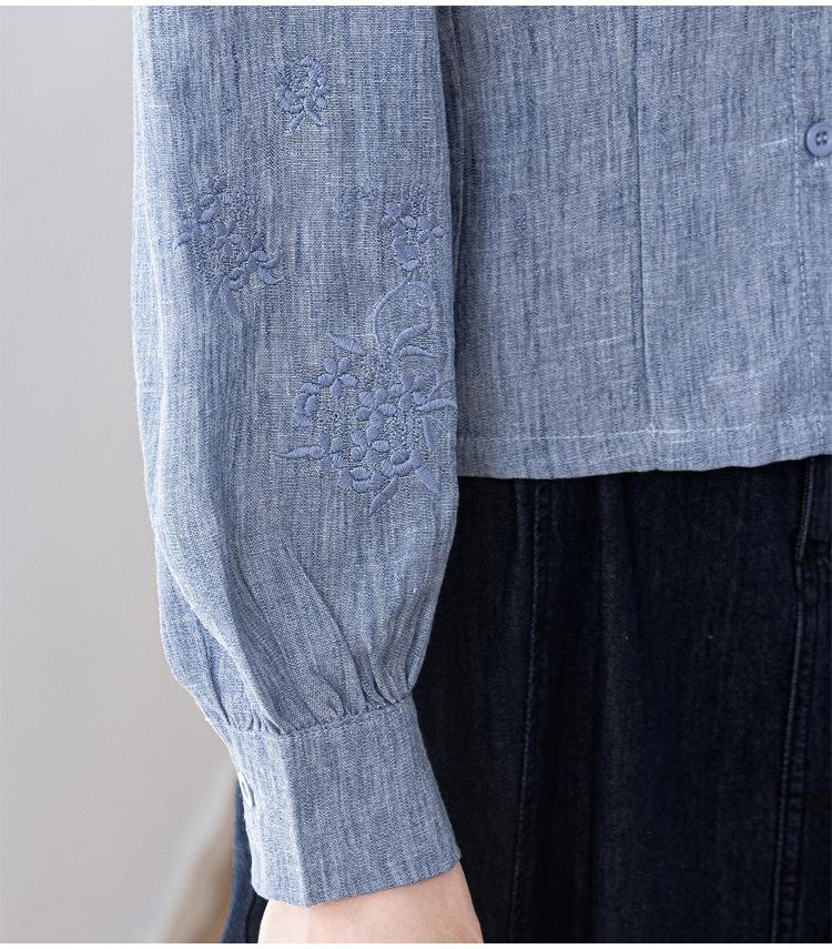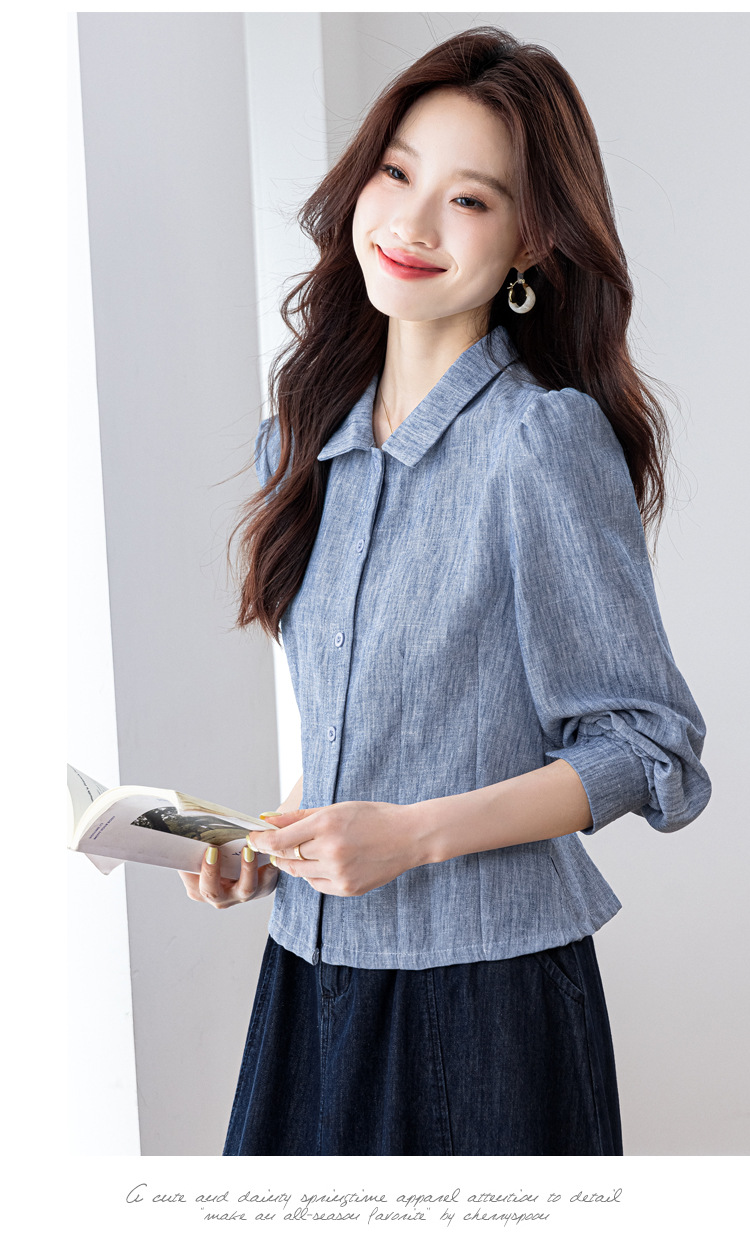KQL2025年秋季新款亚麻百搭修身长袖刺绣灯笼袖衬衫宽松显瘦上衣批发