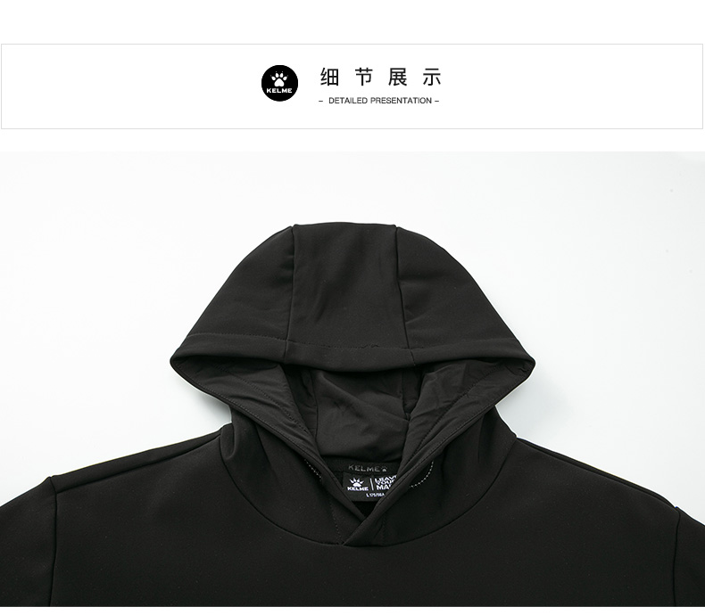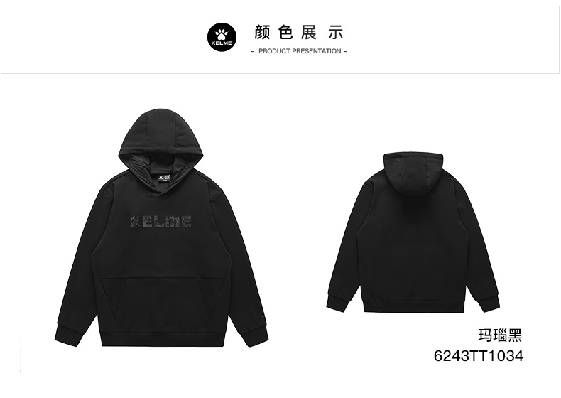 卡尔美休闲连帽卫衣秋冬新款男宽松纯色针织套头衫加绒加厚