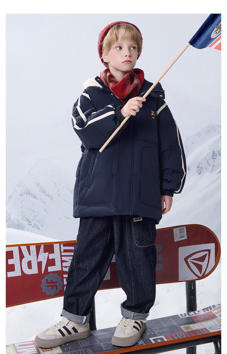 【MQD】【三防】童装儿童冬季新款小熊刺绣标连帽羽绒服保