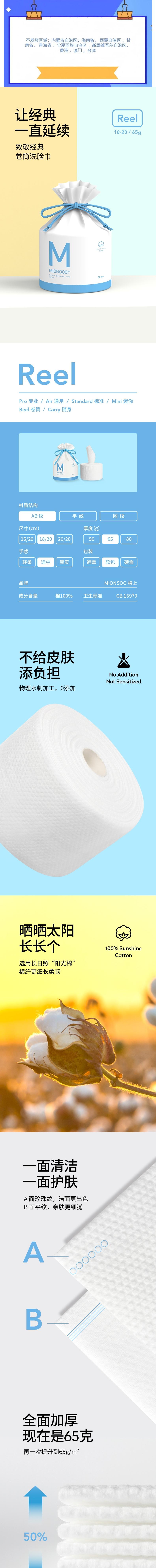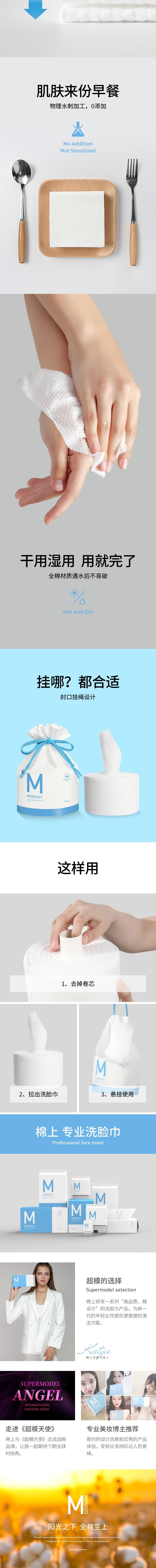 棉上 卷筒式洗脸巾一次性加厚棉柔巾80抽/卷*3卷 M1009-3