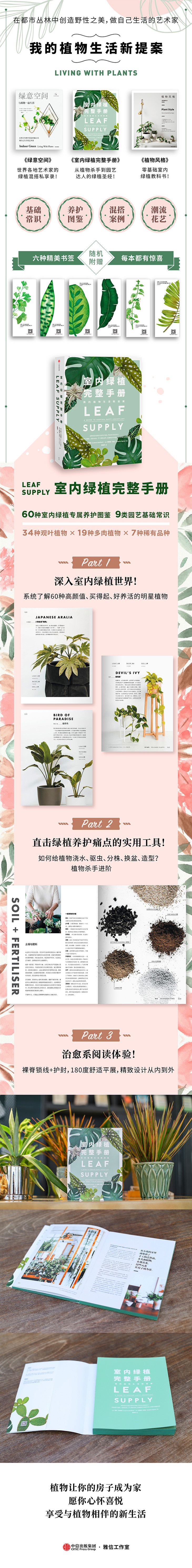 1.内容经典全面,从植物杀手进阶园艺达人的实用工具书!从基础的准备工作,到挑选合适的植物并设计搭配,有数十位室内设计师、植物商店老板和艺术生活家贡献独到心得,适合新手入门进阶,帮助了解室内植物的特性,利用它们将家打造成充满生机的伊甸园。