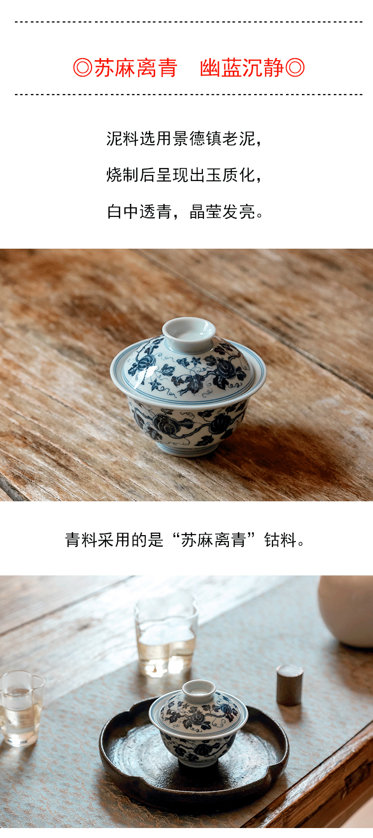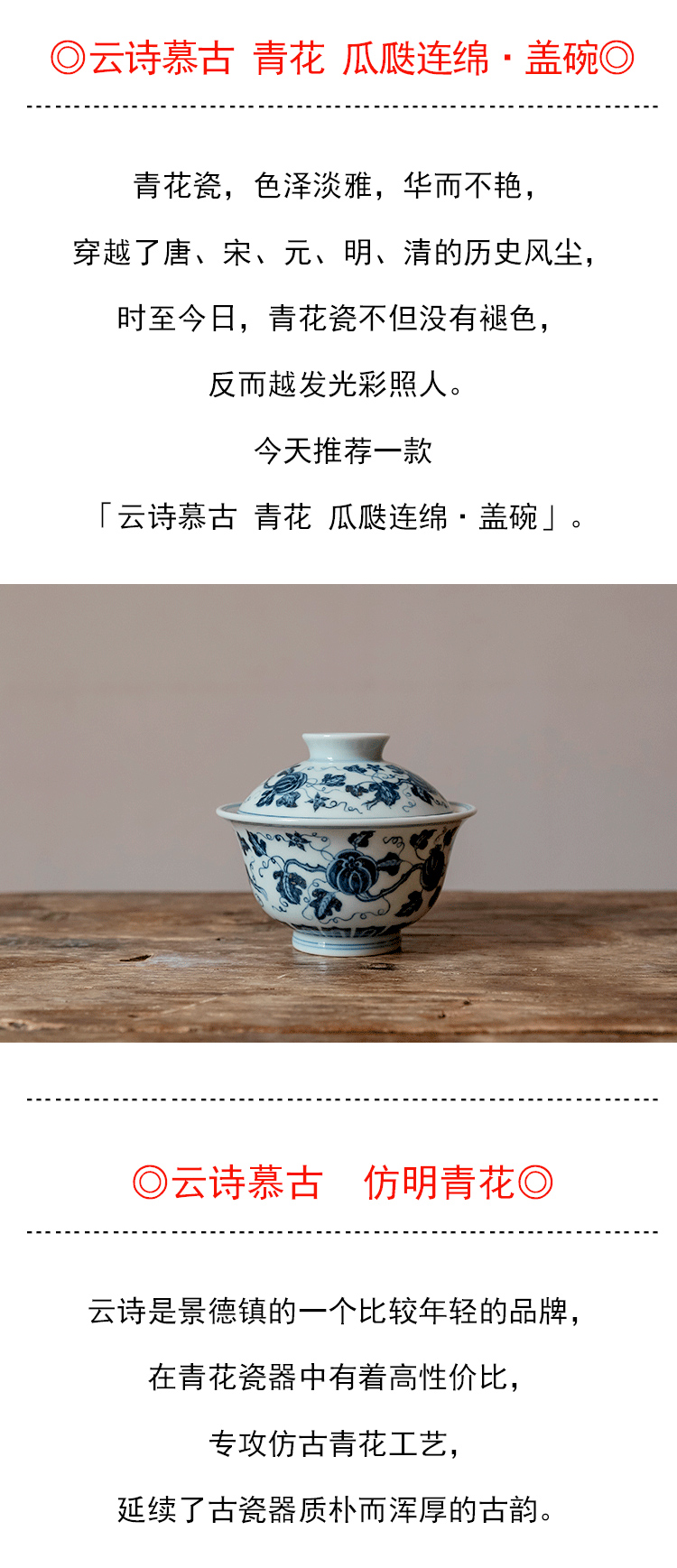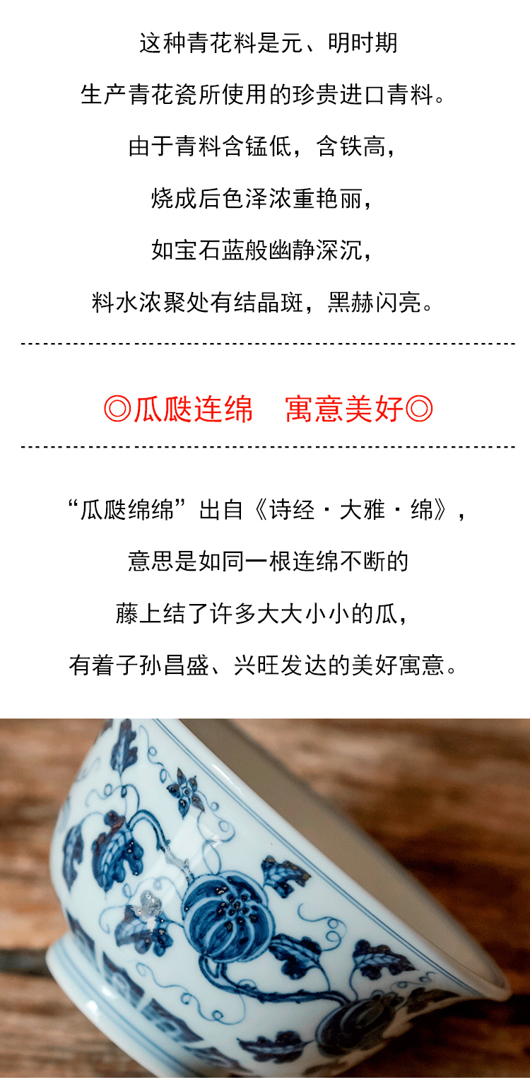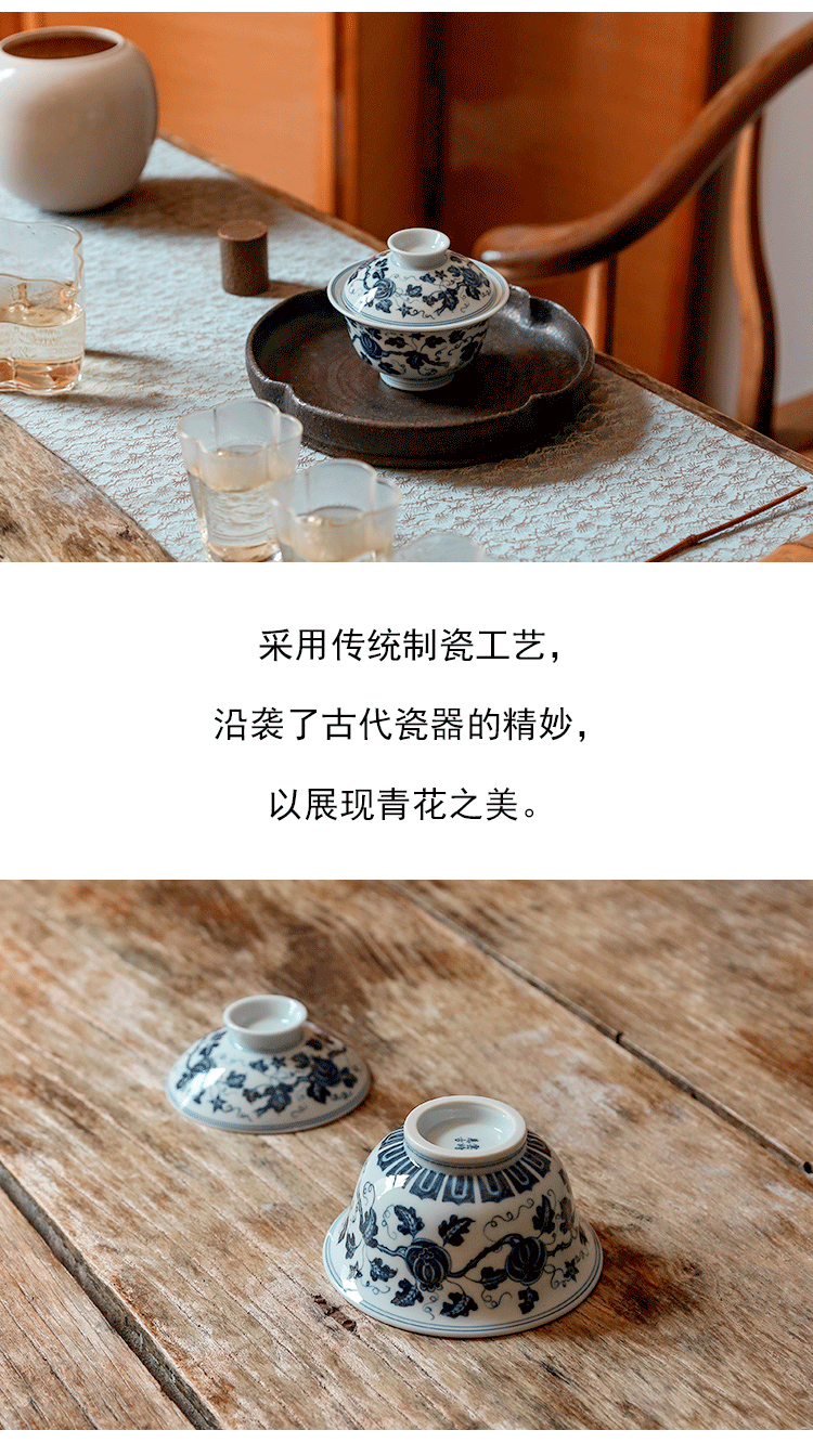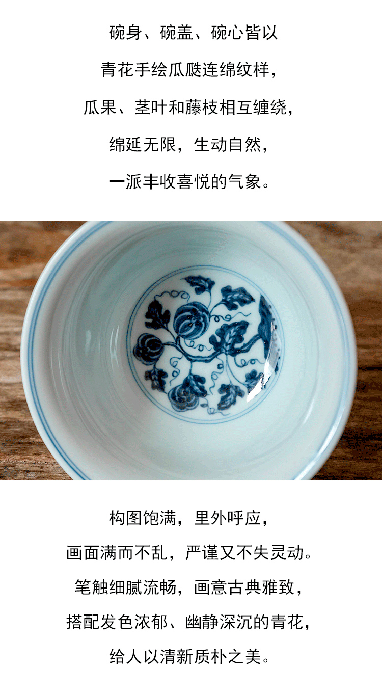 茶香记 云诗慕古 青花 瓜瓞连绵·盖碗 仿明青花 幽蓝淡雅 寓意美好