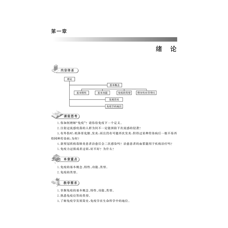 以免疫制剂产业的三大种类——诊断制剂、预防制剂、治疗制剂为主线,分别为绪论、免疫系统与免疫活性分子(免疫系统、抗体、细胞因子、补体)、免疫刺激分子与免疫应答(抗原、免疫细胞膜分子、免疫应答)、免疫制剂与防治(免疫检测、免疫防治与制剂制备),分为十二章。每一章节附录知识体系、课前思考、理解与思考、课外拓展、章节实验与研究、章节研究性学习主题、课程思政、课后思考、课外阅读等栏目