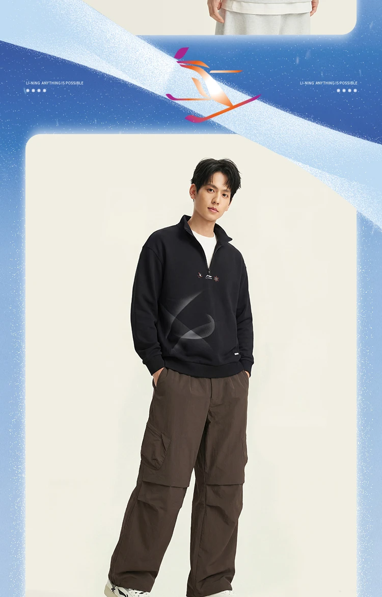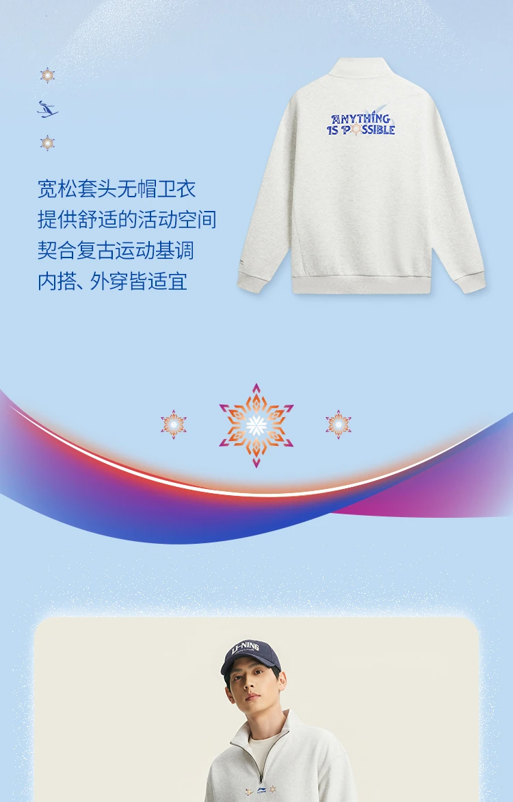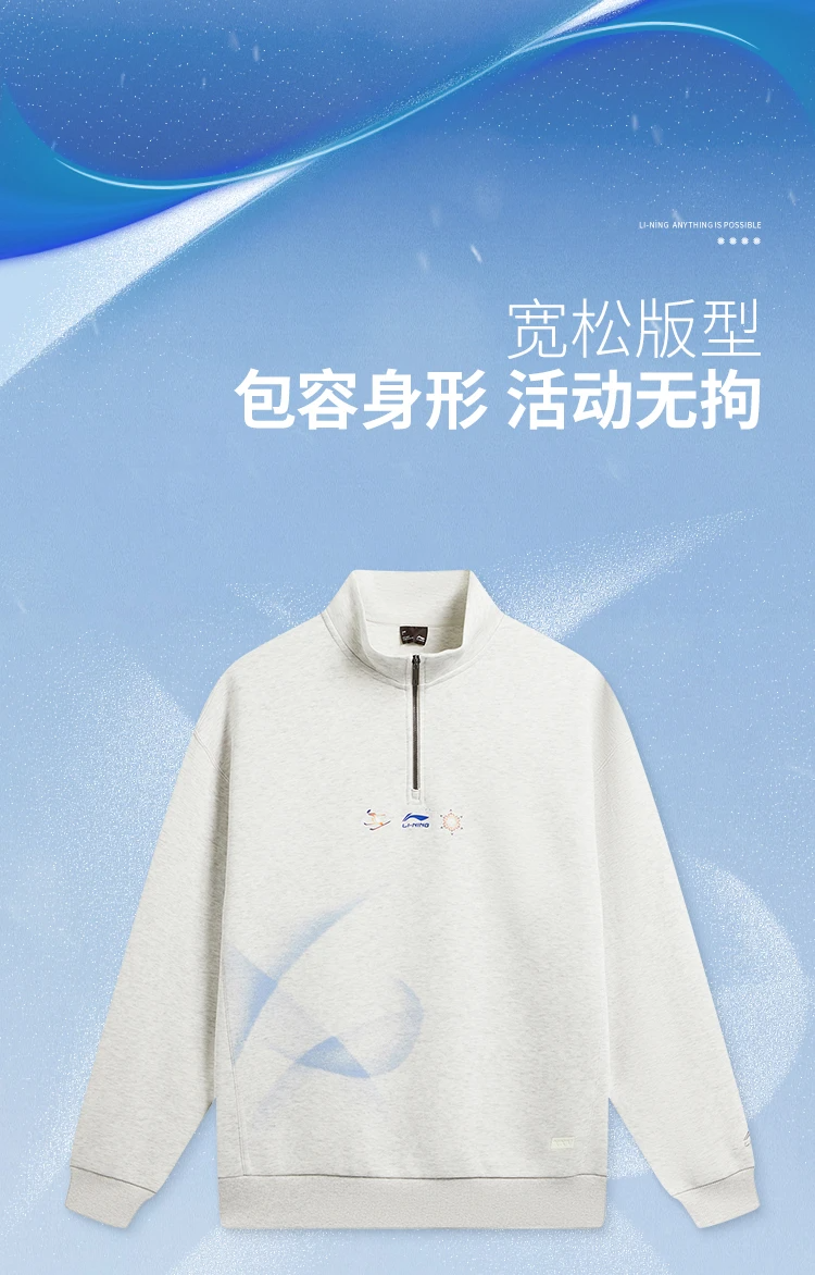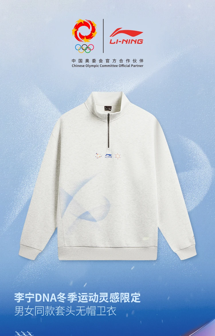 李宁DNA冬季运动灵感限定男女同款宽松套头卫衣AWDWC17