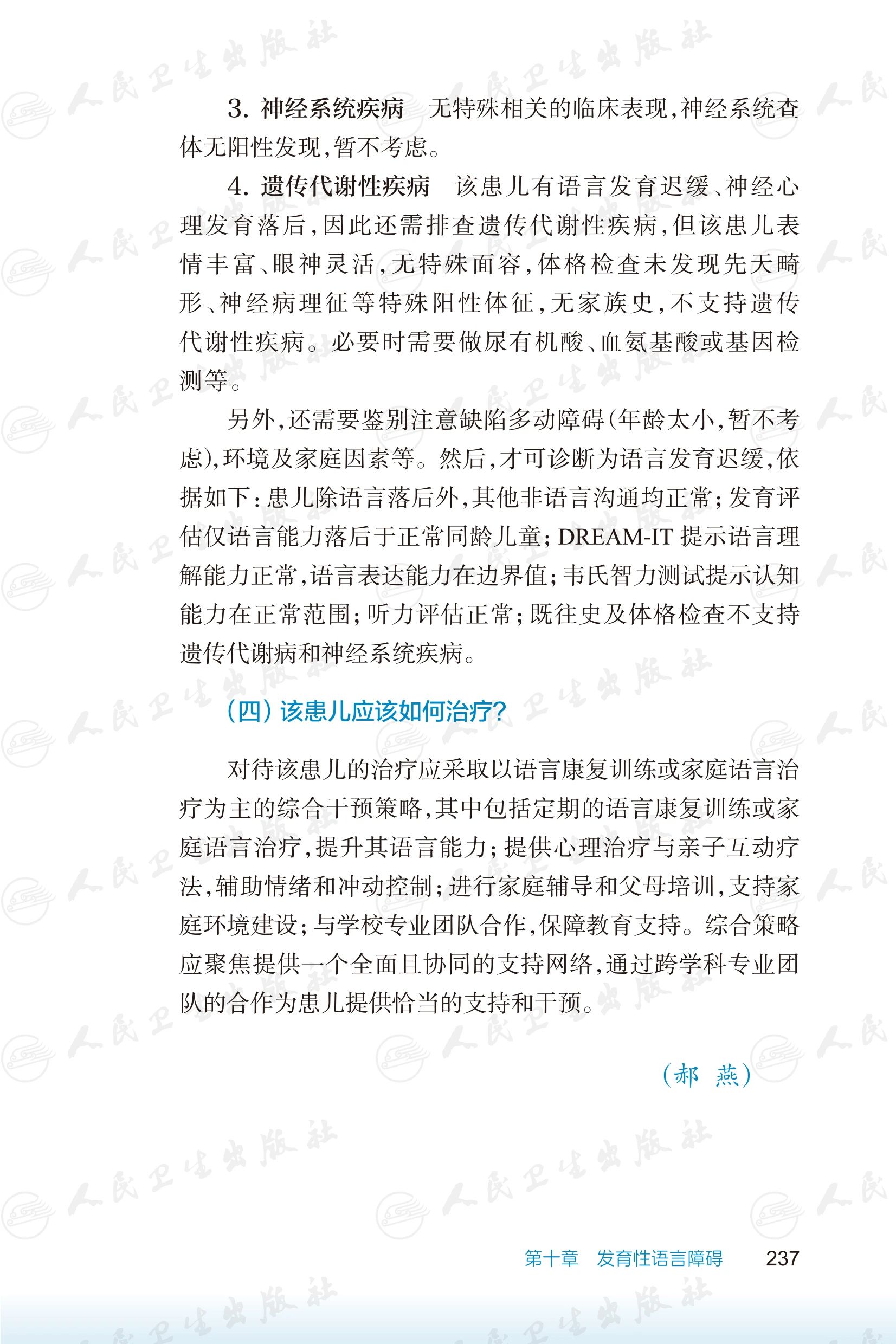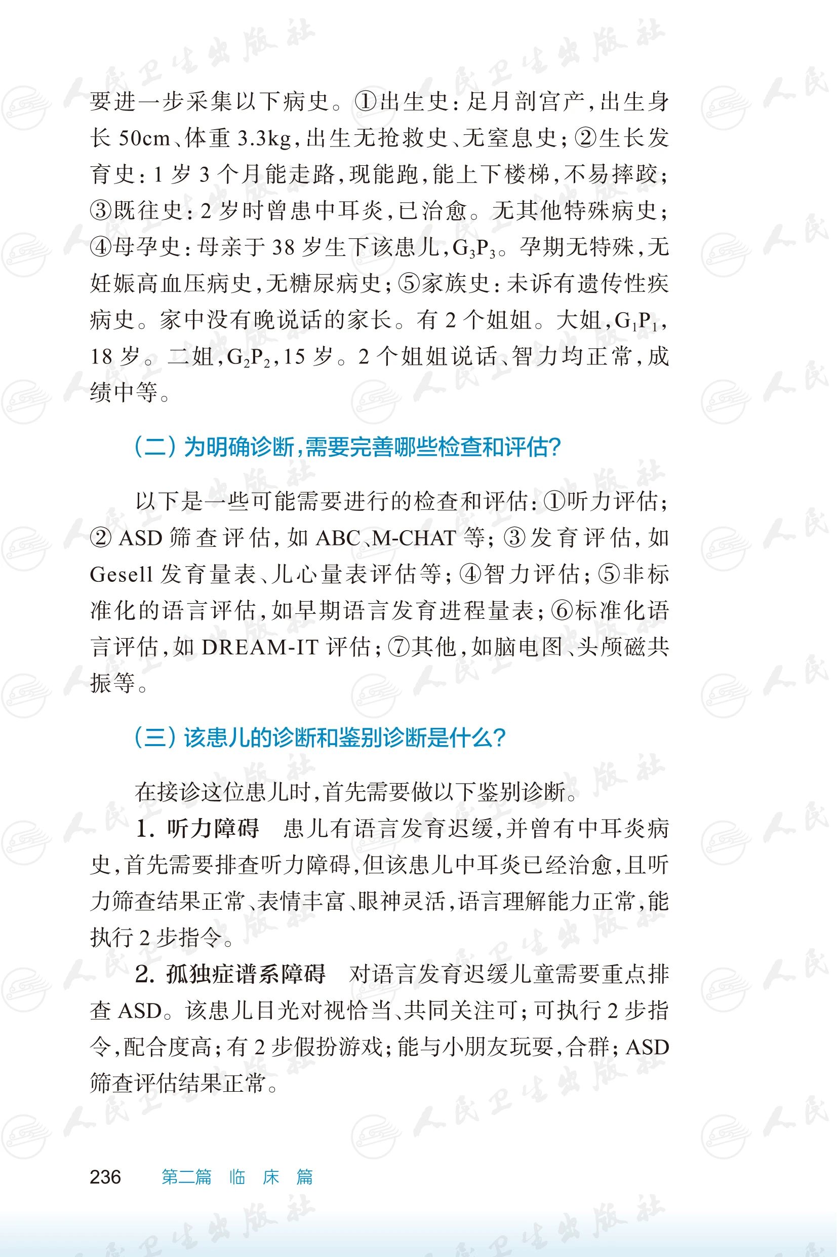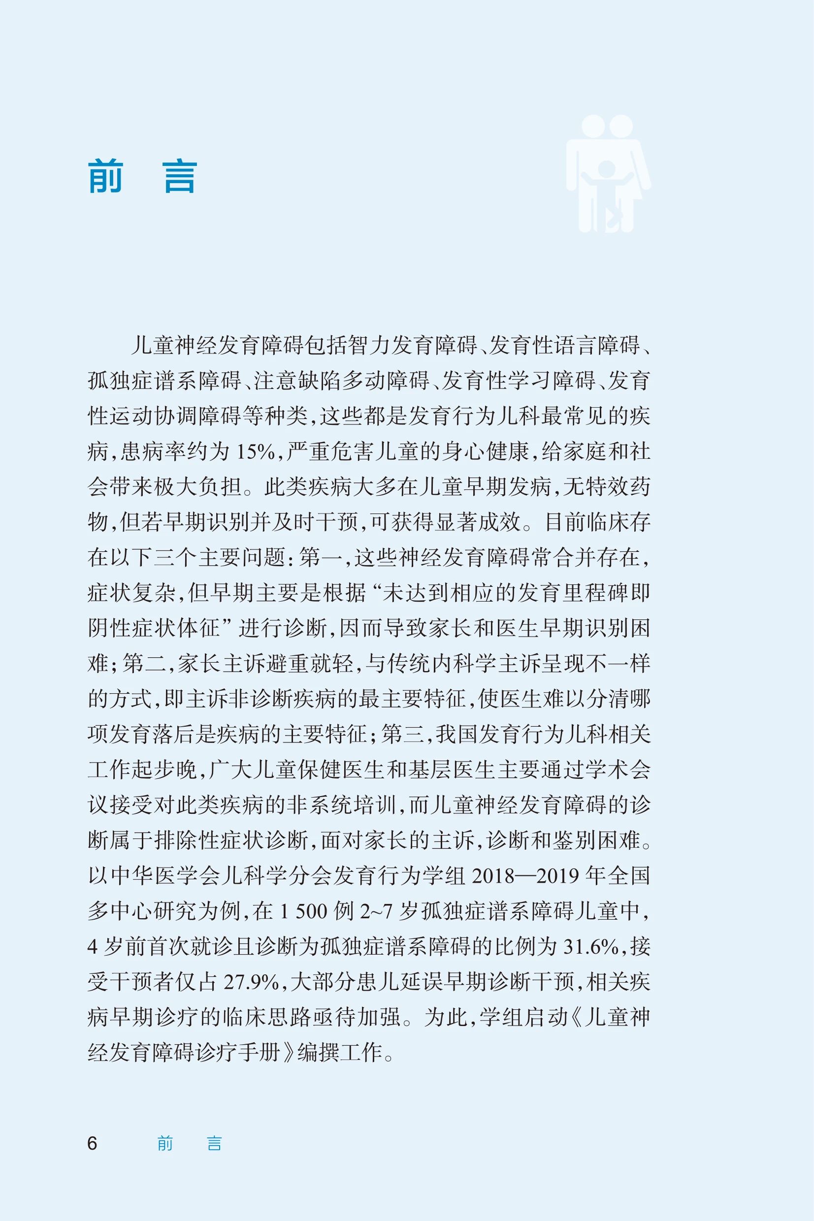 2. 编写条理清晰,注重实用,从基础知识到临床诊疗全方位阐述。针对临床常见的发育障碍合并存在、难以早期识别、主诉重点不明、诊断和鉴别诊断困难等问题,提供了清晰的诊疗思路和鉴别方法,直击临床工作痛点。