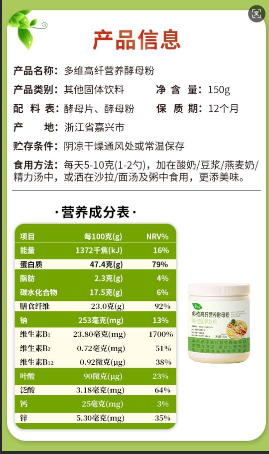 【预售 4.7日发货】多维高纤营养酵母粉 | 150g/罐 补充B族维生素 素芝士 拌沙拉拌粥 悦意