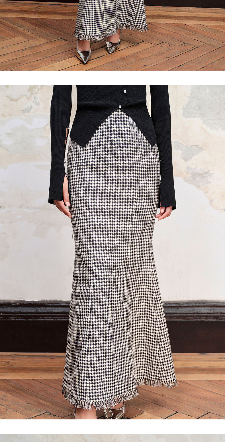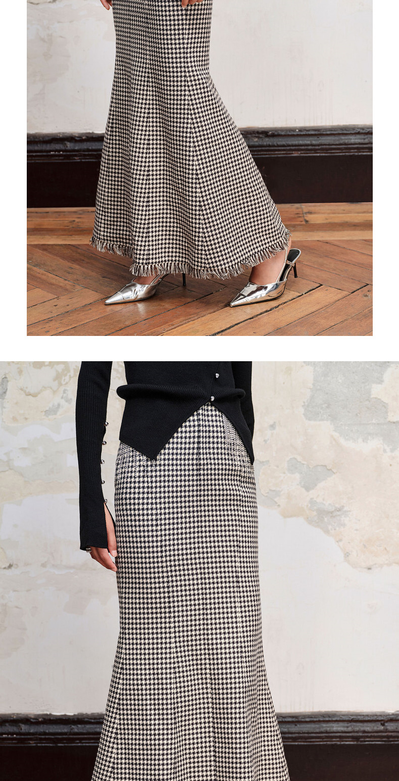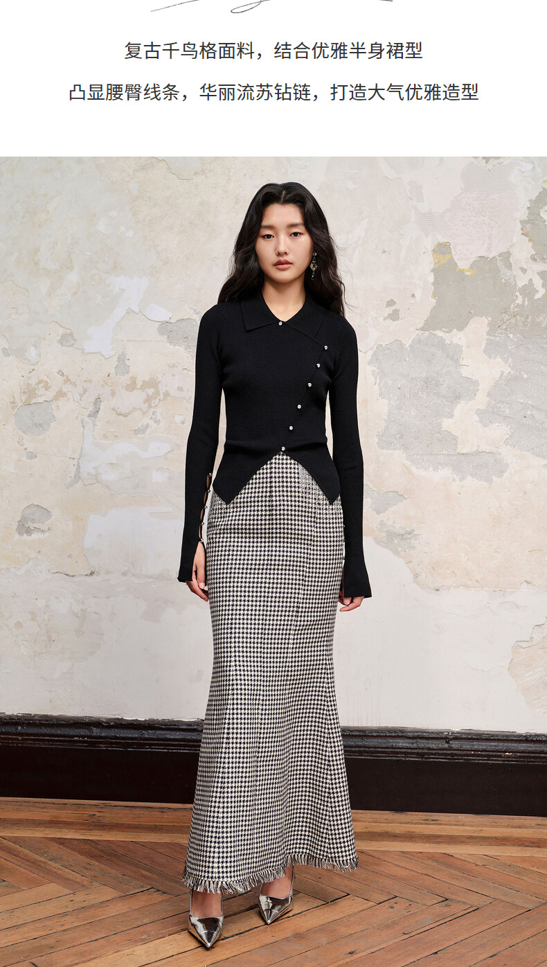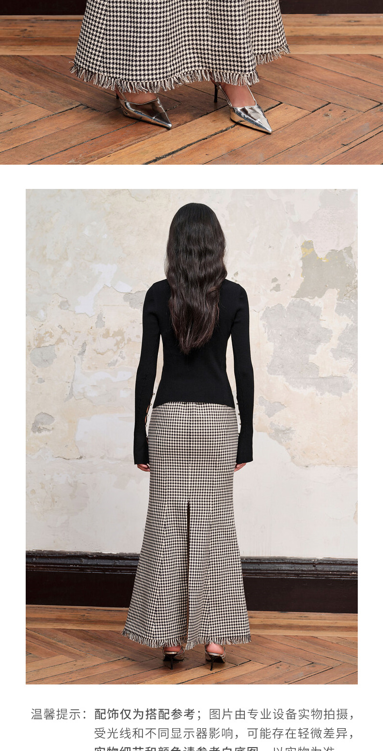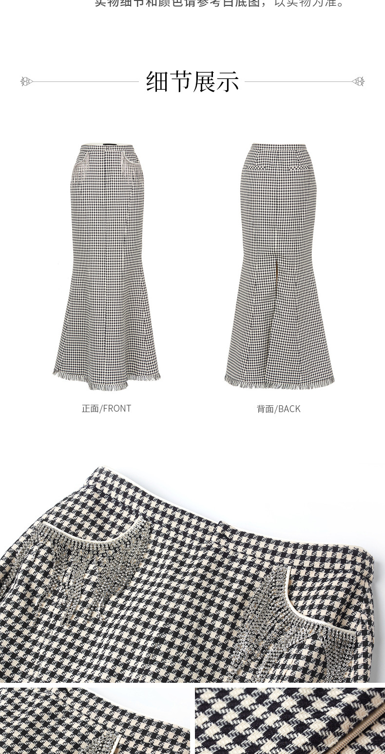 MAXRIENY法式复古感千鸟格鱼尾半裙23秋冬半身裙(货号:MC88SK569)