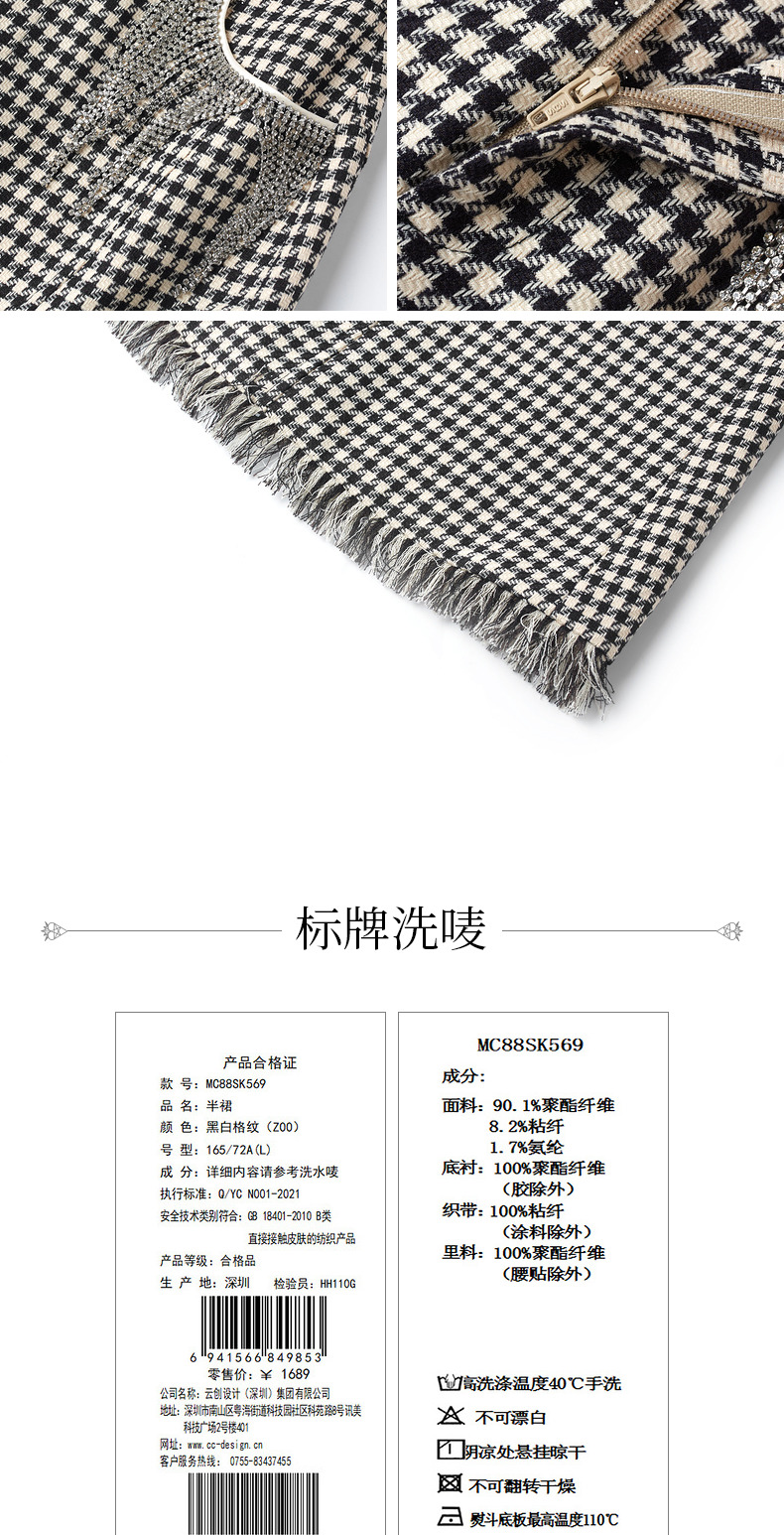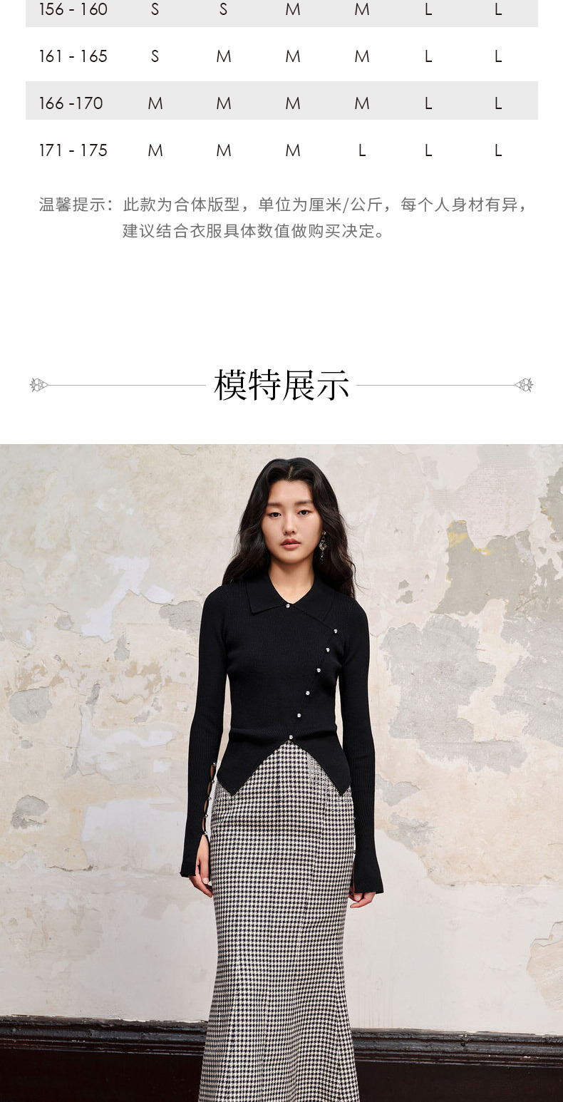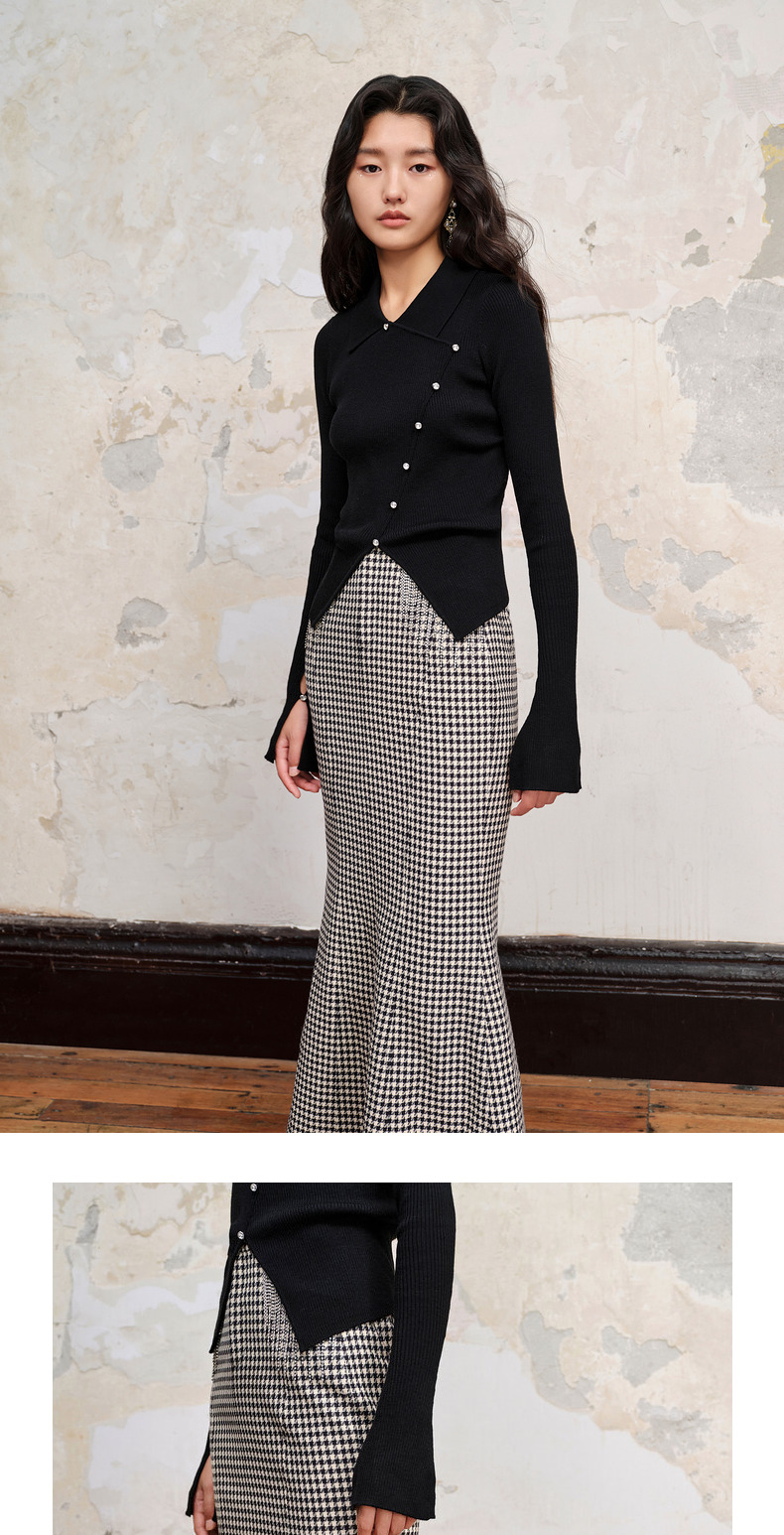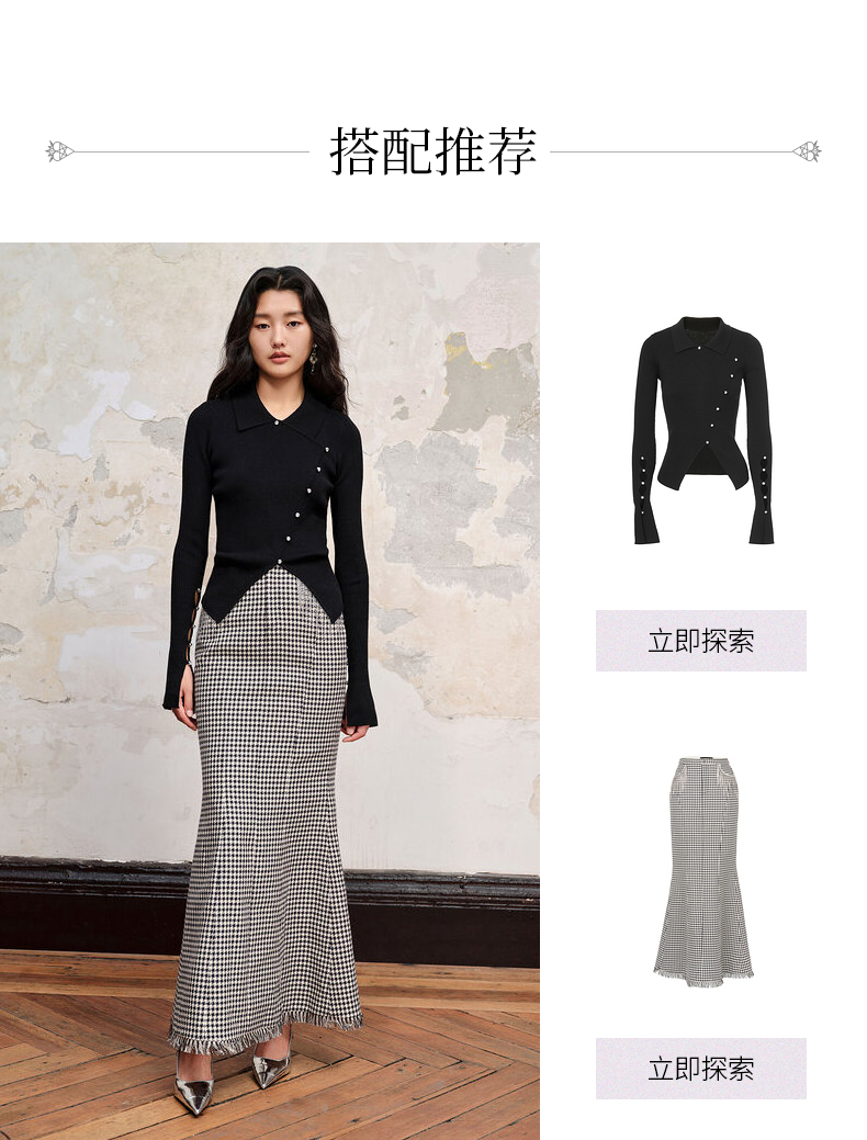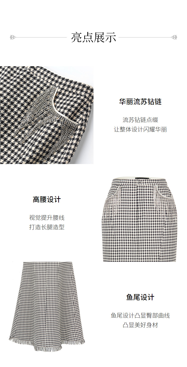 MAXRIENY法式复古感千鸟格鱼尾半裙23秋冬半身裙(货号:MC88SK569)