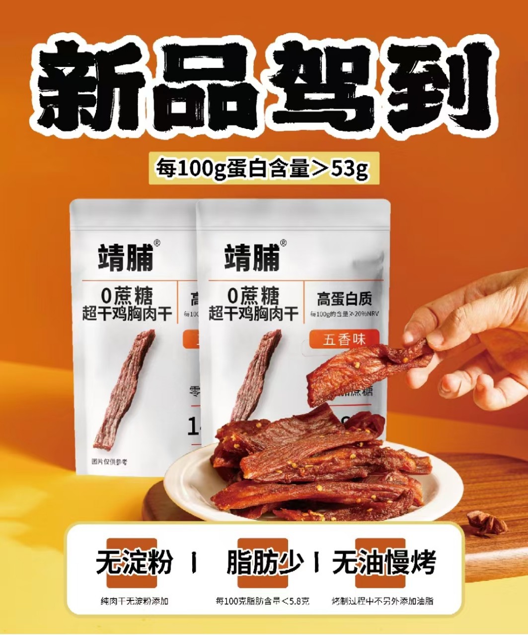 【无淀粉脂肪少❗️低温慢烤工艺】靖脯超干鸡胸肉干50克麻辣味五香味风干鸡胸肉一件40包。ja
