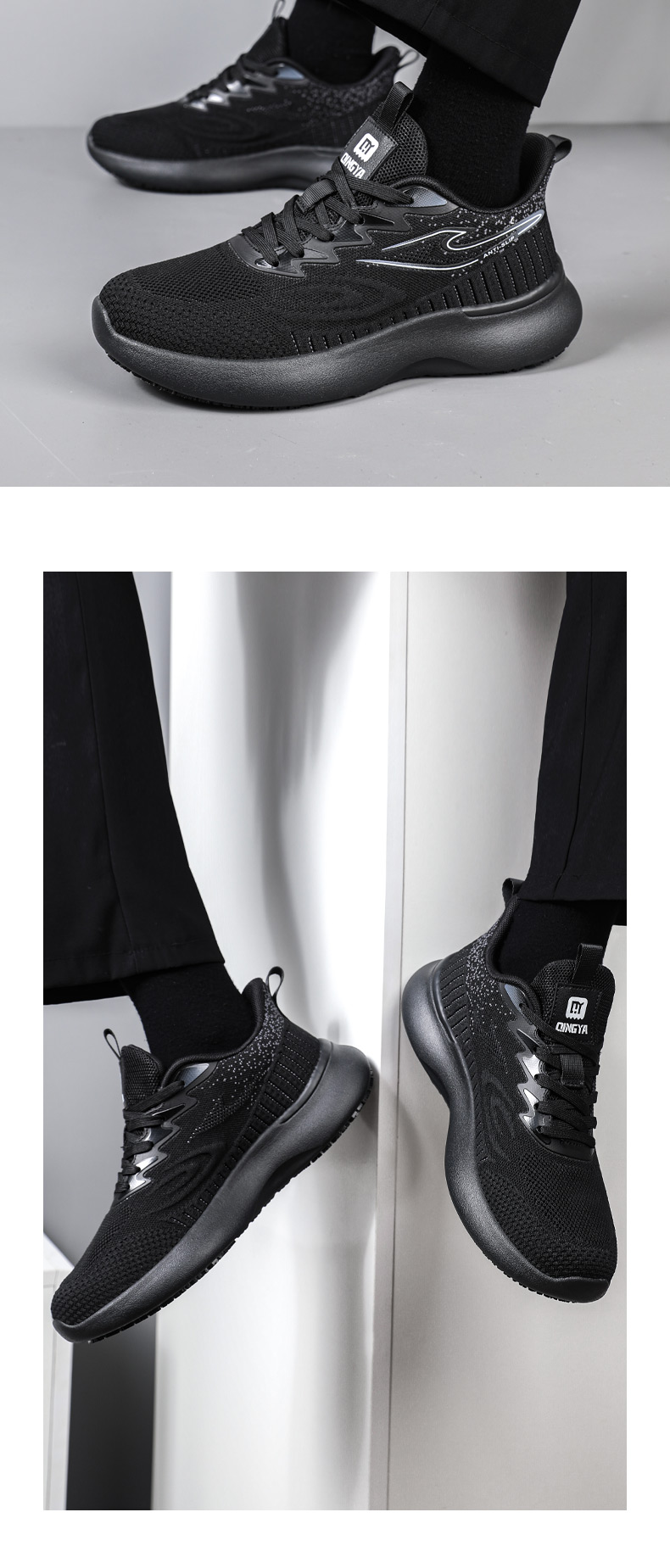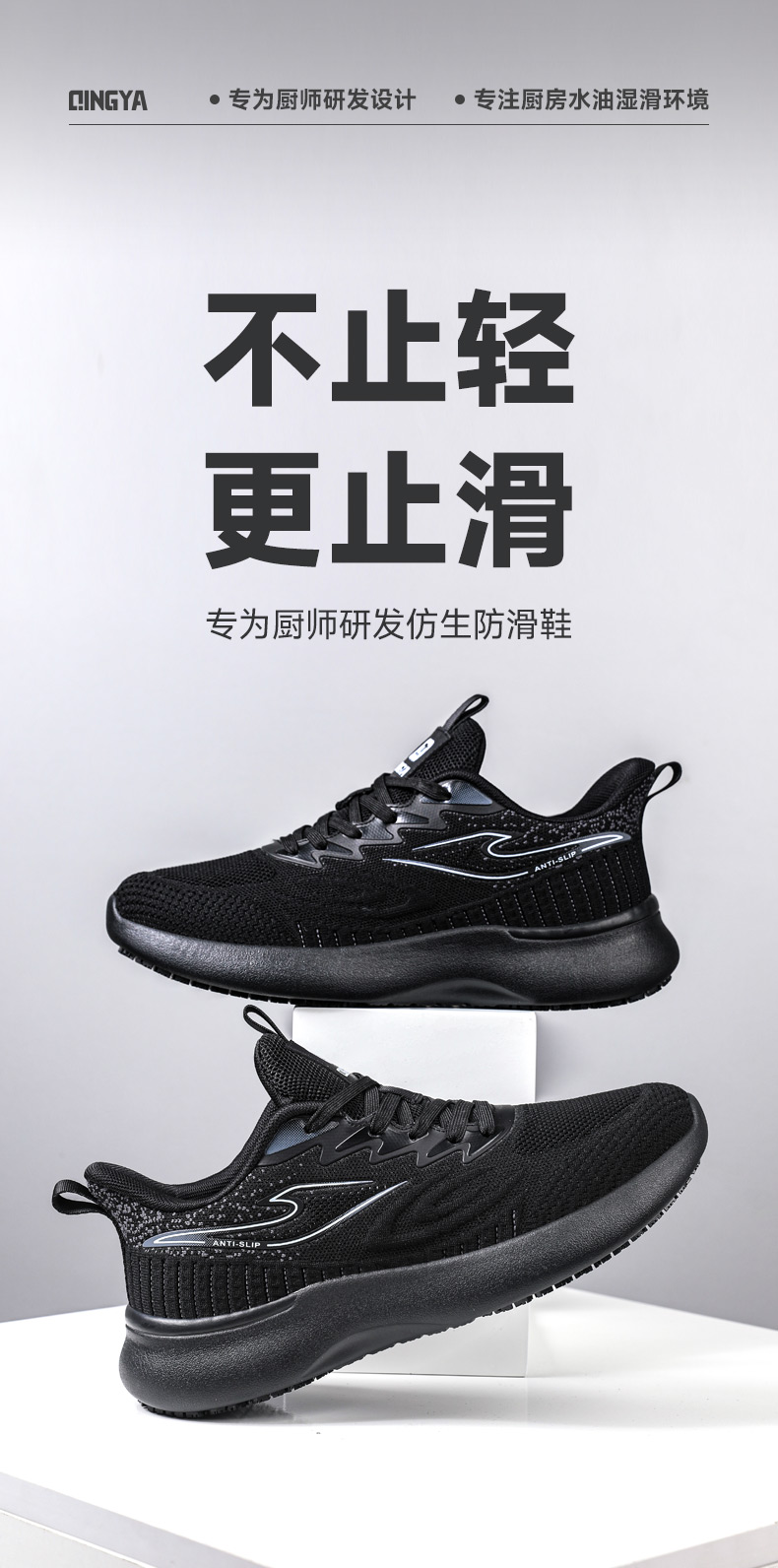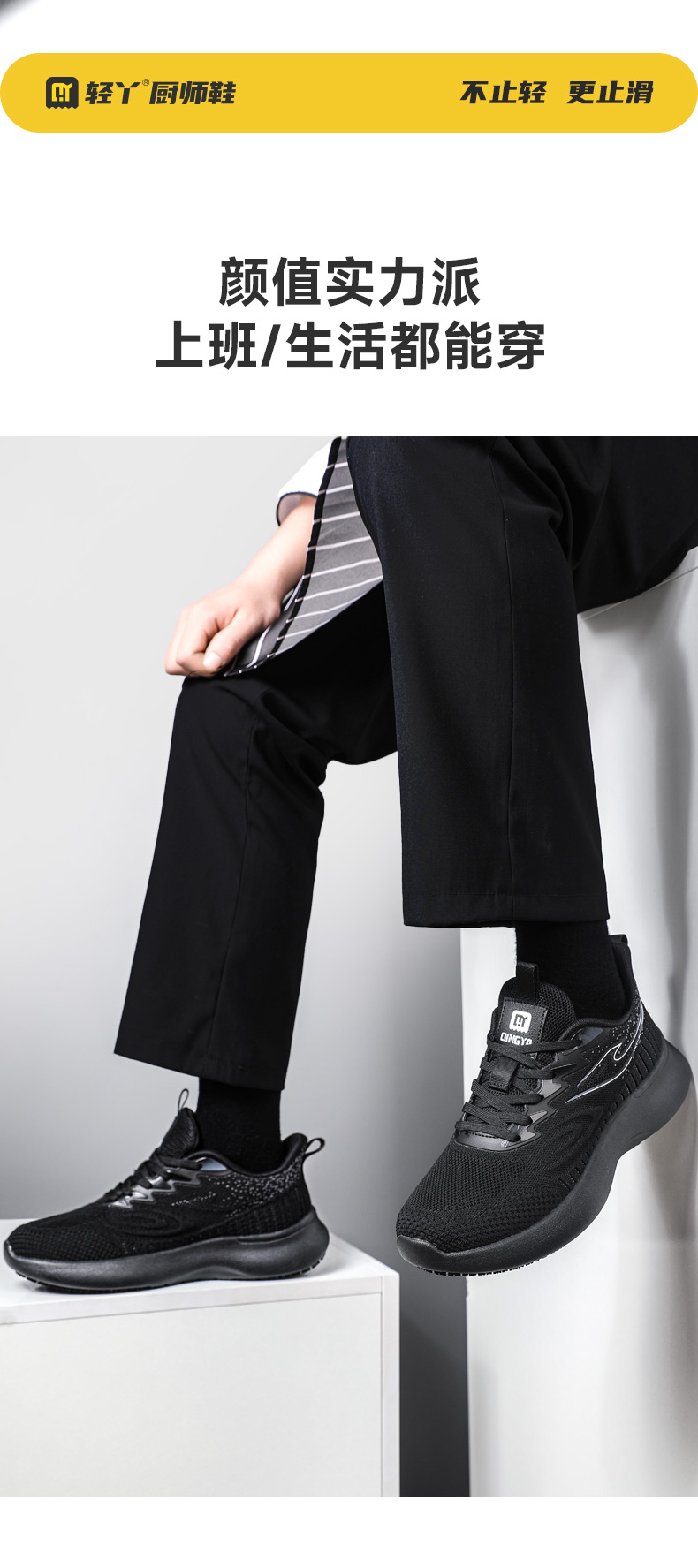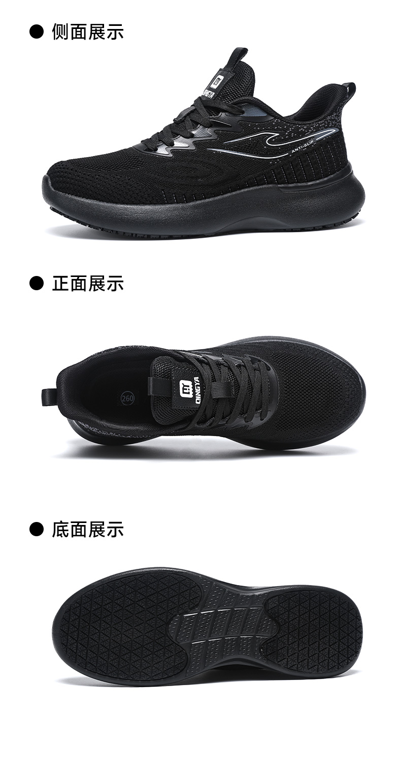 2025轻丫新款四季款低帮厨师鞋防滑SRC无包头无中底实心MD底黑色厨师鞋