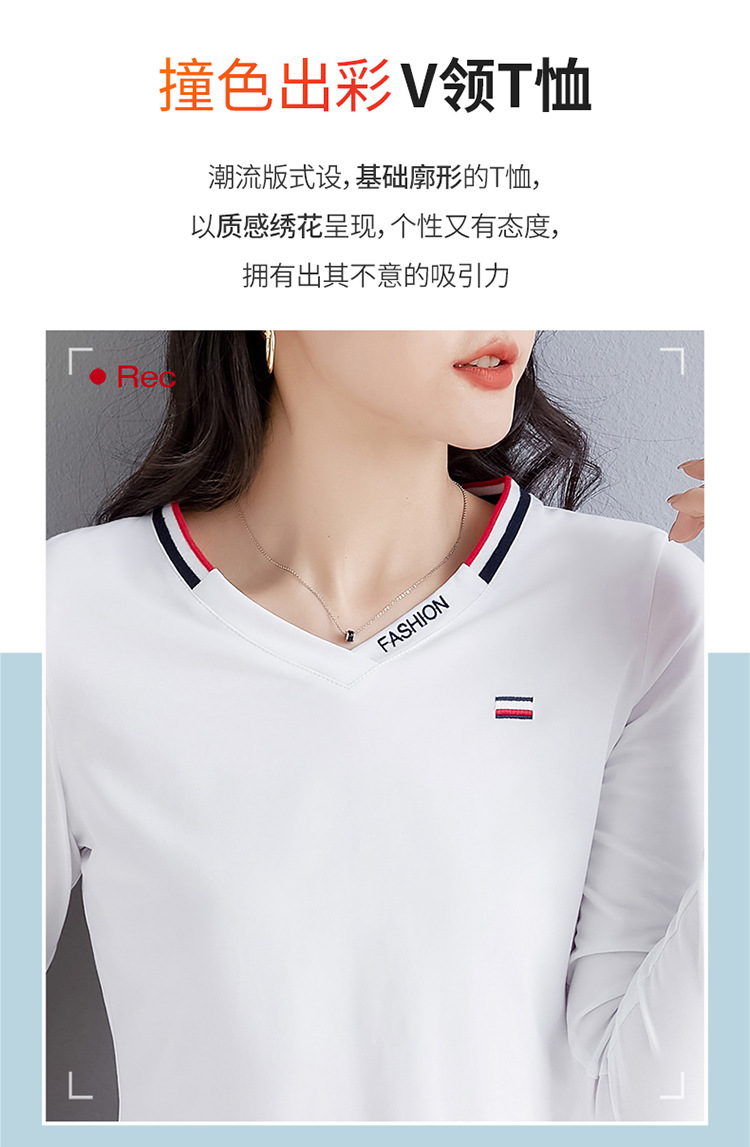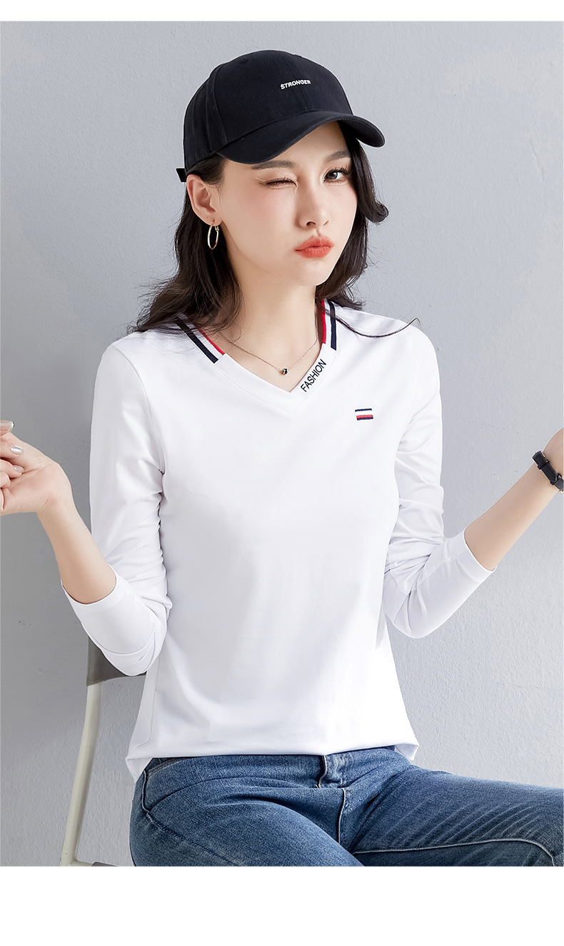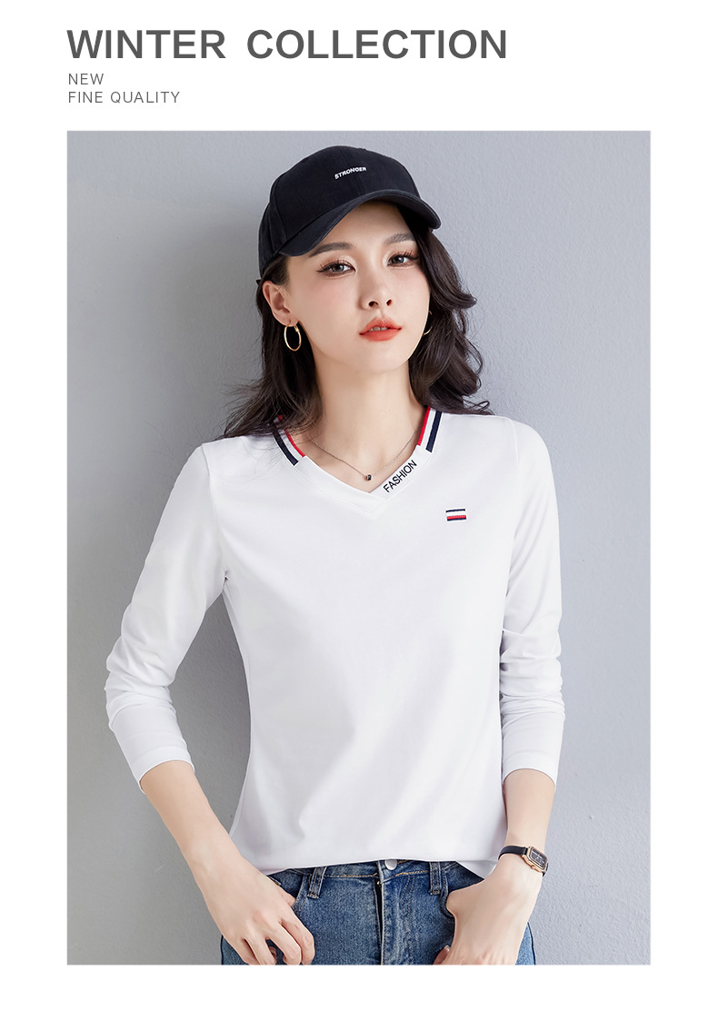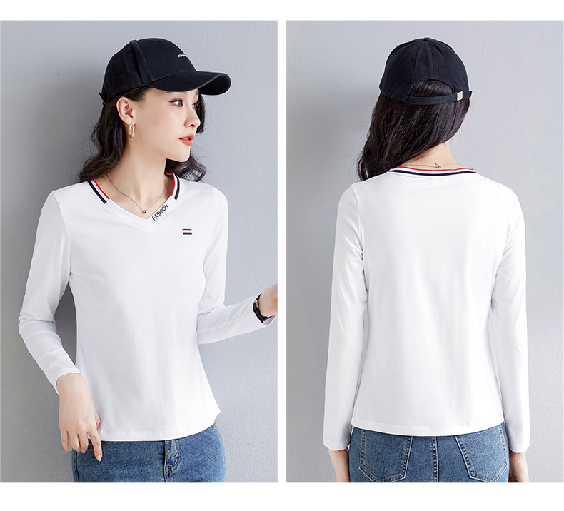 雀说白色V领内搭打底衫修身显瘦T恤女新款外穿长袖薄款上衣ALS82230107