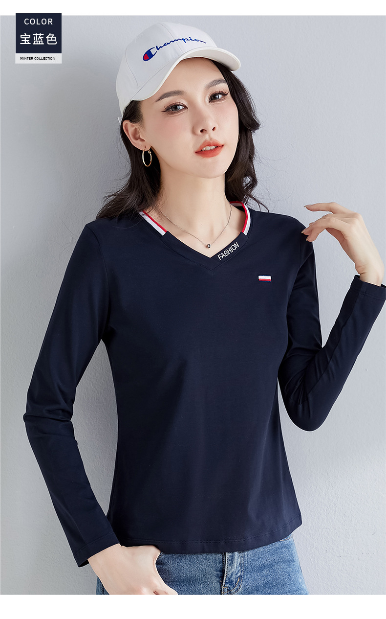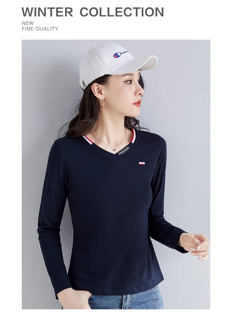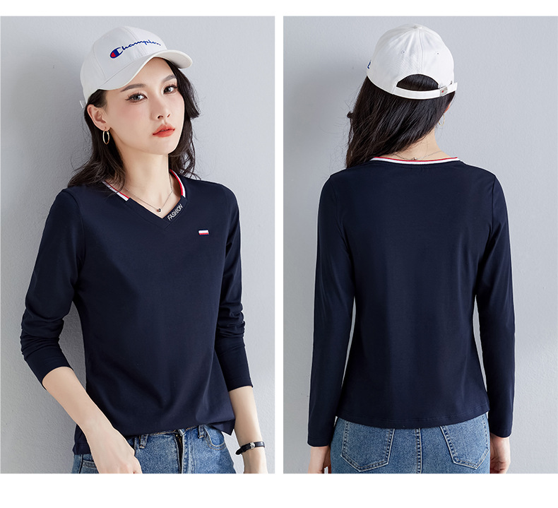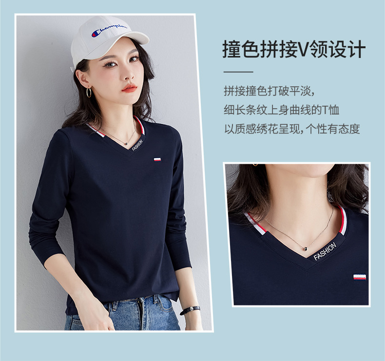 雀说白色V领内搭打底衫修身显瘦T恤女新款外穿长袖薄款上衣ALS82230107