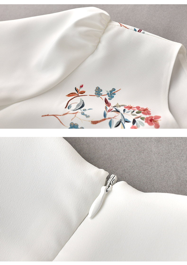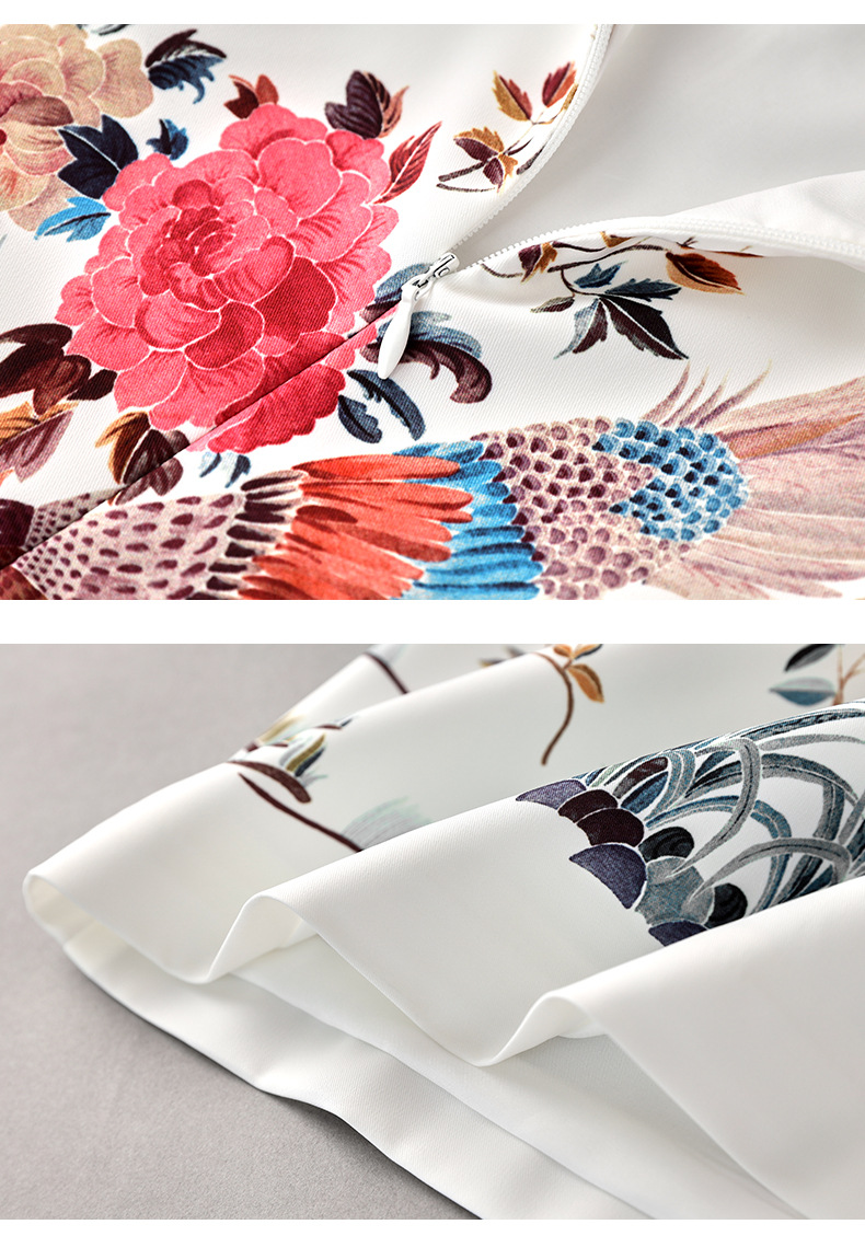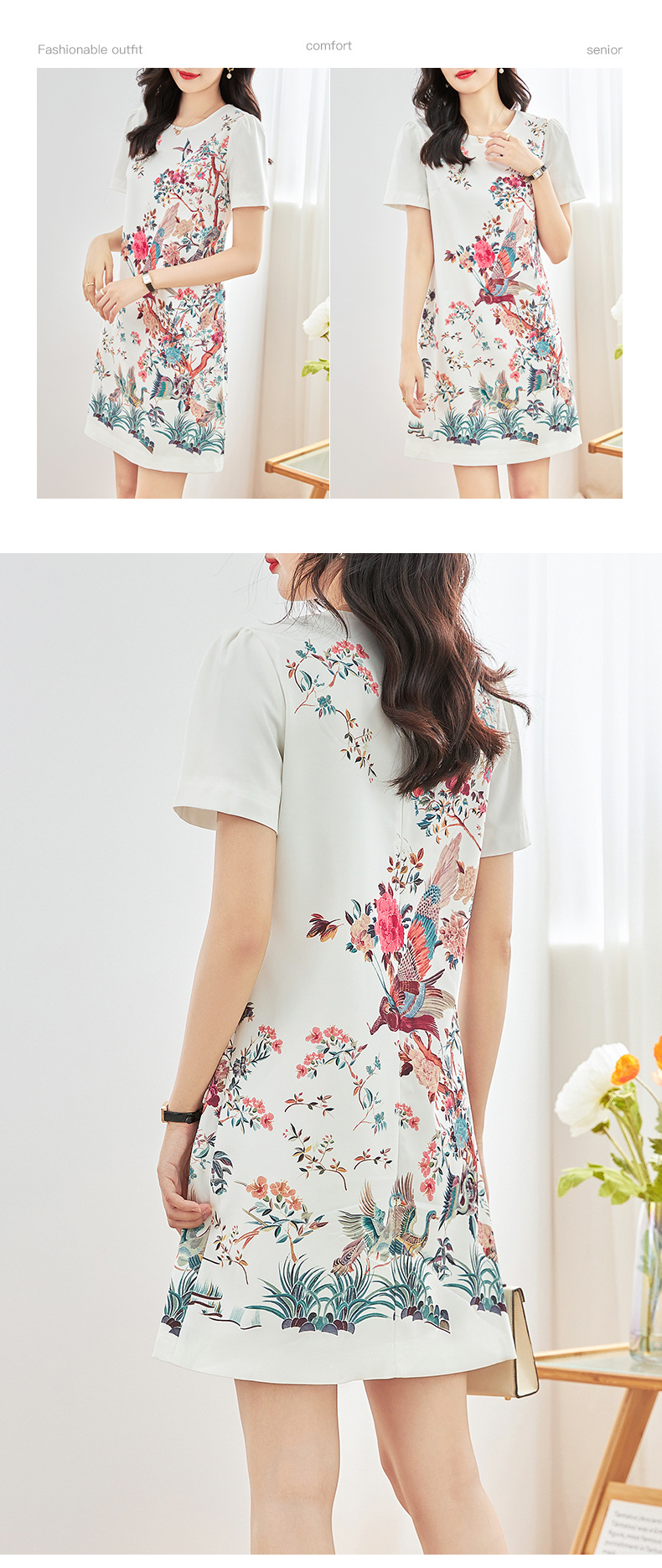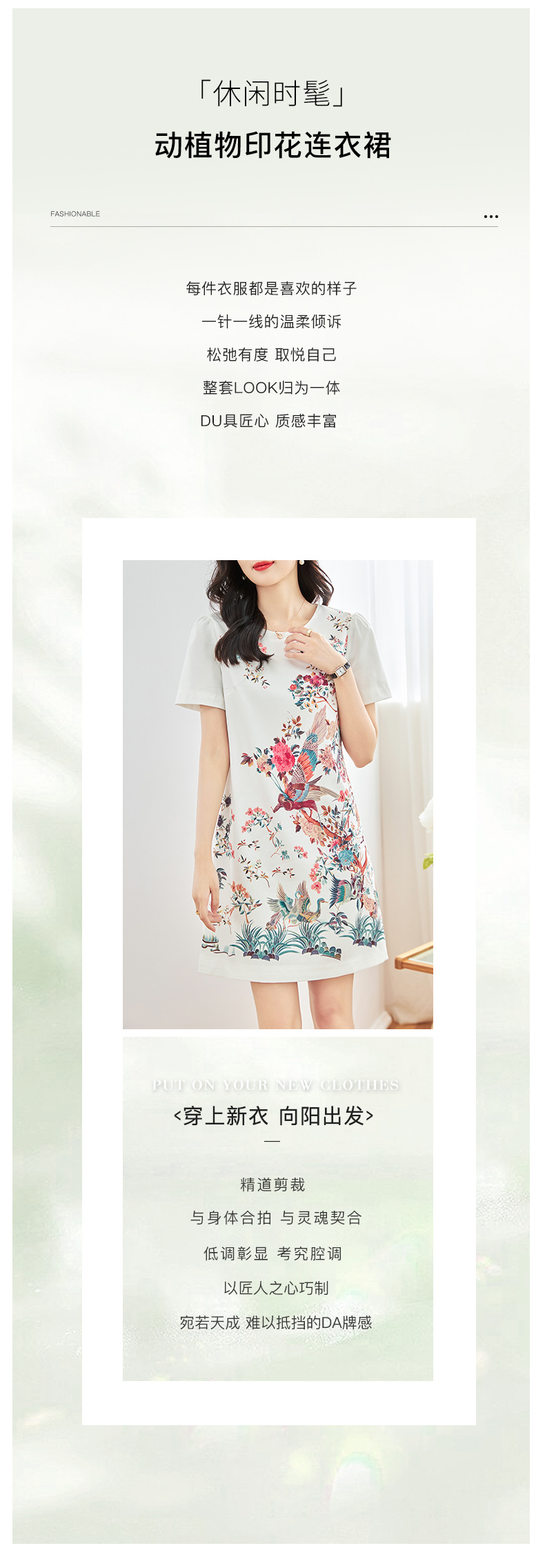 宽松遮肉显瘦,定位花鸟印花斜纹雪纺连衣裙WLZD-2312106