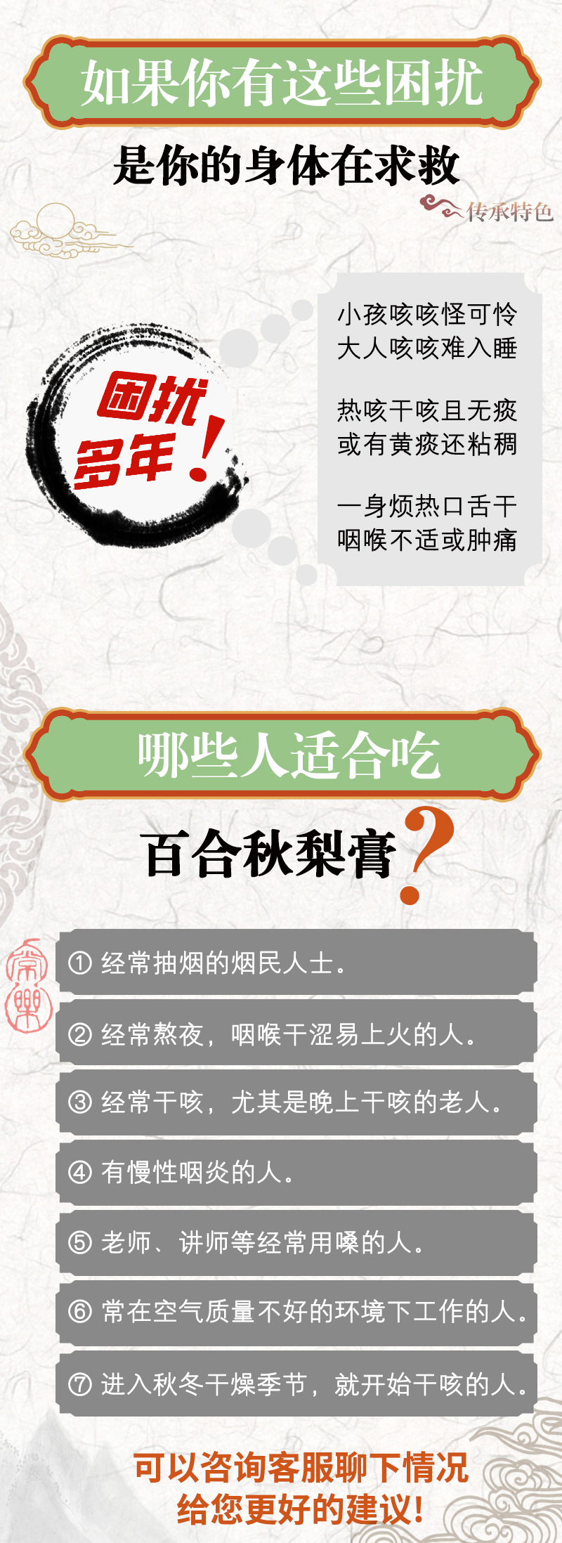 配方:秋梨、野生玉竹、百合、乌梅、山药、陈皮、茯苓、甘草、桔梗、杏仁、青果……