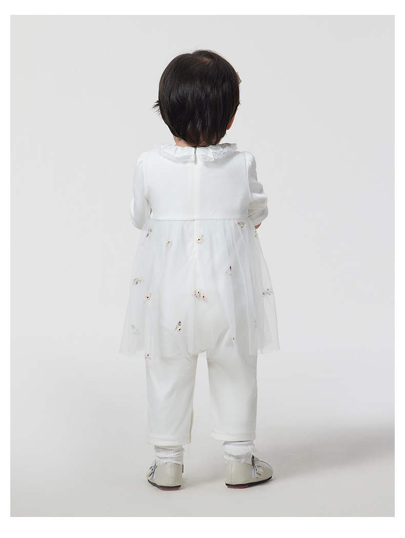 【商场同款】英氏婴儿衣服女宝宝哈衣可爱白色假两件连体衣