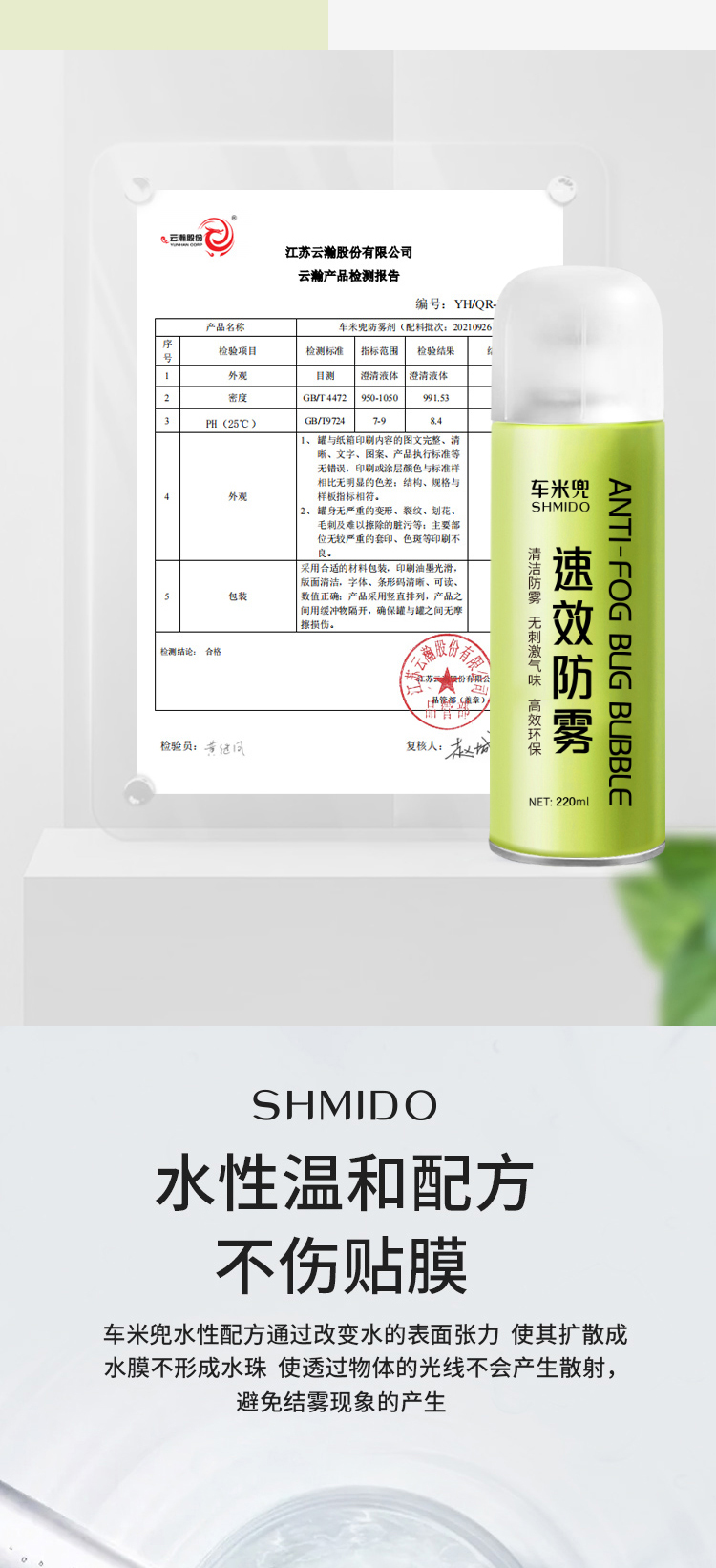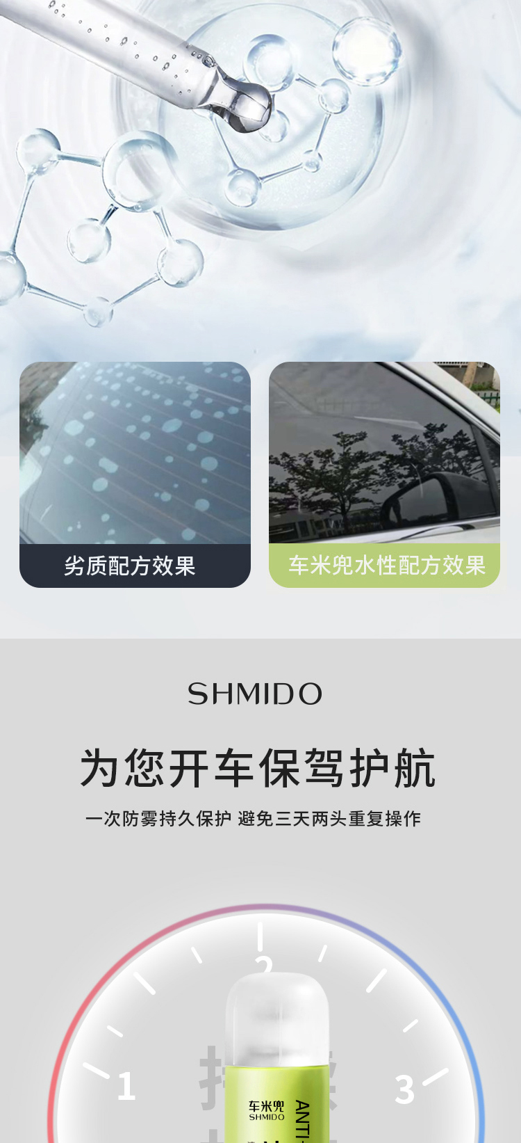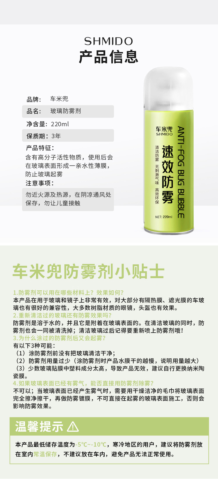 【清晰视野 有效防雾!】车米兜汽车玻璃防雾剂 水性温和配方不伤贴膜 车用头盔玻璃去雾剂 眼镜家用浴室镜 220ml/瓶