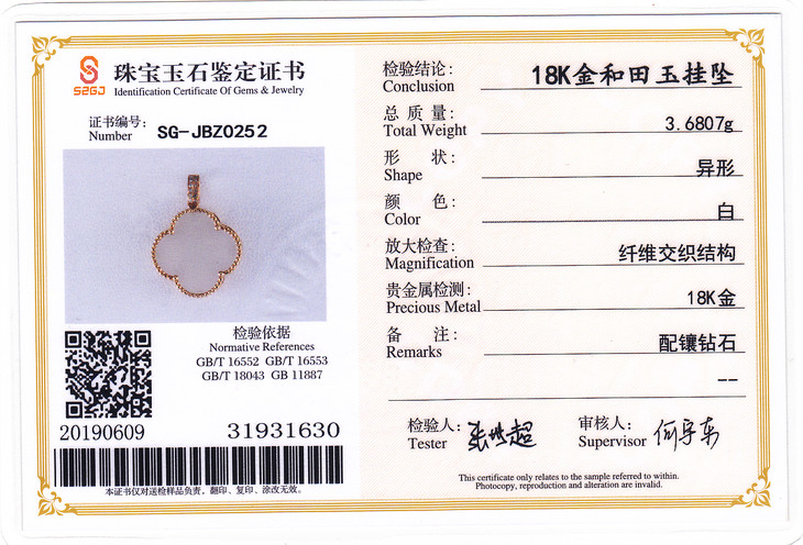 18k玫瑰金和田玉(白玉)镶钻吊坠