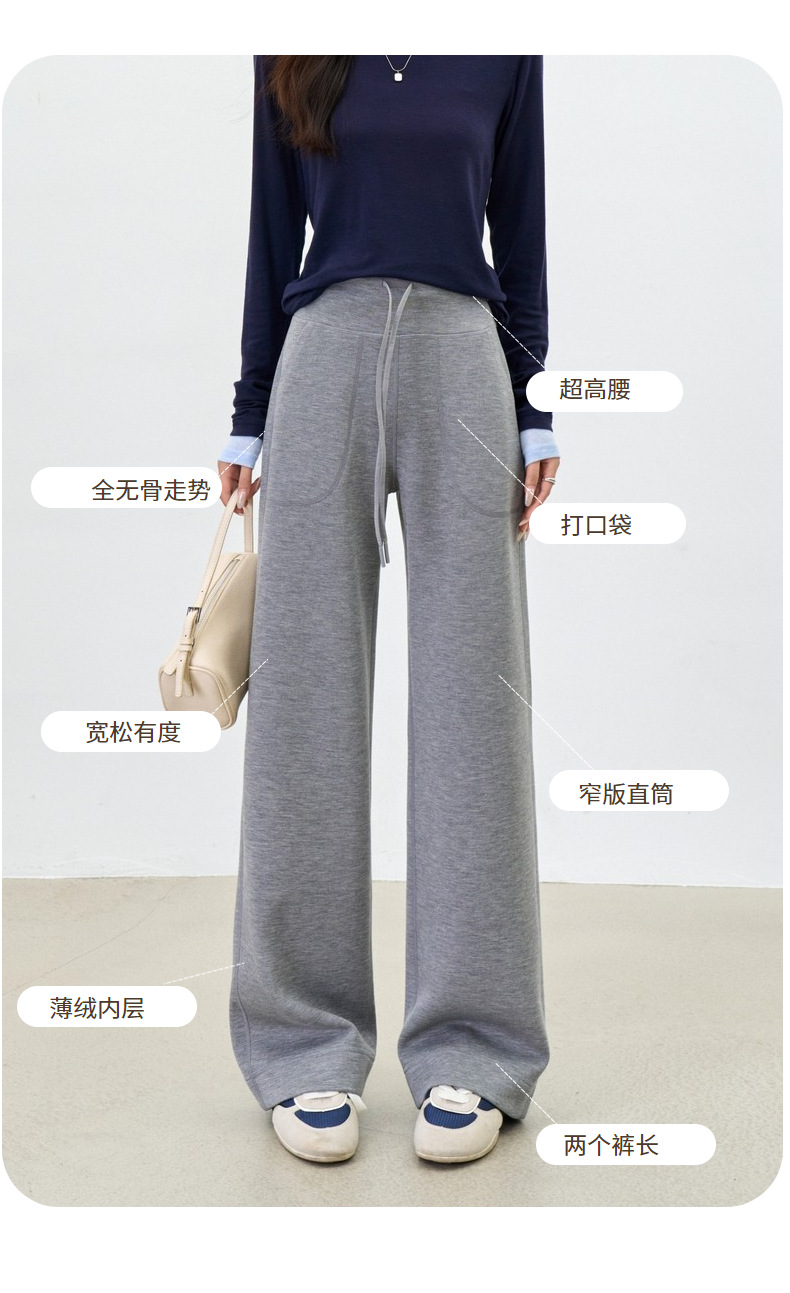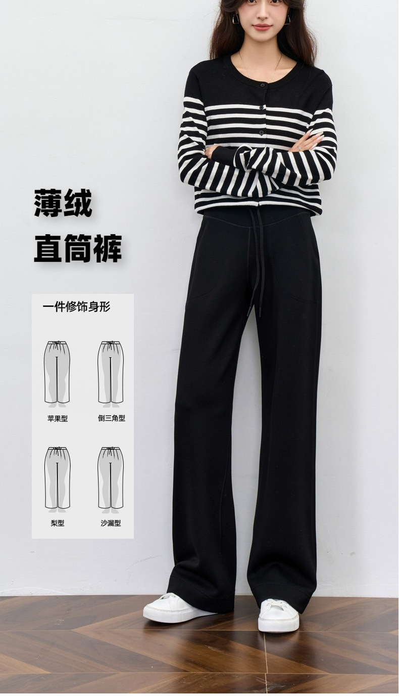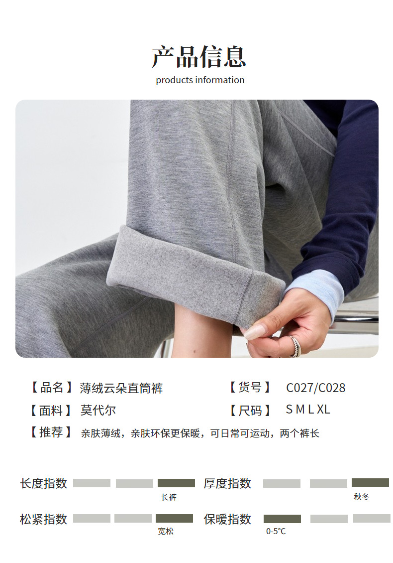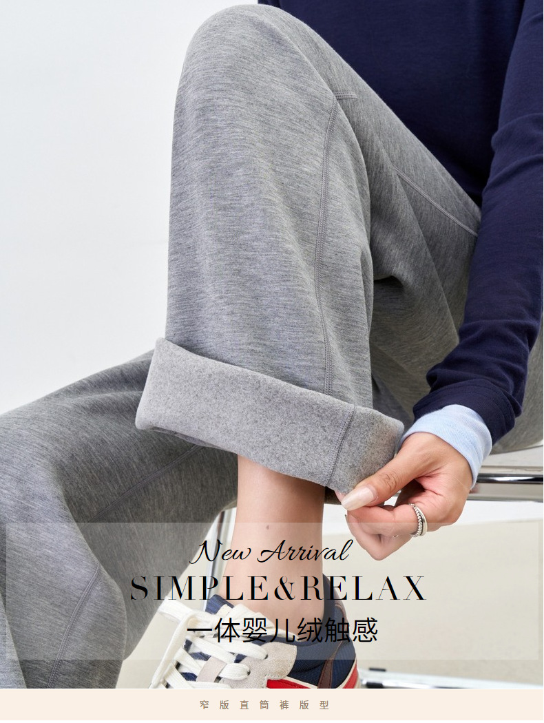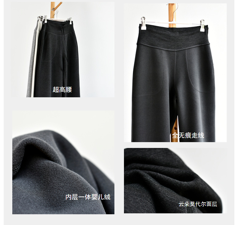丁摩 【薄绒直筒裤】冬加绒加厚莫代尔窄版阔腿直筒高腰保暖休闲裤子5ZF-12293