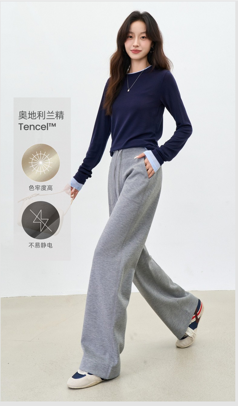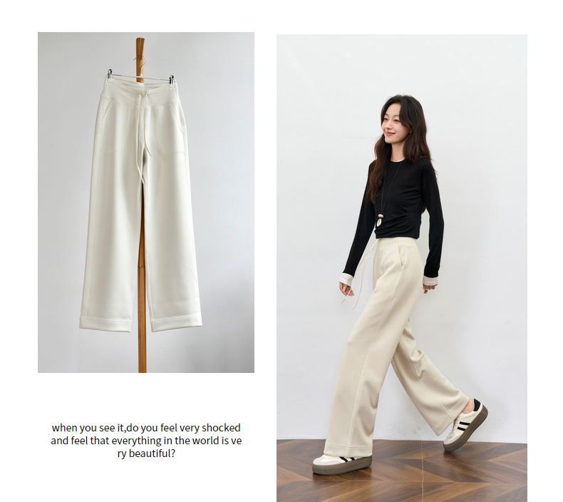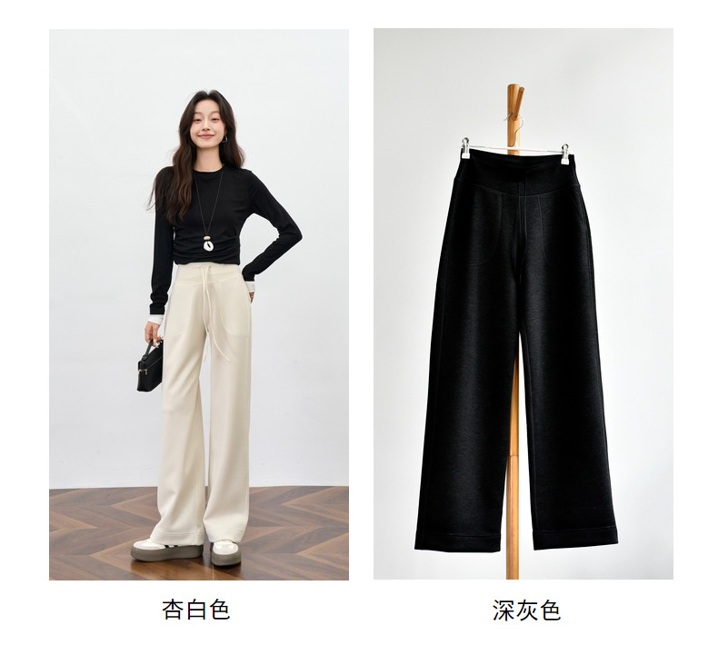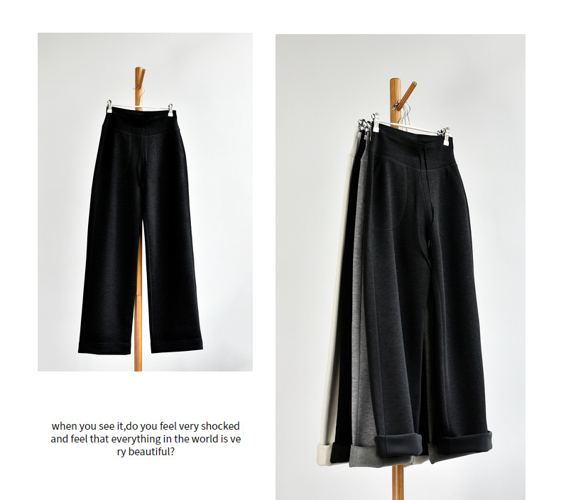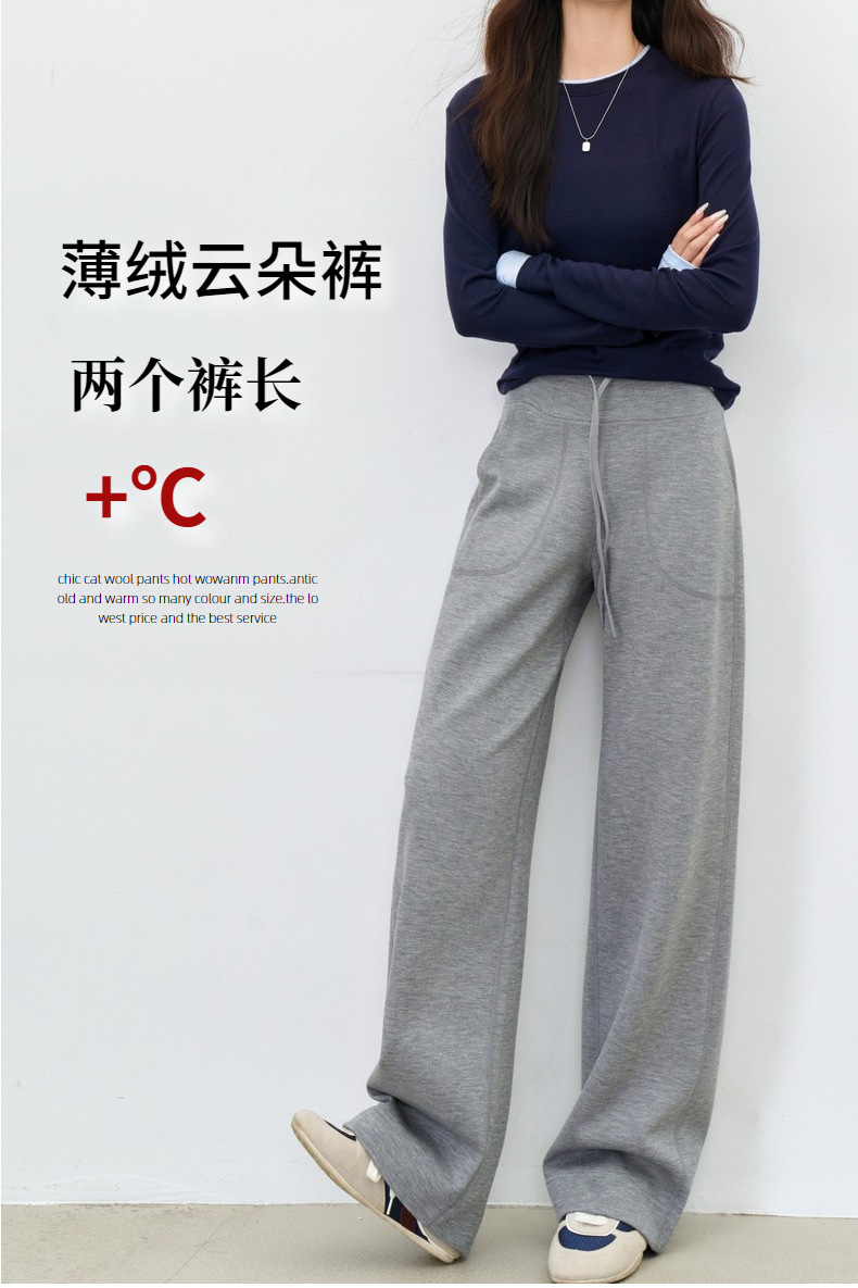 丁摩 【薄绒直筒裤】冬加绒加厚莫代尔窄版阔腿直筒高腰保暖休闲裤子5ZF-12293
