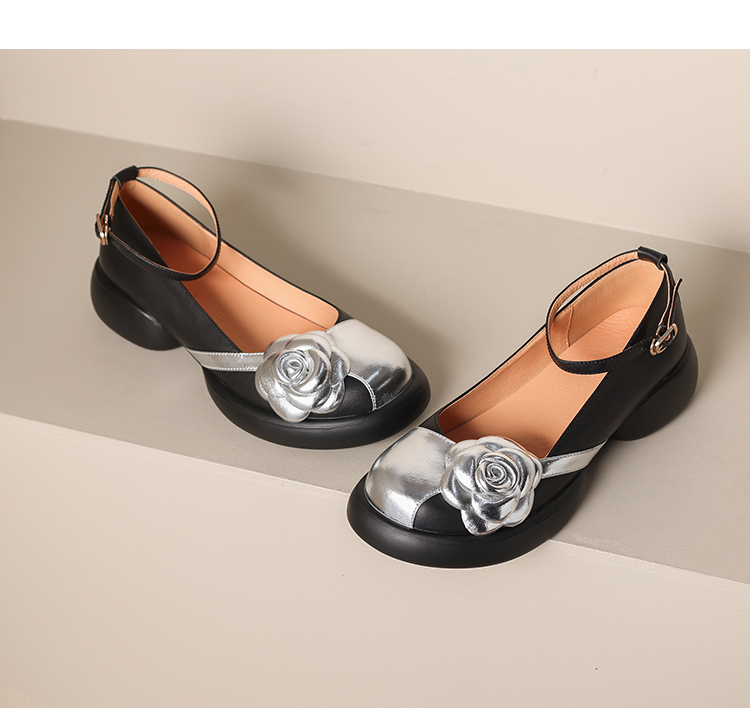 时尚百搭,圆头花朵厚底单鞋WXJ-X333-5
