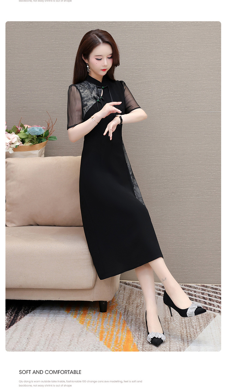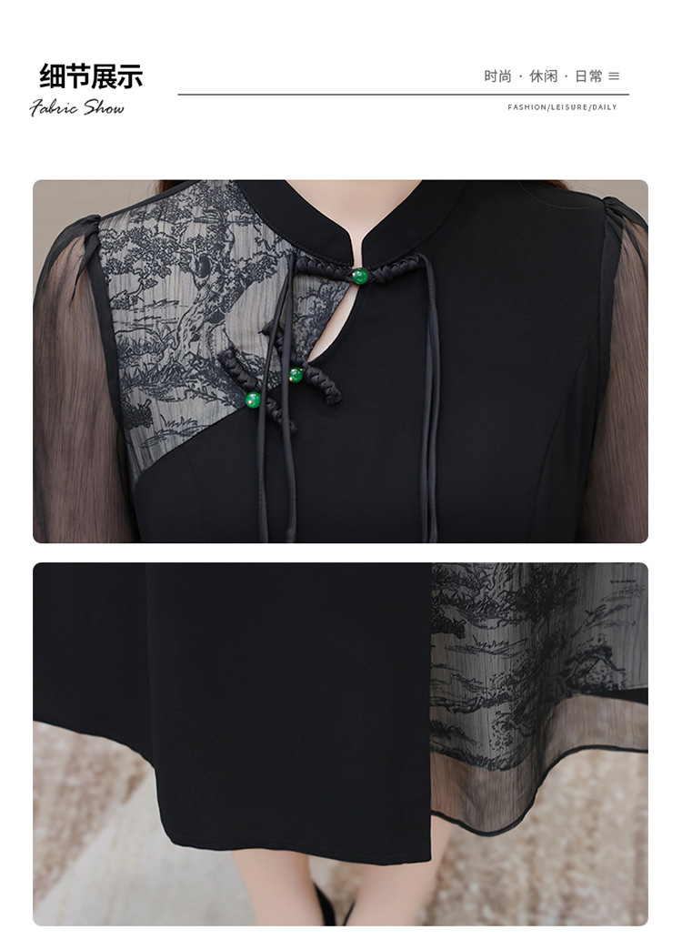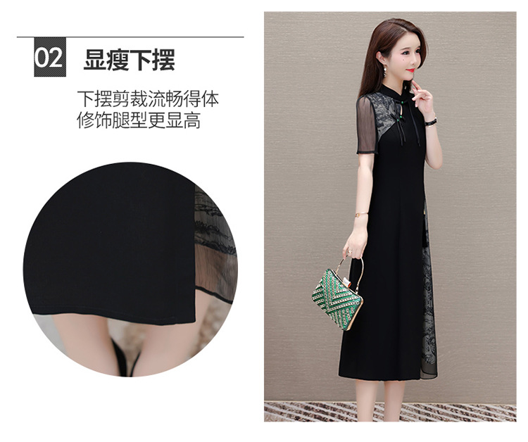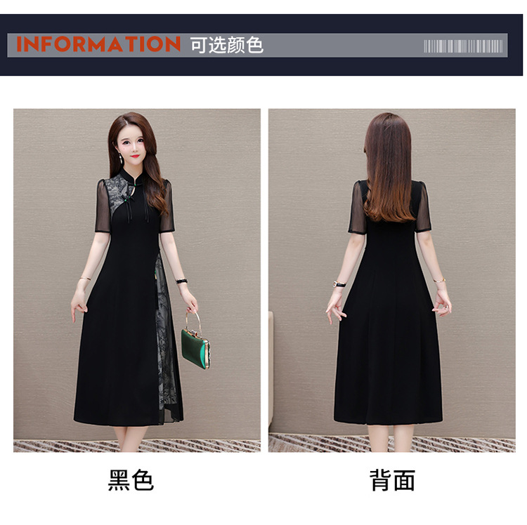 复古国风,短袖拼色印花改良旗袍连衣裙QYM-JJ-6628132-Y