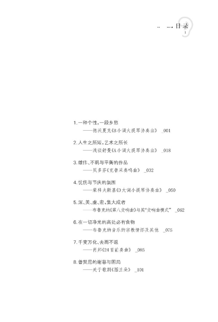 走进古典音乐,出色的作曲家和演奏家99%都是外国人,记住一串串又长又拗口的名字是读者朋友的第一步。然而进入这个领域的“入门指导”,最常见的形式就是狂列音乐家名录,如古典主义时期的海顿、莫扎特等,巴洛克主义时期的巴赫、维瓦尔第等,浪漫主义时期的舒曼、肖邦等。涉及以上音乐家的曲目肯定都很经典,也确实适合入门者欣赏。但问题是,对于初来乍到者,它似乎缺乏切入点,显得大而空。 然后作为笔耕十年,可谓“资深乐迷”的作者,这次将以一种另辟蹊径的文笔引领大家重新解读、走进古典音乐。本书由作品、唱片、杂文、现场四个部分构成,其中包括作品评文8篇,选用了德沃夏克的《b小调大提琴协奏曲》、普契尼的歌剧《图兰朵》等,唱片评文10篇,涉及柴可夫斯基的《D大调小提琴协奏曲》、格里格的《a小调钢琴协奏曲》等,现场乐评7篇,为作者针对一些CD封面、钢琴家风格的直抒胸臆之谈,而现场部分,可算是作者的观后感。实际上,真的入门经典音乐,可以说即不容易又很容易。不容易,在于我们欣赏的经典音乐与我们的传统文化环境有相当的“文化距离”,真的深入需要恶补许多背景知识。 很容易,在于欣赏音乐是人的本能。在这个层面上,对于经典音乐的欣赏没有任何门槛。哪怕你完全不了解作品的背景知识也未尝不可。以上文章,长篇的大多发表于北京《爱乐》杂志,短篇的大多发表于上海《新民晚报(音乐版)》,此次集结出版,以便能为更多喜欢古典音乐的读者朋友送上一份称心的读本。