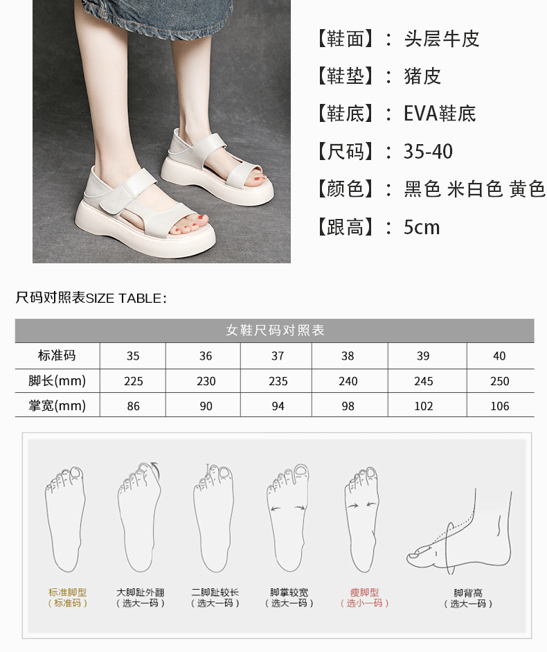 YU 5099厚底凉鞋露趾沙滩鞋软底防滑凉拖鞋