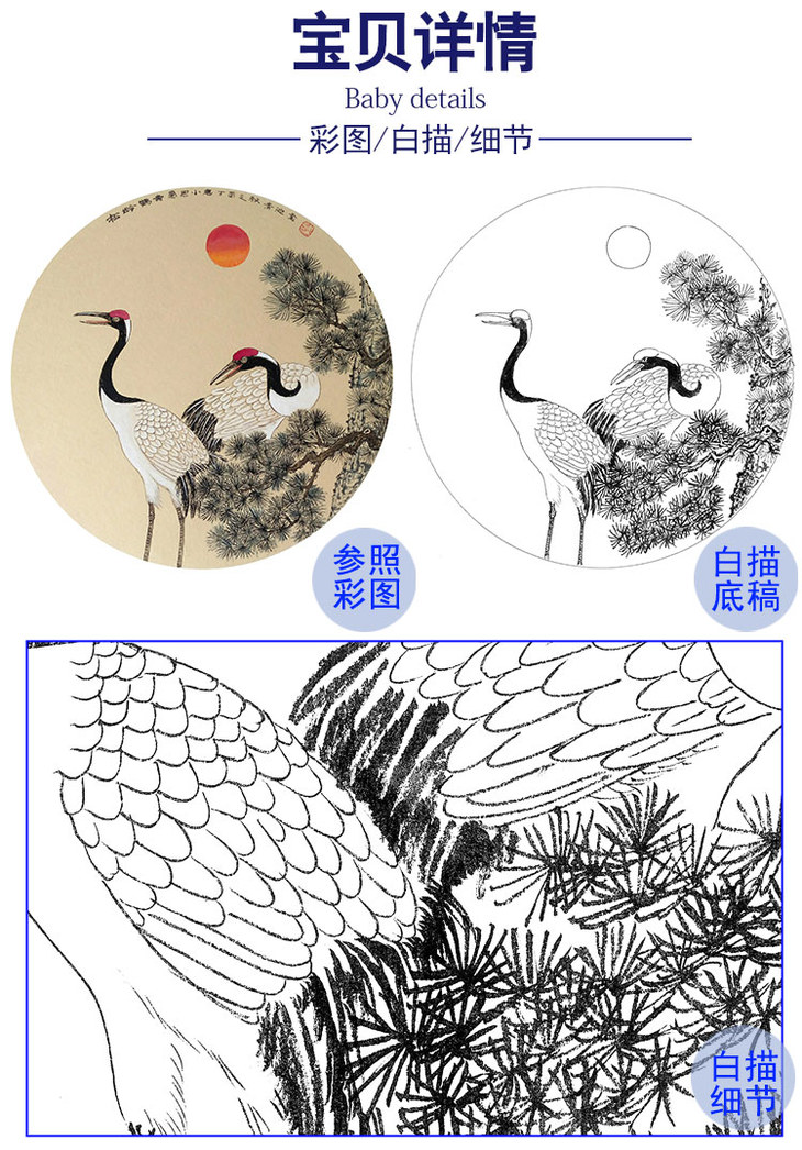 戴青池工笔花鸟白描底稿-仙鹤小品-多种白描尺寸可选-DQ07