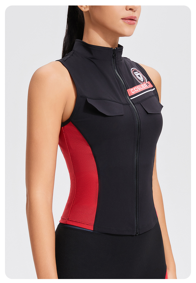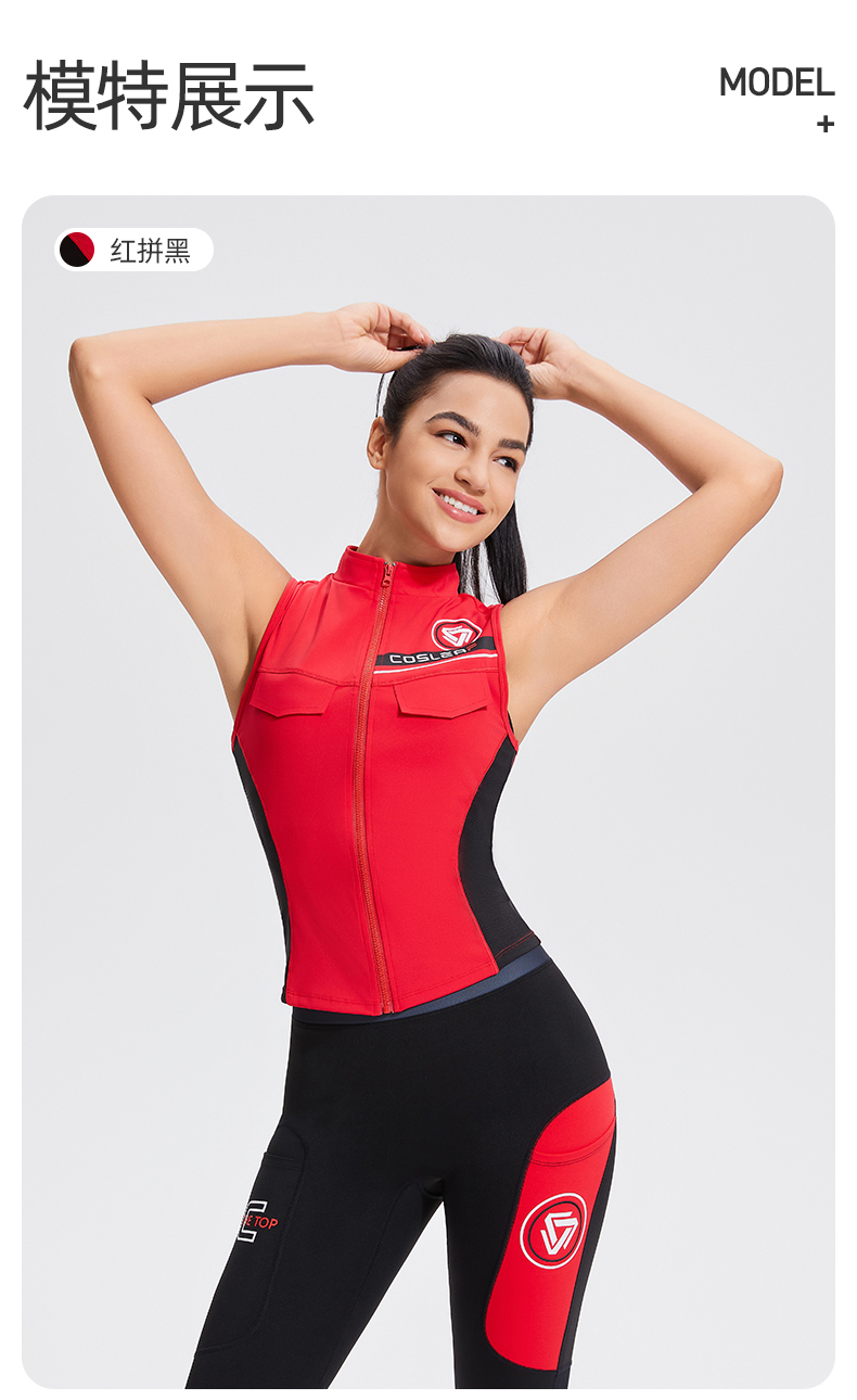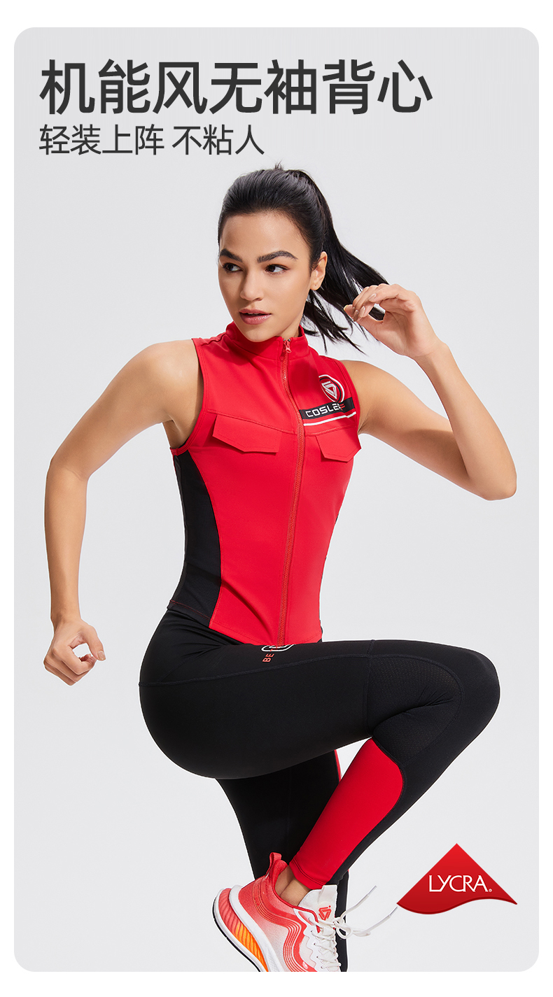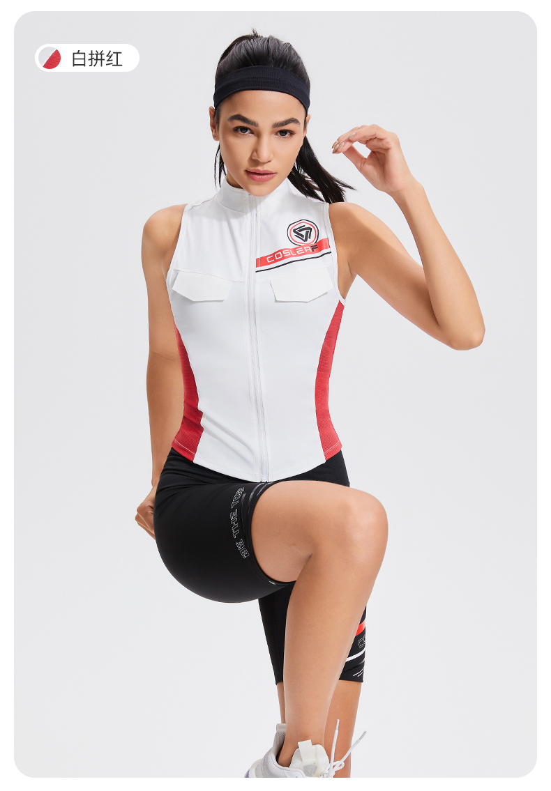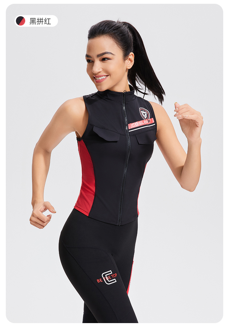 科里芙新款运动背心跑步运动健身拉链马甲时尚印花无袖上衣