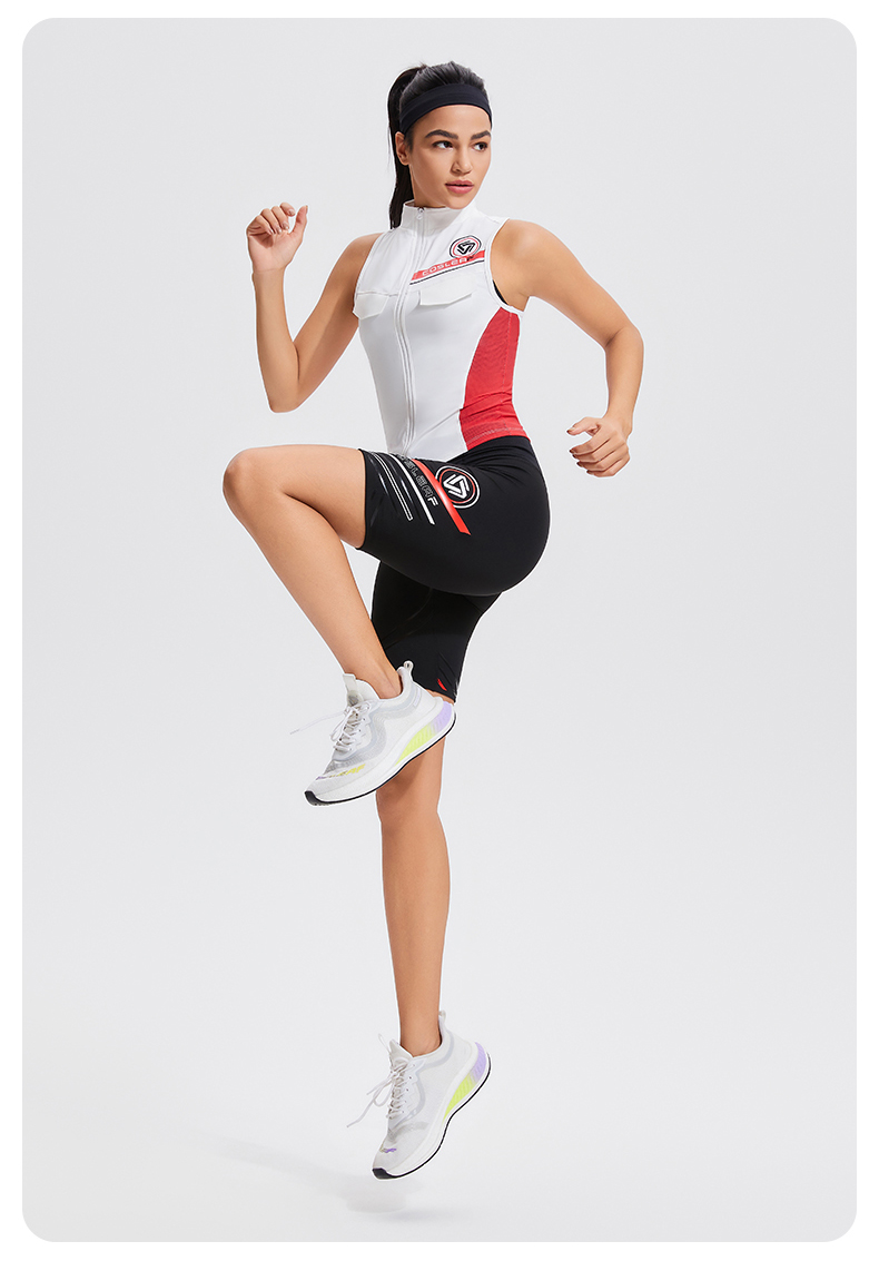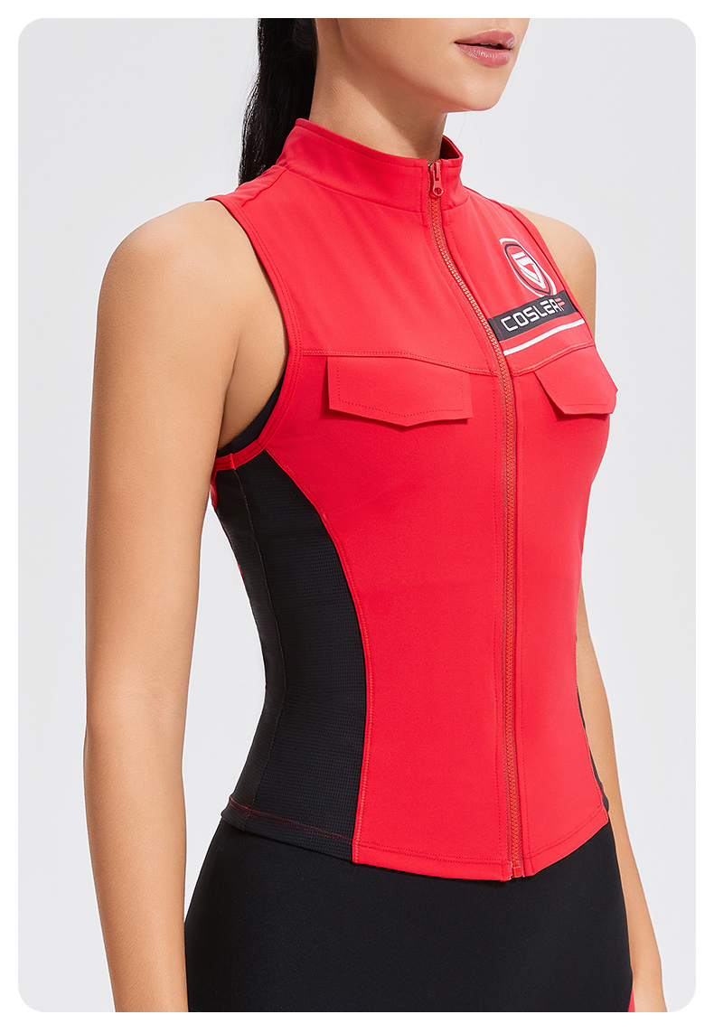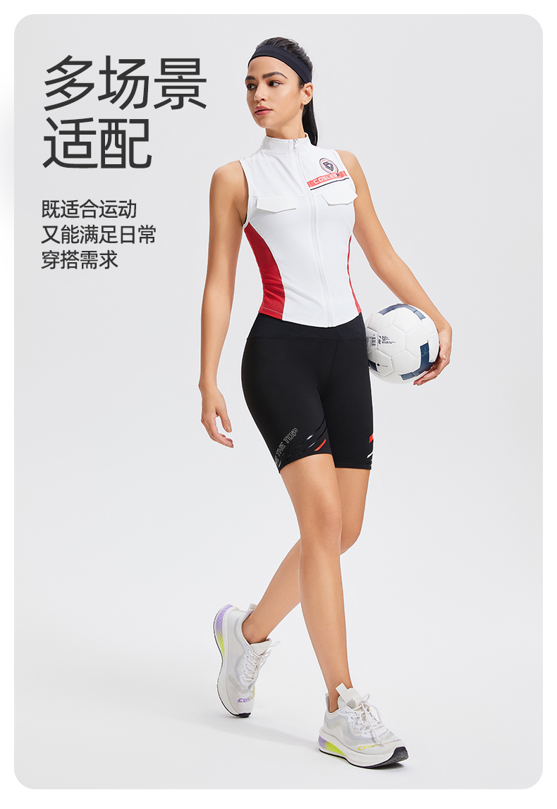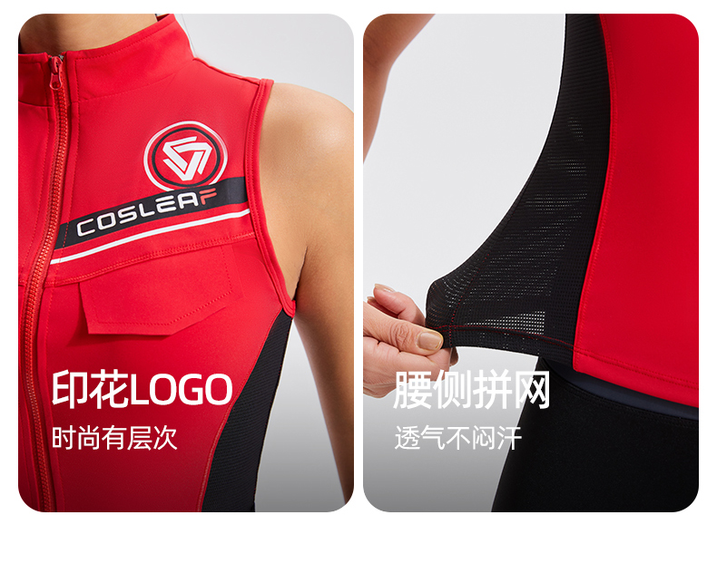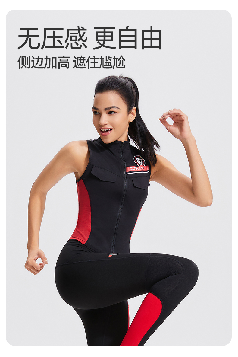 科里芙新款运动背心跑步运动健身拉链马甲时尚印花无袖上衣
