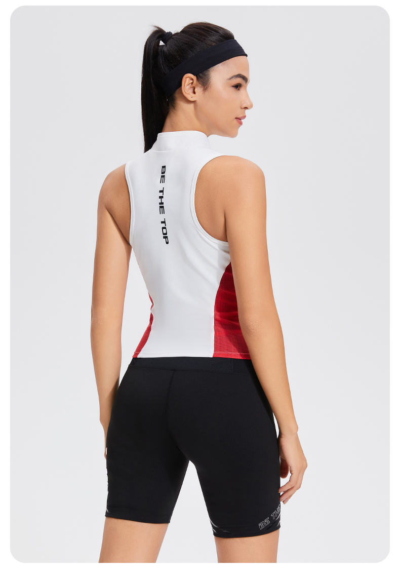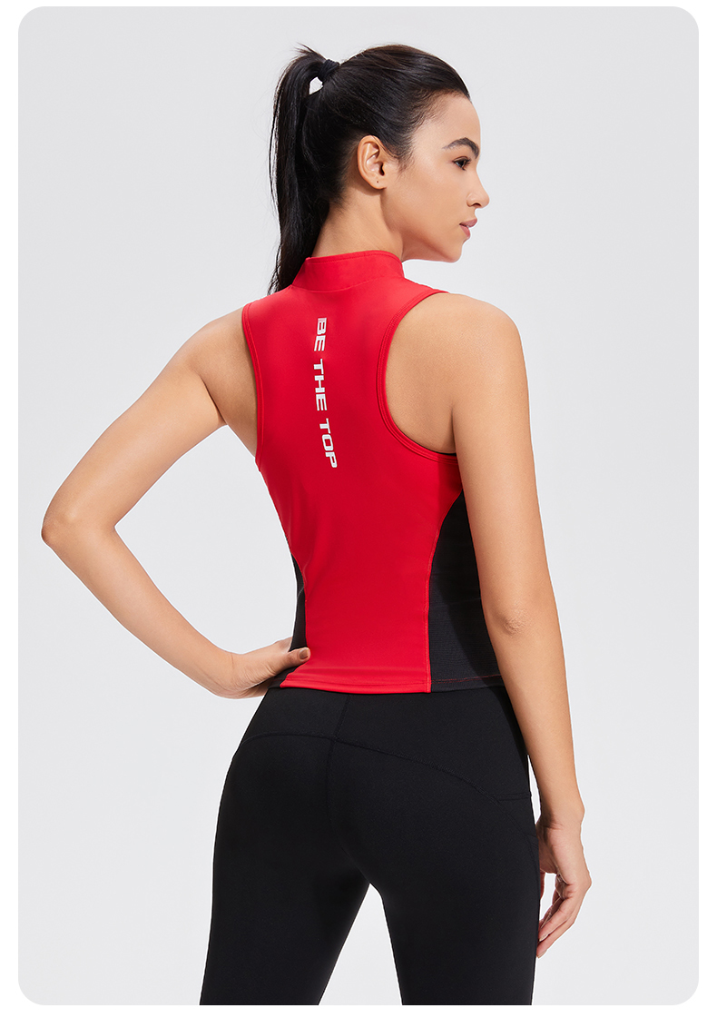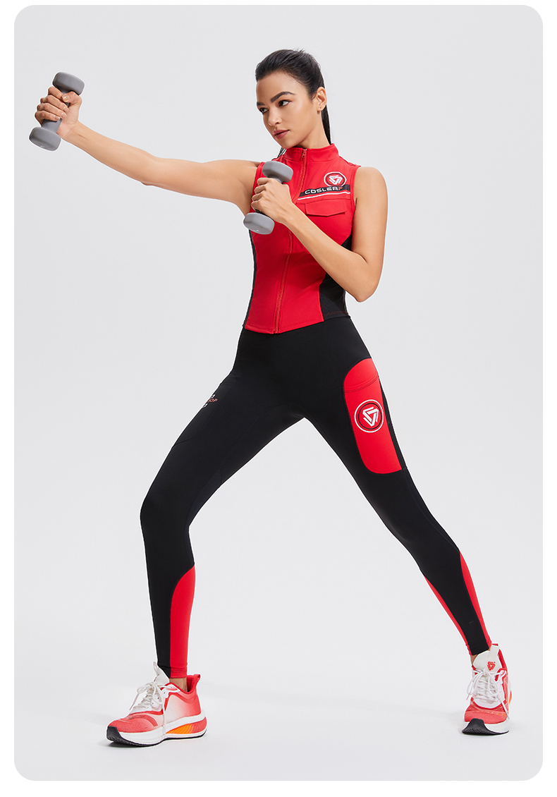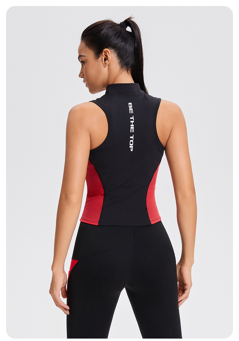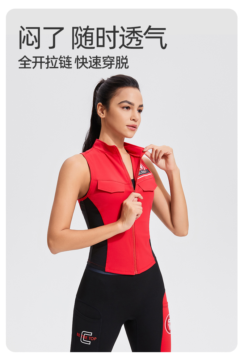 科里芙新款运动背心跑步运动健身拉链马甲时尚印花无袖上衣